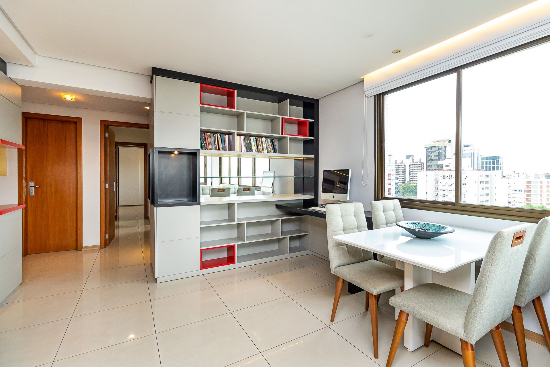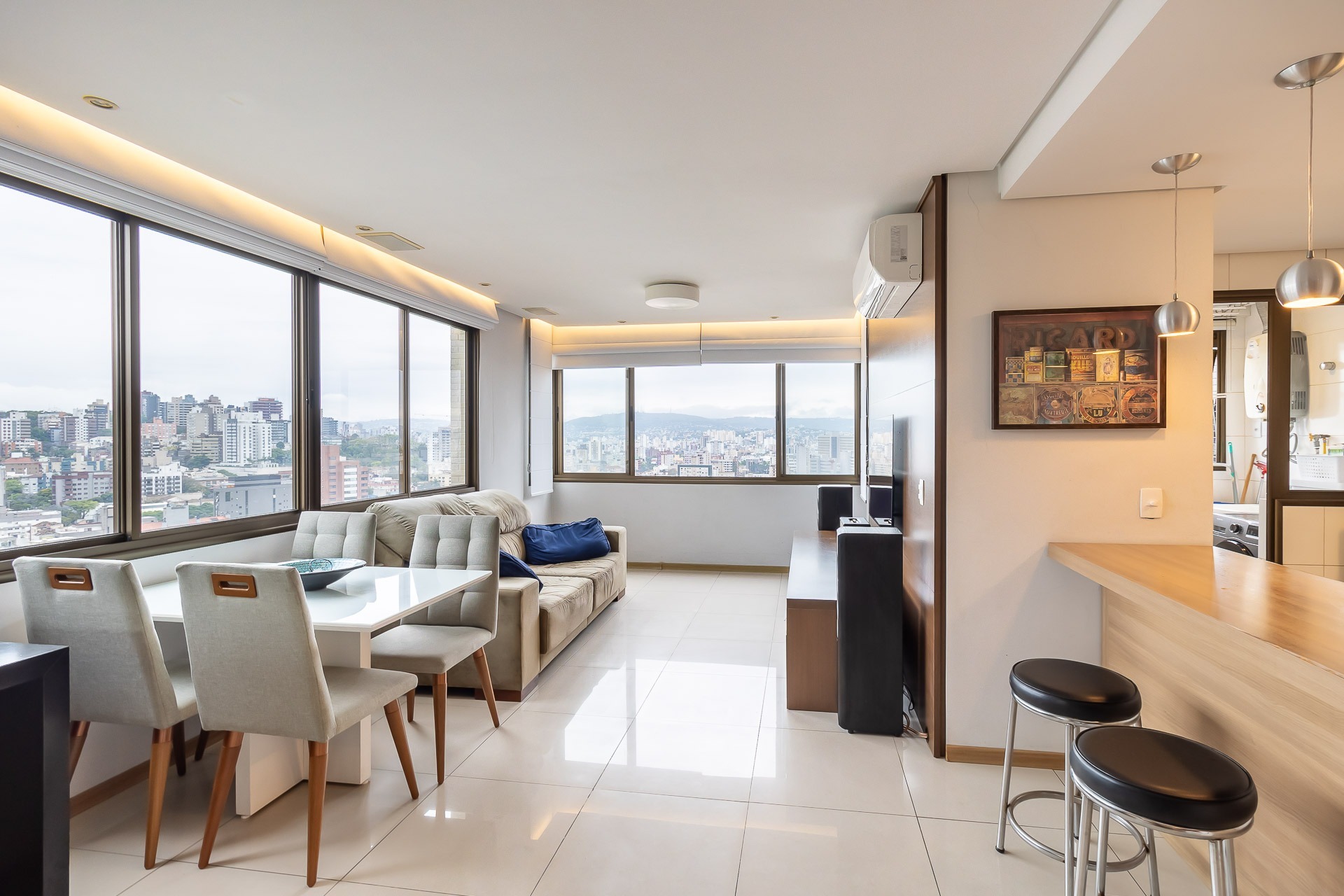 No living, este para 2 ambientes, há ainda lavabo e mezanino com estar, proporcionando linda vista para o bairro Moinhos de Vento. Na área íntima são 3 suítes, 1 master e 2 americanas, copa cozinha e lavanderia.