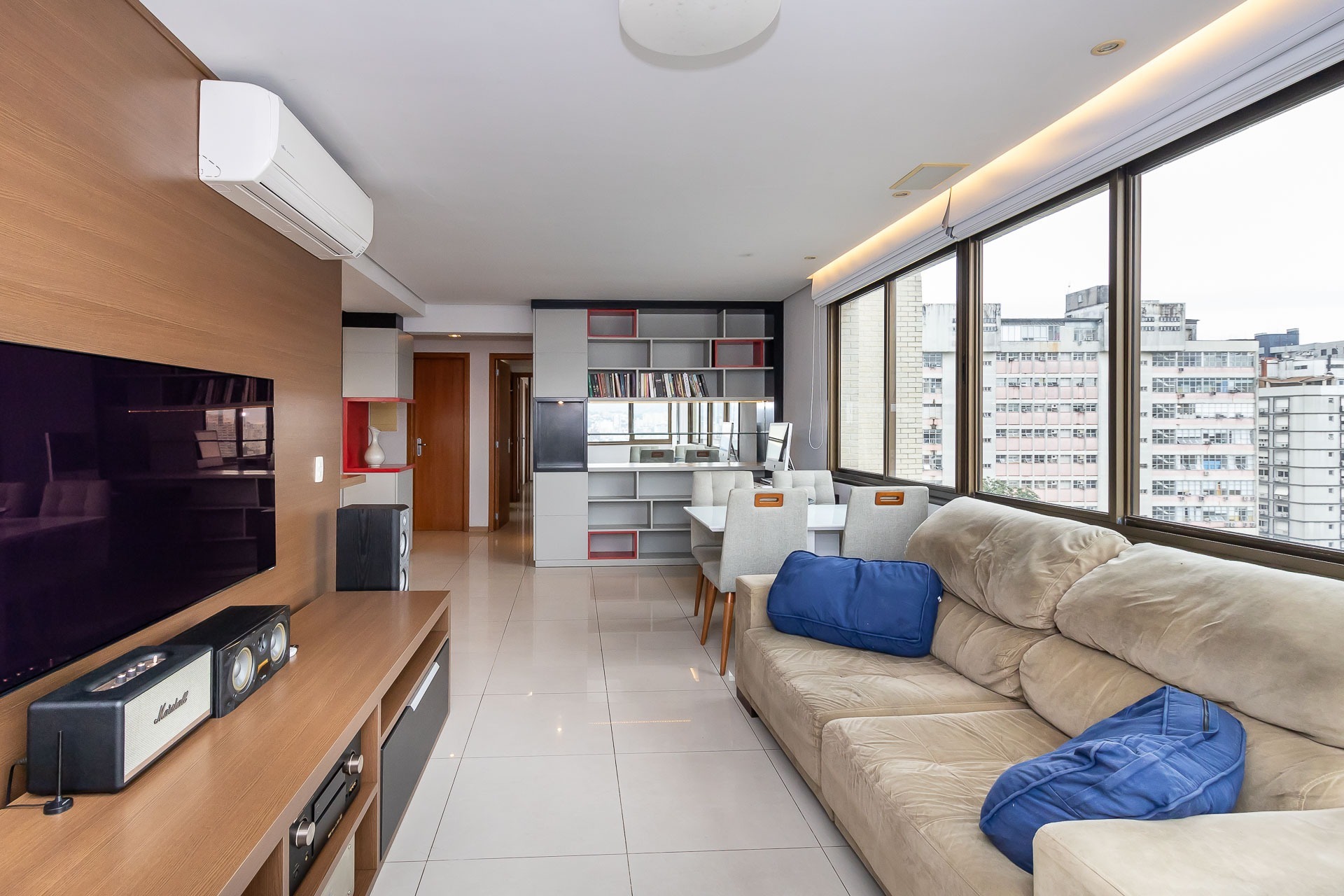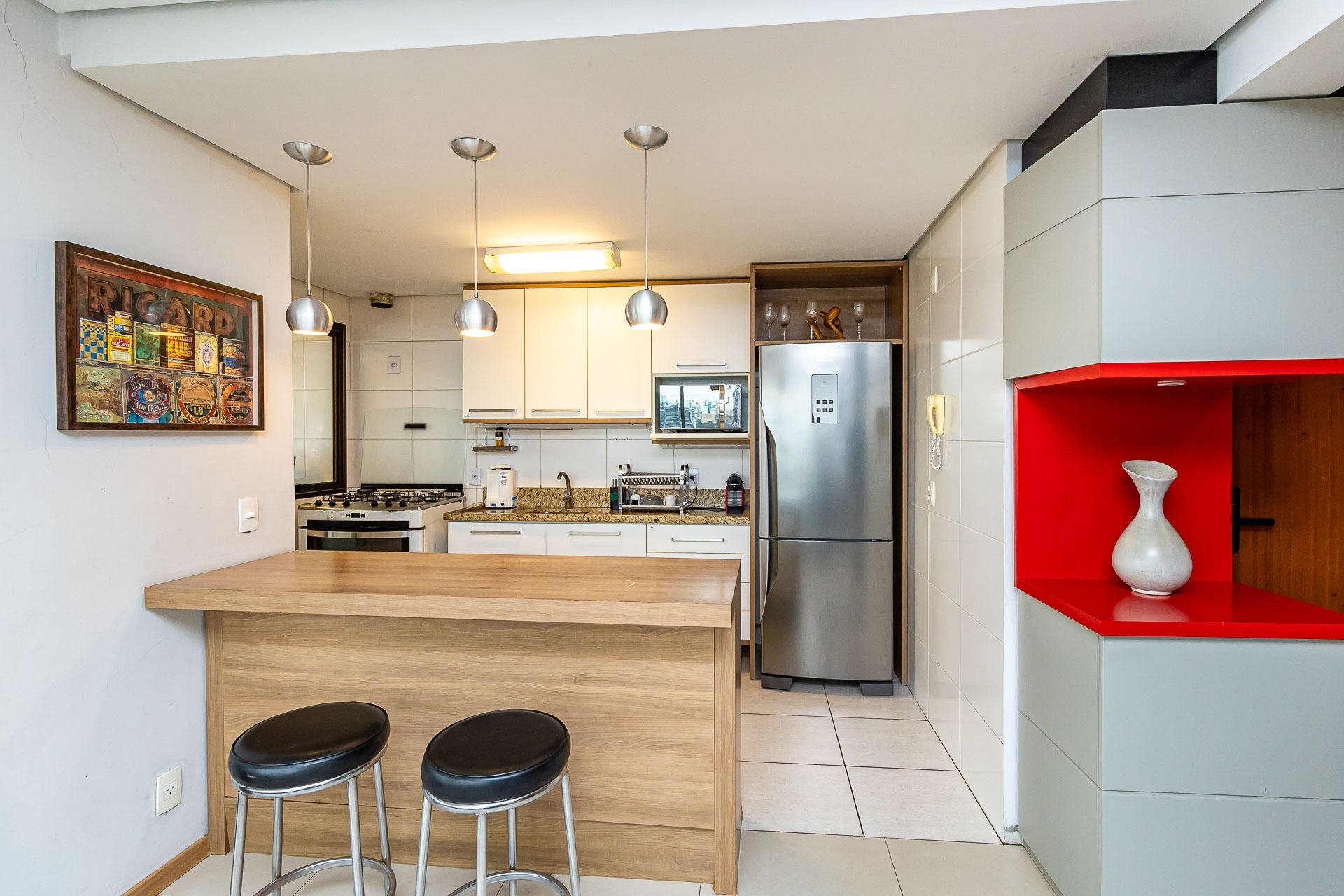 Apartamento mobiliado com 2 dormitórios, sendo 1 suíte, com 88m² de área privativa e 2 vagas de garagem. Amplo living com cozinha americana, churrasqueira e área de serviço. Prédio com salão de festas, fitness, portaria 24 h. Excelente localização!