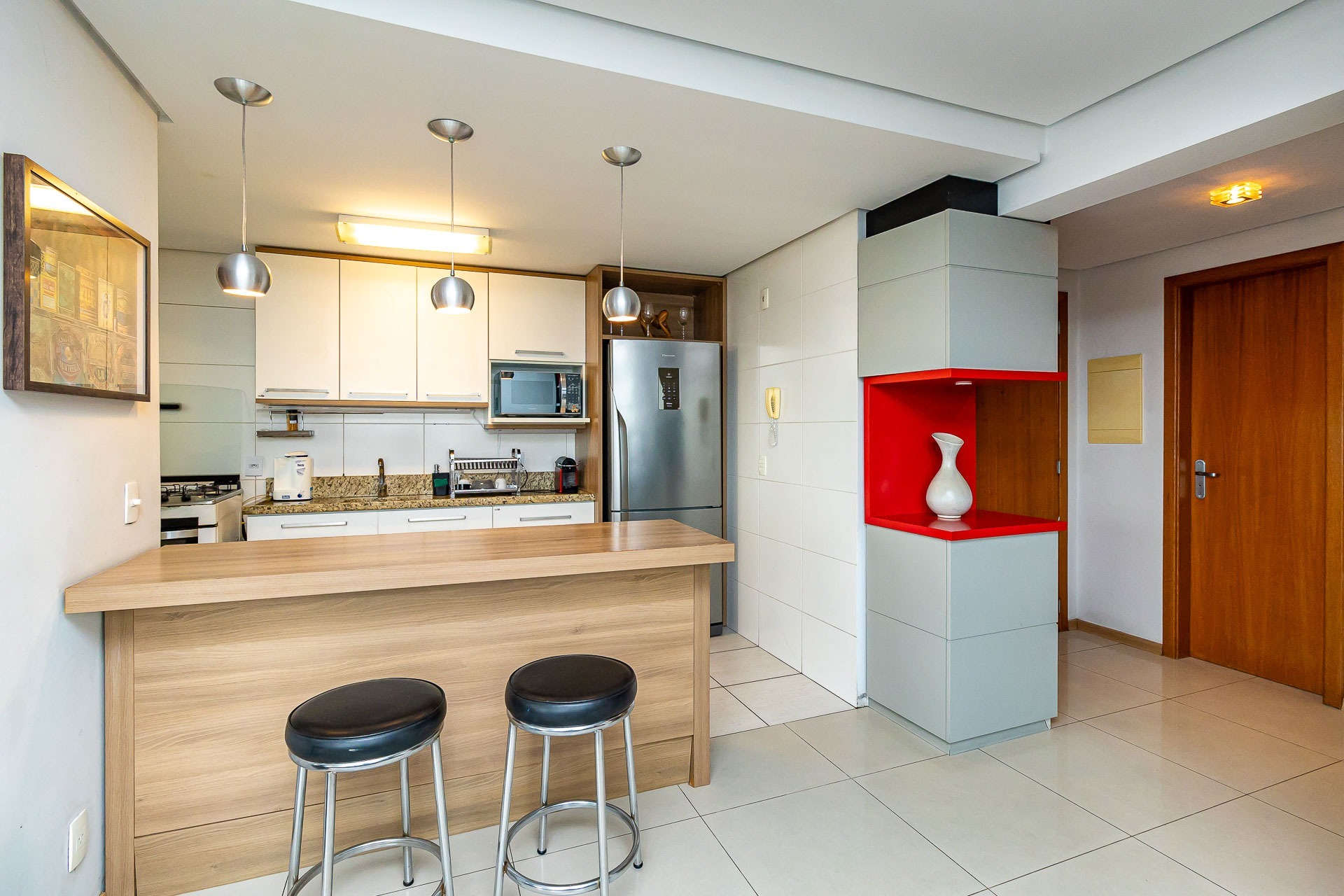 Apartamento finamente mobiliado de 1 dormitório com 44m² de área privativa,1vaga de garagem. Dispõem de uma suíte, living integrado a sala e cozinha que dispõem de churrasqueira e lavanderia, amplas aberturas proporcionando amplitude com uma linda vista, ambientes com ótima iluminação e ventilação natural. Prédio com infra como piscina, espaço fitness salão de festas e brinquedoteca. Localização p...