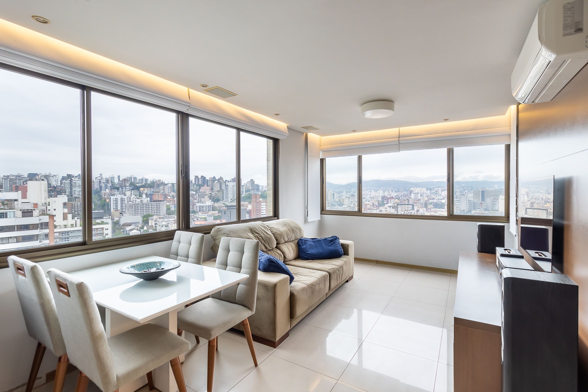 Com uma vista deslumbrante para a cidade e muito luz natural, este apartamento possui living 3 ambientes com lareira e churrasqueira, gabinete, copa cozinha, area de serviço separada, banheiro de serviço, entrada de serviço.