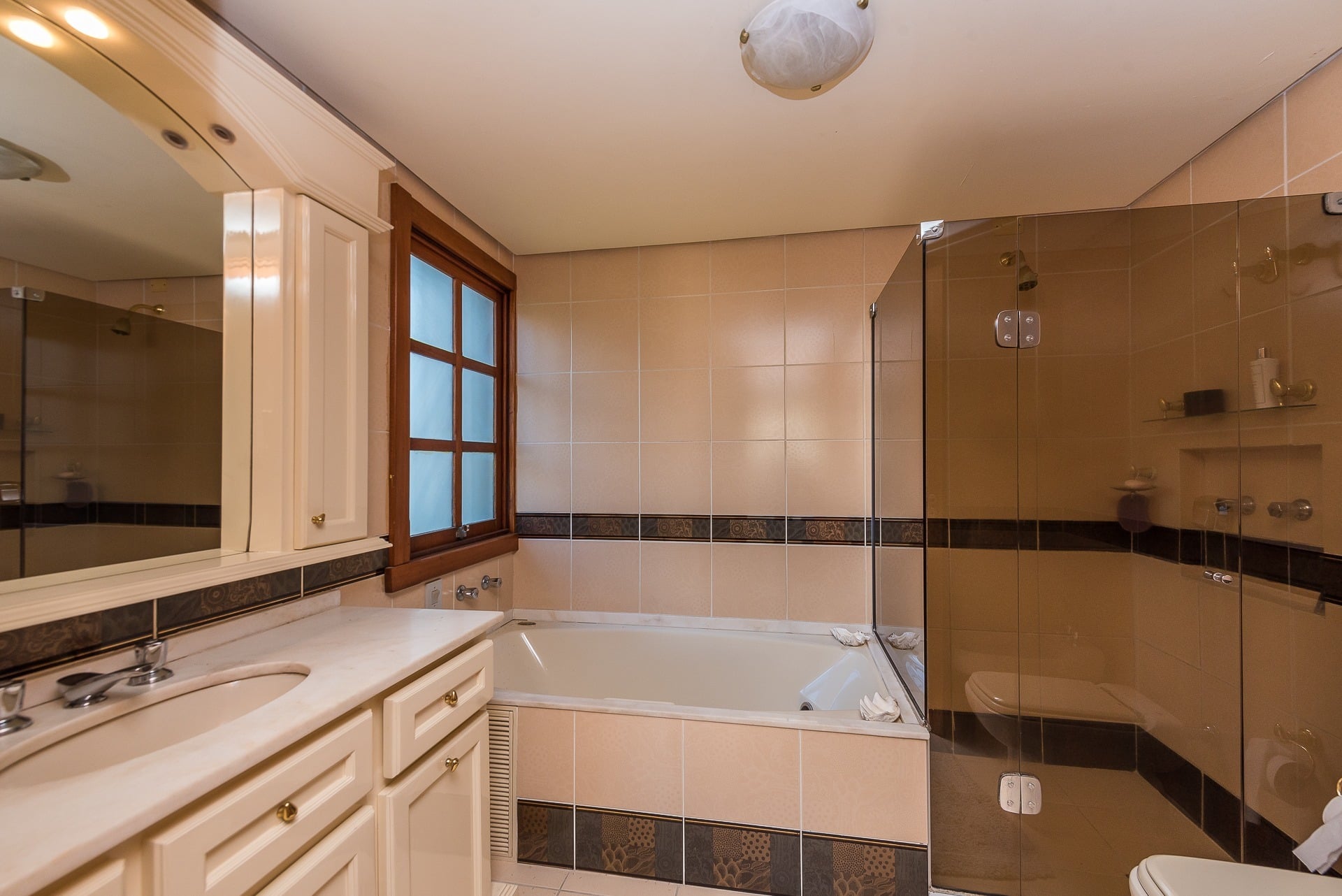 Além disso, lavabo, living 3 ambientes: sala de estar com lareira, sala de jantar e espaço gourmet. Cozinha com copa e lavanderia fechadas com 2 acessos pra área íntima e social. Banheiro auxiliar.
