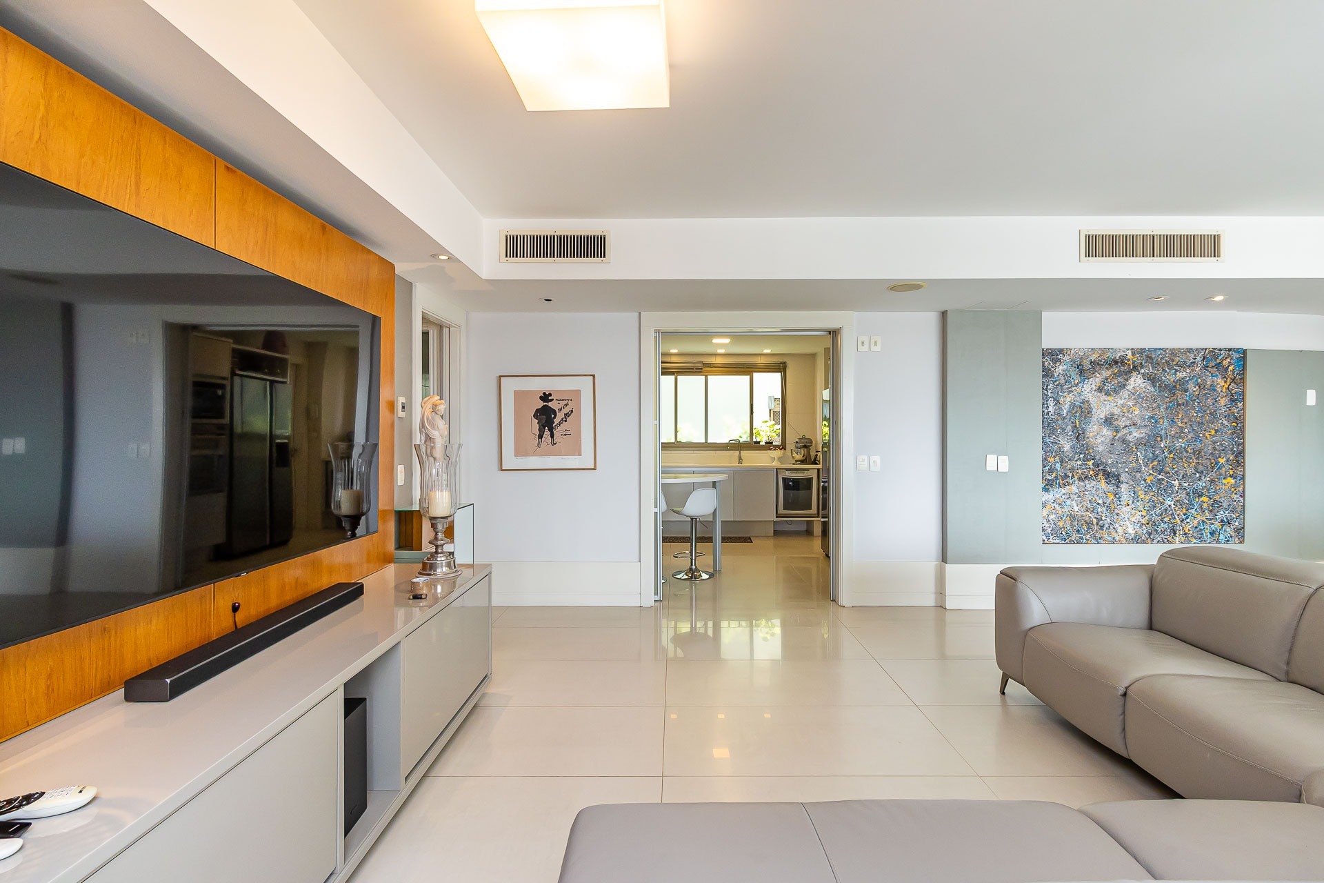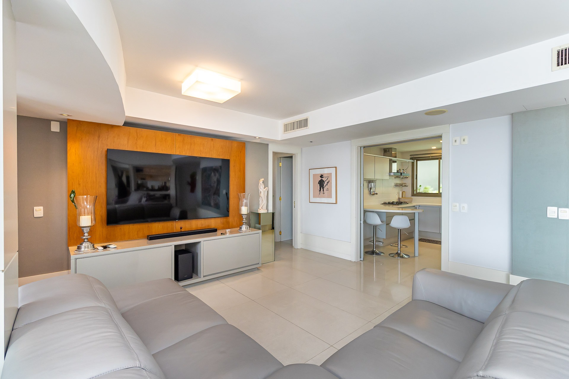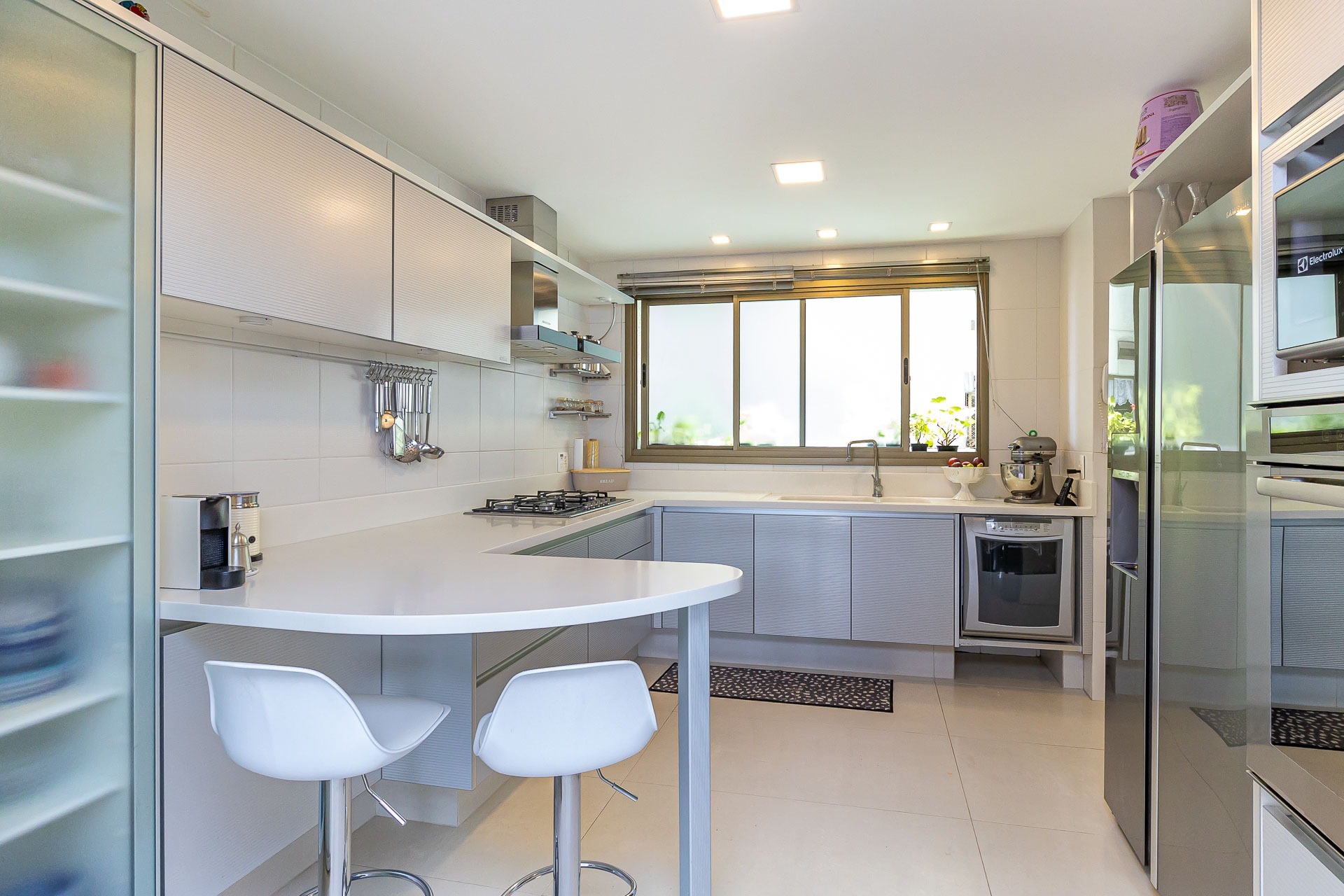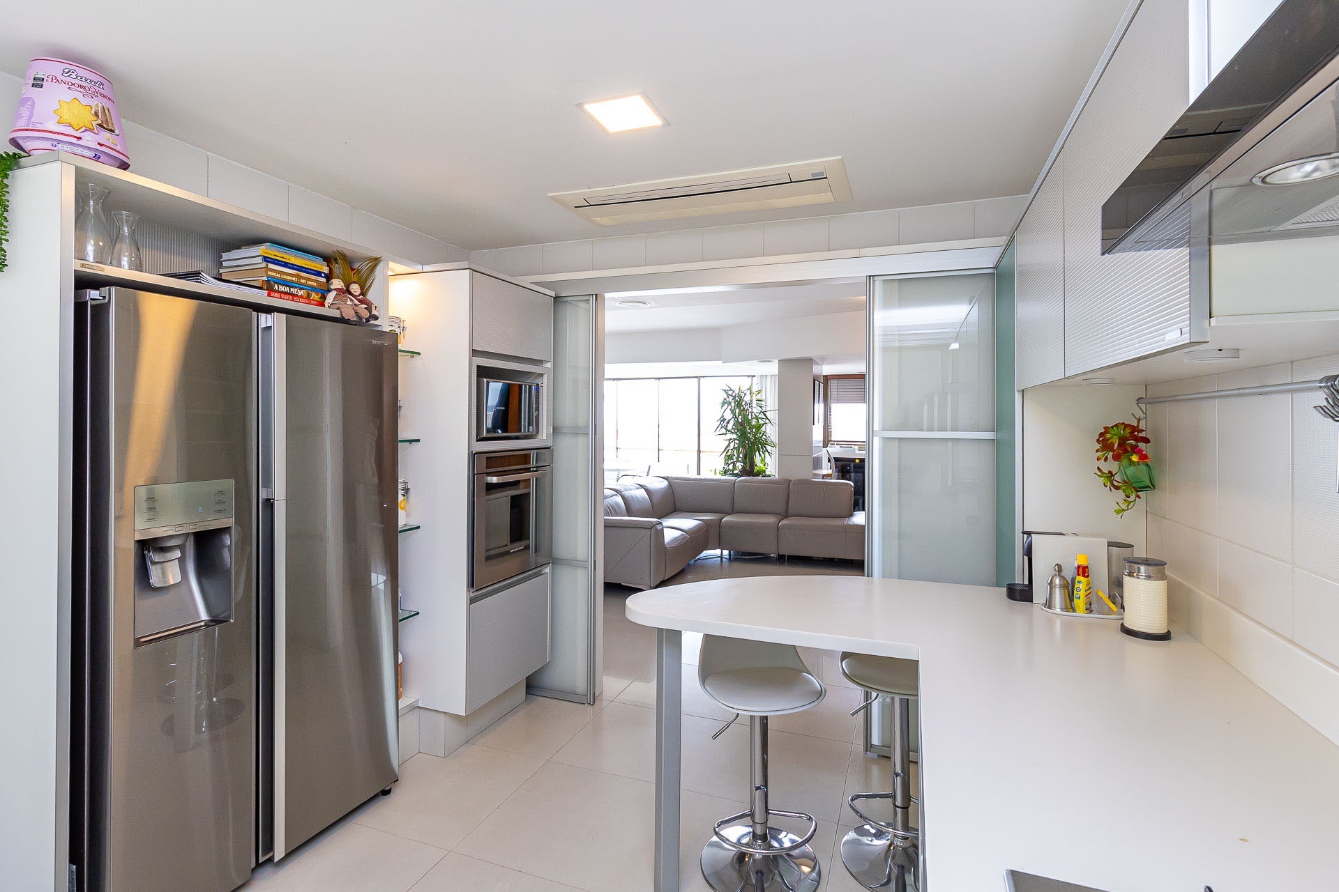 Possui área privativa de 113,96m², sendo que o imóvel conta ainda com banheiro social, amplo living 2 ambientes com churrasqueira, cozinha, área de serviço e dependência de empregada completa.