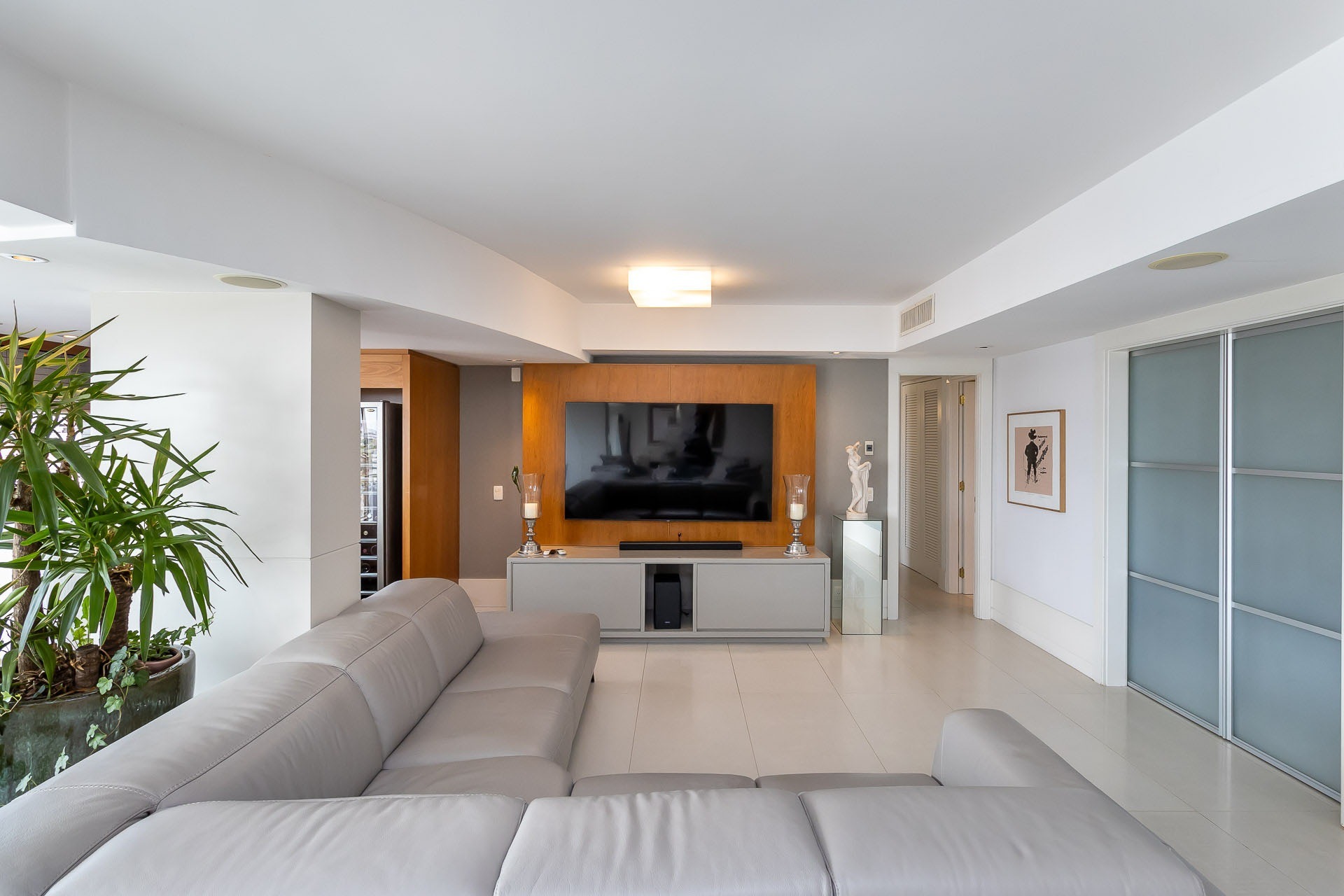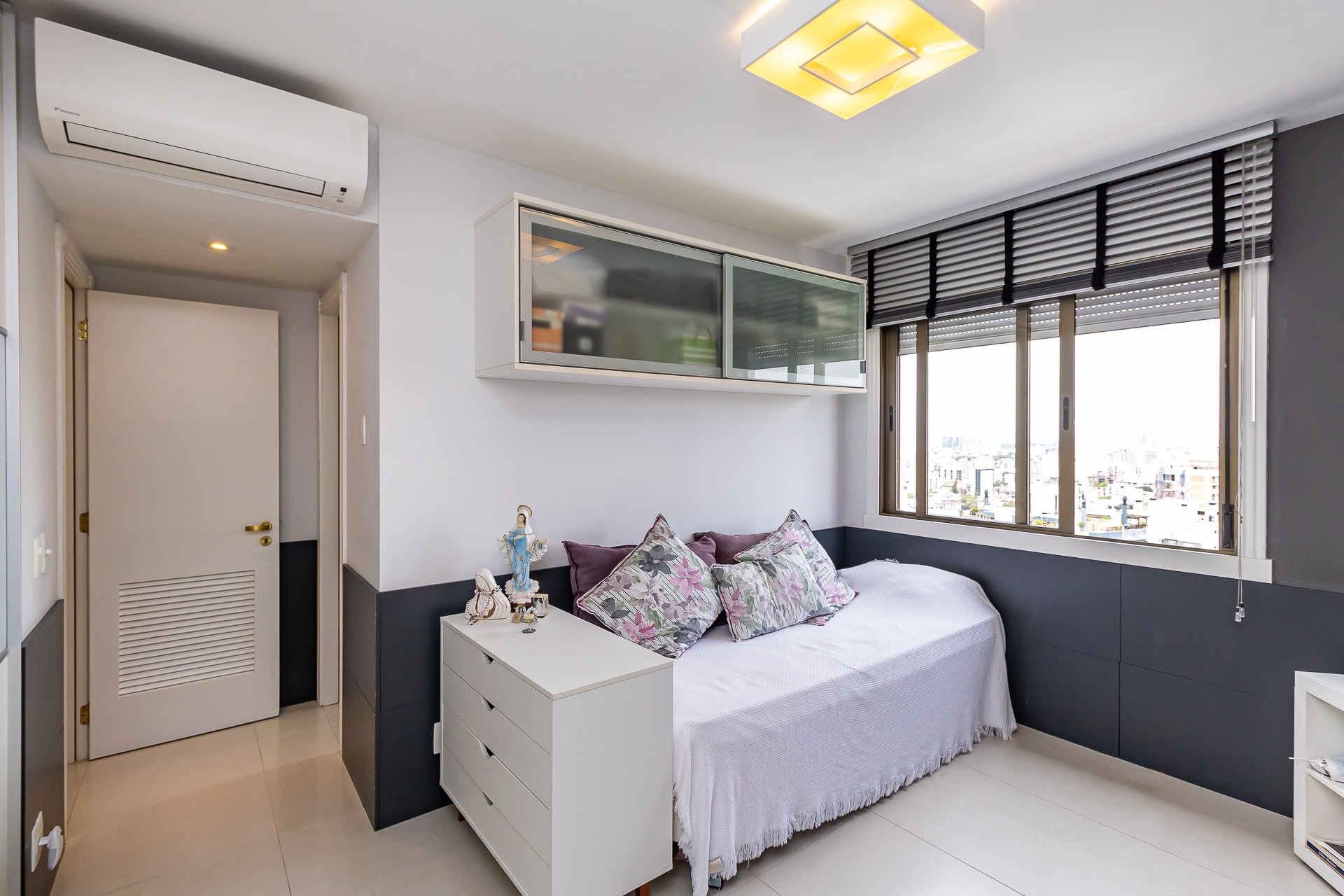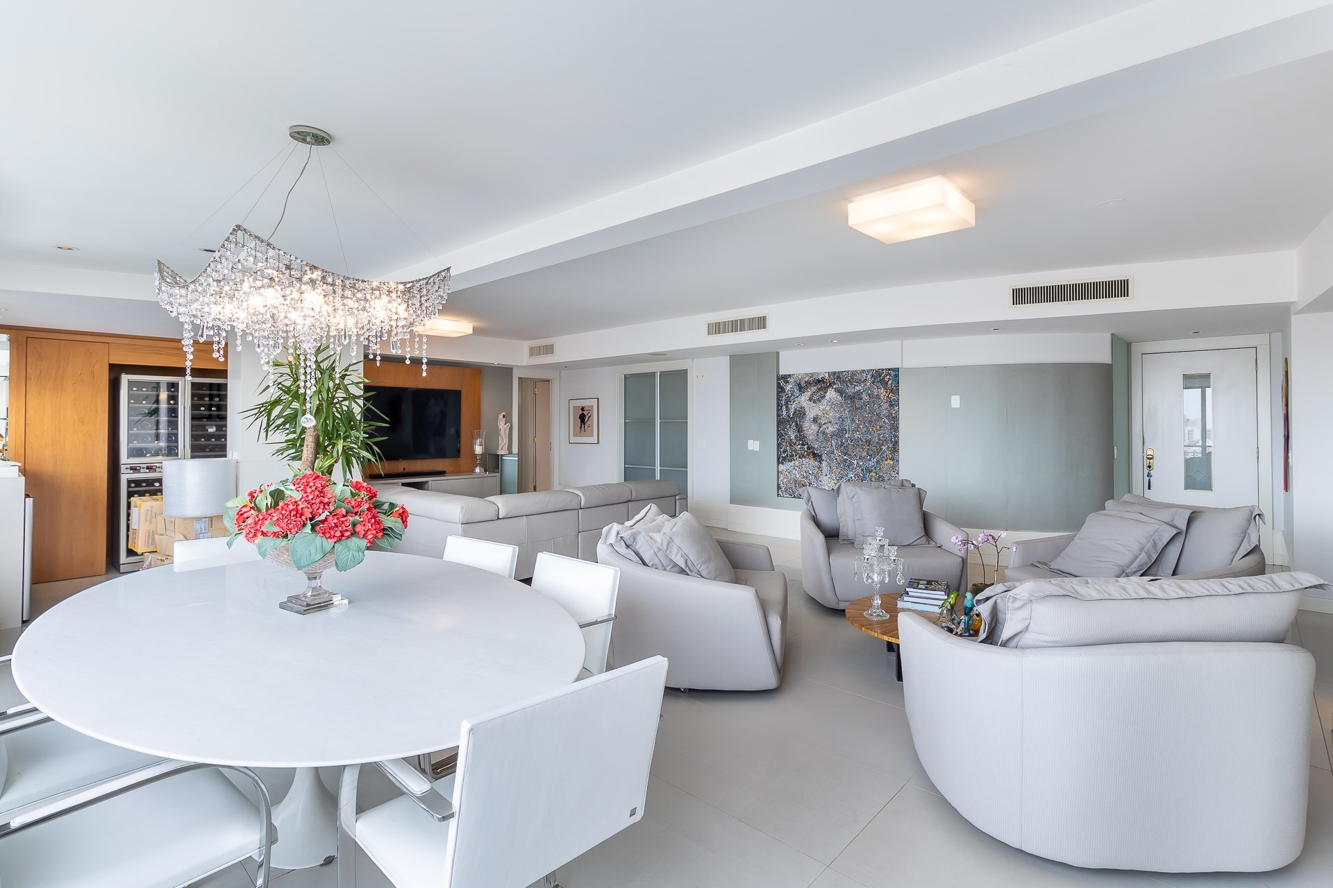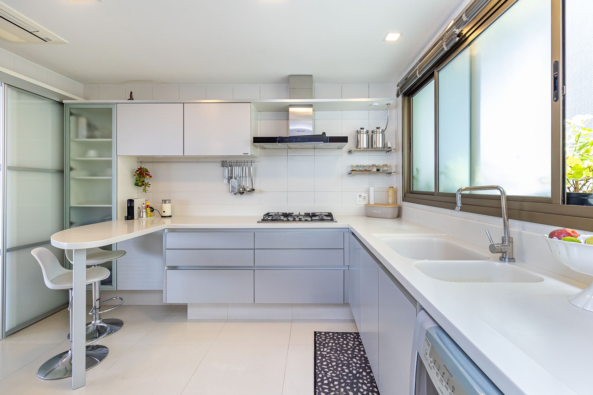 Possui área privativa de 113,96m², sendo que o imóvel conta ainda com banheiro social, amplo living 2 ambientes com churrasqueira, cozinha, área de serviço e dependência de empregada completa.