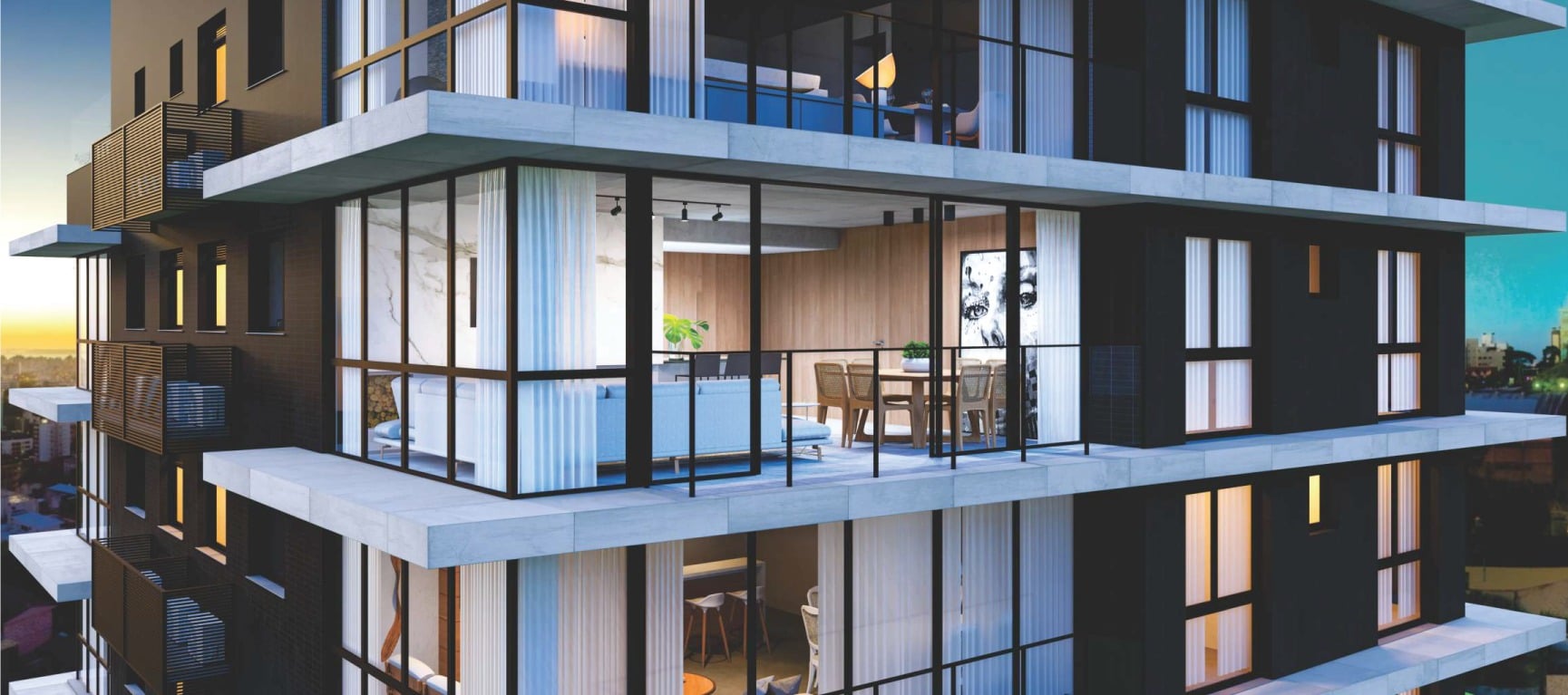 A disposição de 2 apartamentos por andar sem comunicação entre eles garante privacidade, enquanto as opções de 3 ou 4 suítes proporcionam flexibilidade.