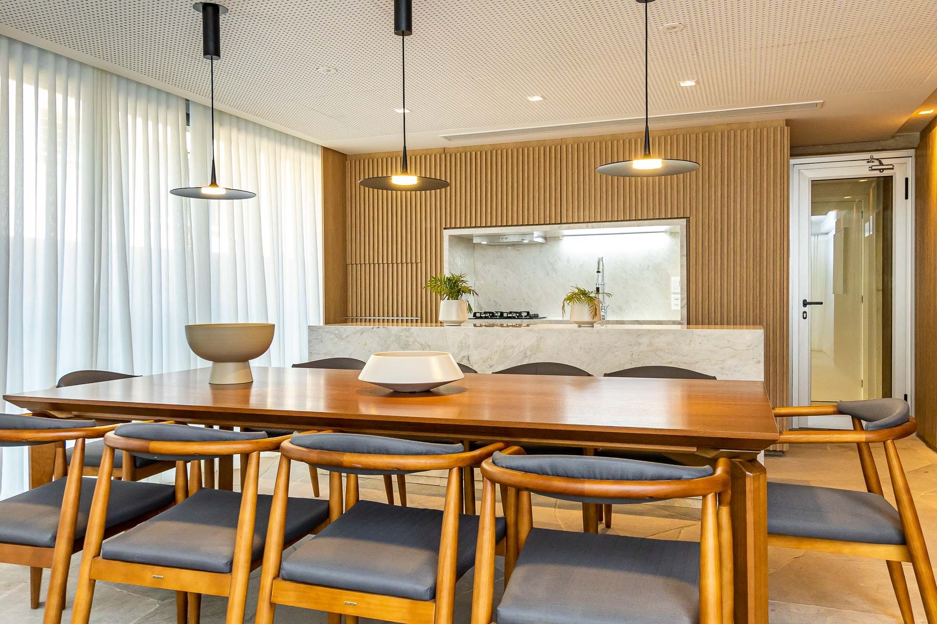 O interior do apartamento é totalmente mobiliado e decorado por uma arquiteta, com um design moderno e acolhedor. A cozinha, equipada com churrasqueira, é perfeita par...