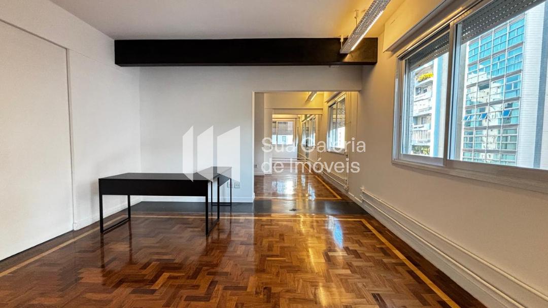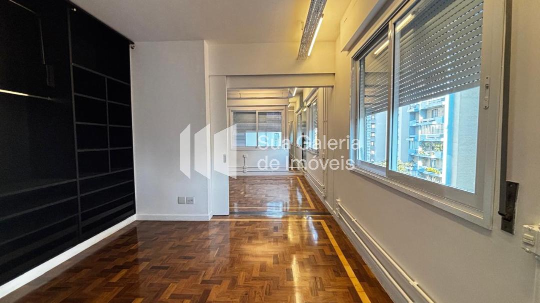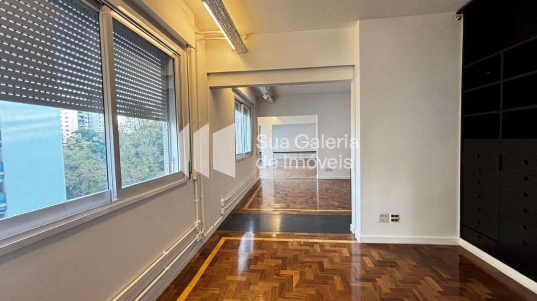 Edifício projetado por Guido Gregorini, estilo modernista, com 2 torres geminadas, 2 apartamentos por andar. • Área útil: 151 m² • 3 dormitórios, sendo 1 suíte. Um dos dormitórios pode estar adaptado como escritório ou home theater.  • Banheiro social • Sala ampla para dois ambientes (estar + jantar), com boa iluminação natural, vista livre para o Parque Trianon ou árvores da rua • Terraço ou va...