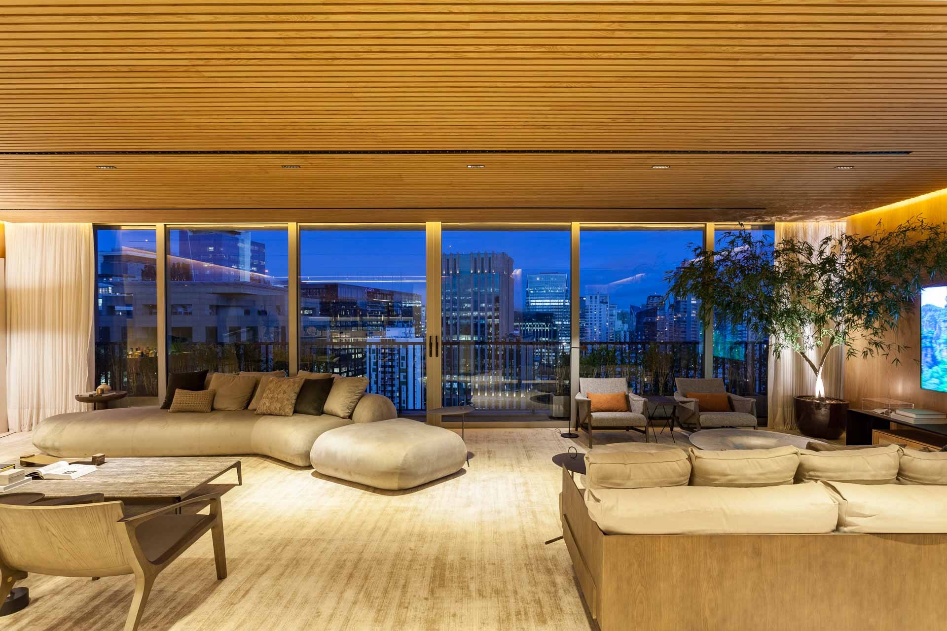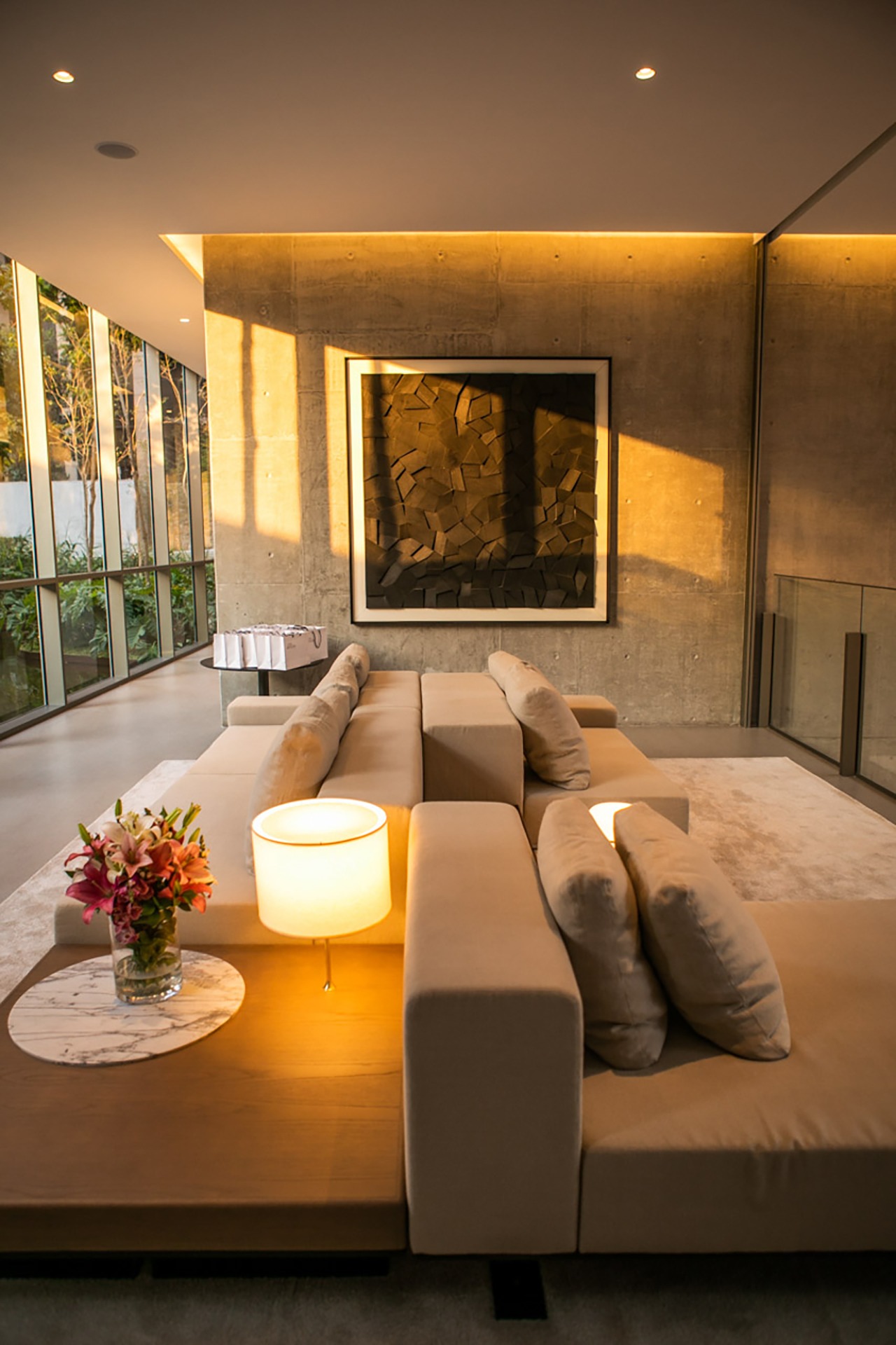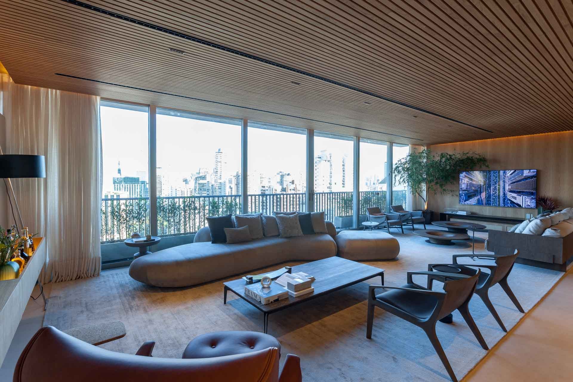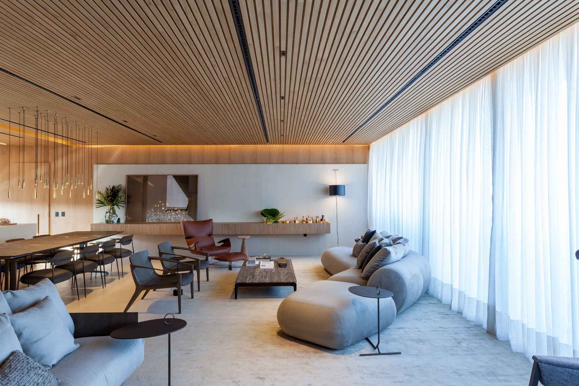 UM AMPLO LIVING, COM PÉ DIREITO DUPLO E UMA ILUMINAÇÃO NATURAL IMPRESSIONANTE, QUE OFERECE UMA EXPERIÊNCIA COMPLETA DE BEM-ESTAR E ACONCHEGO.