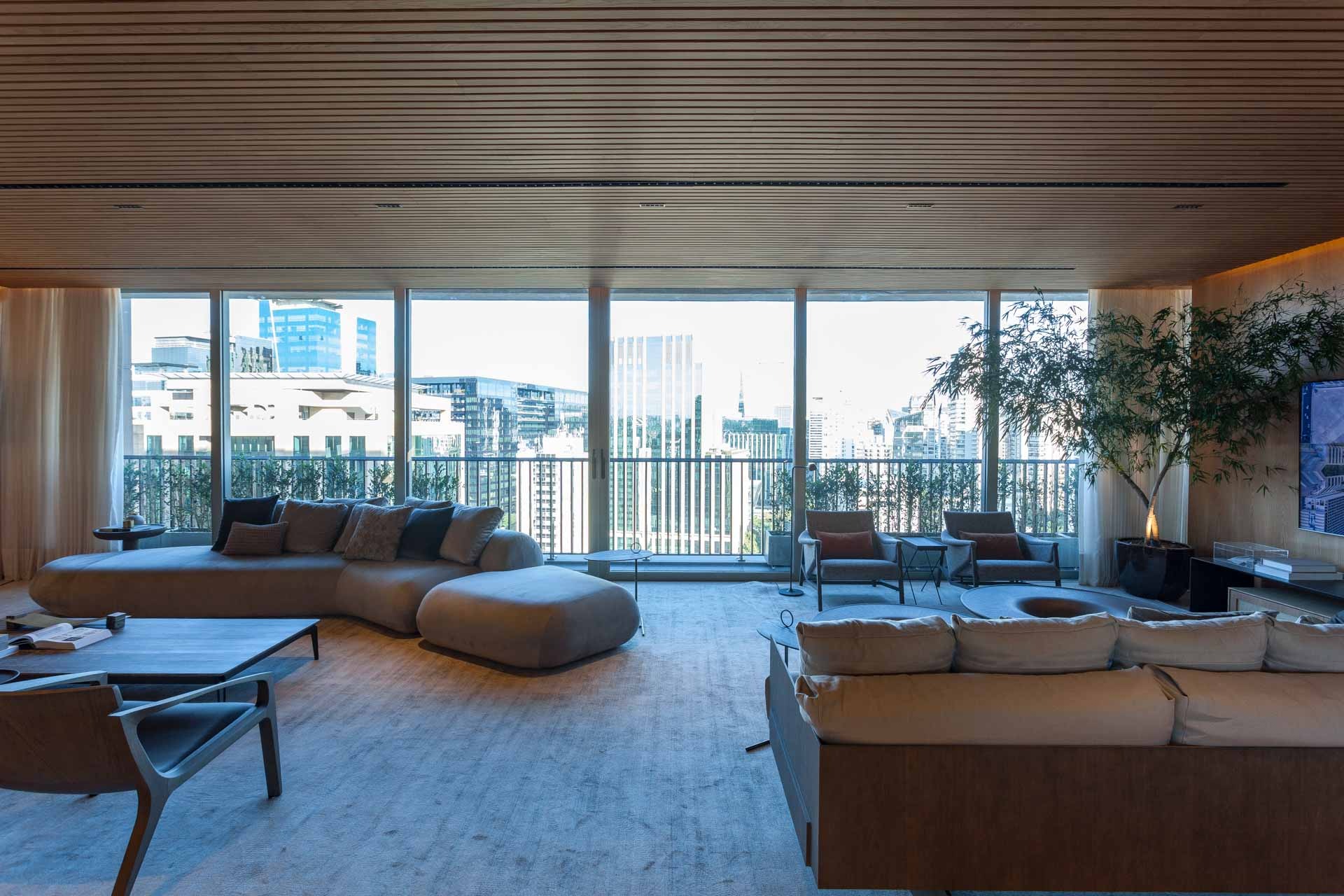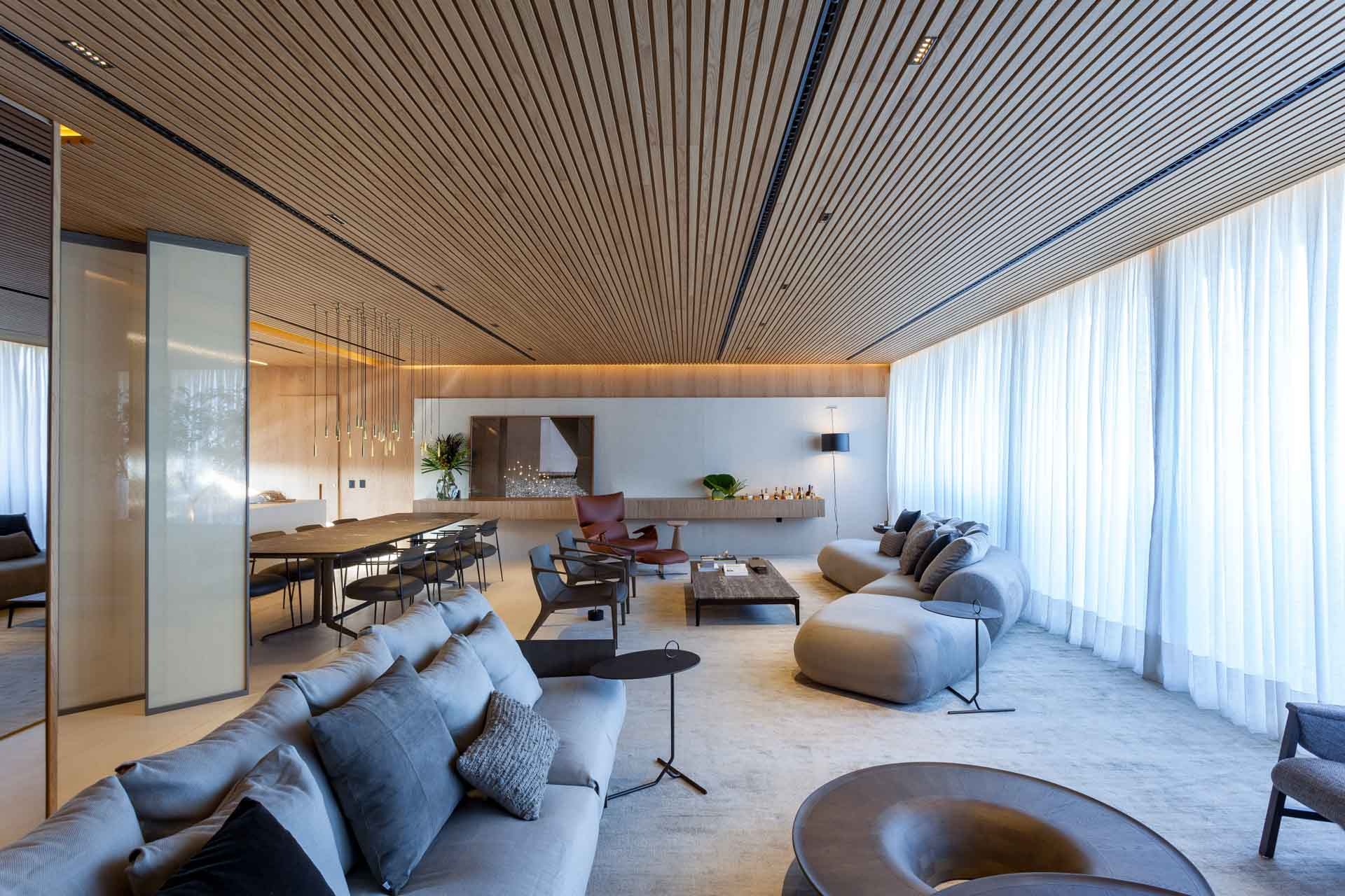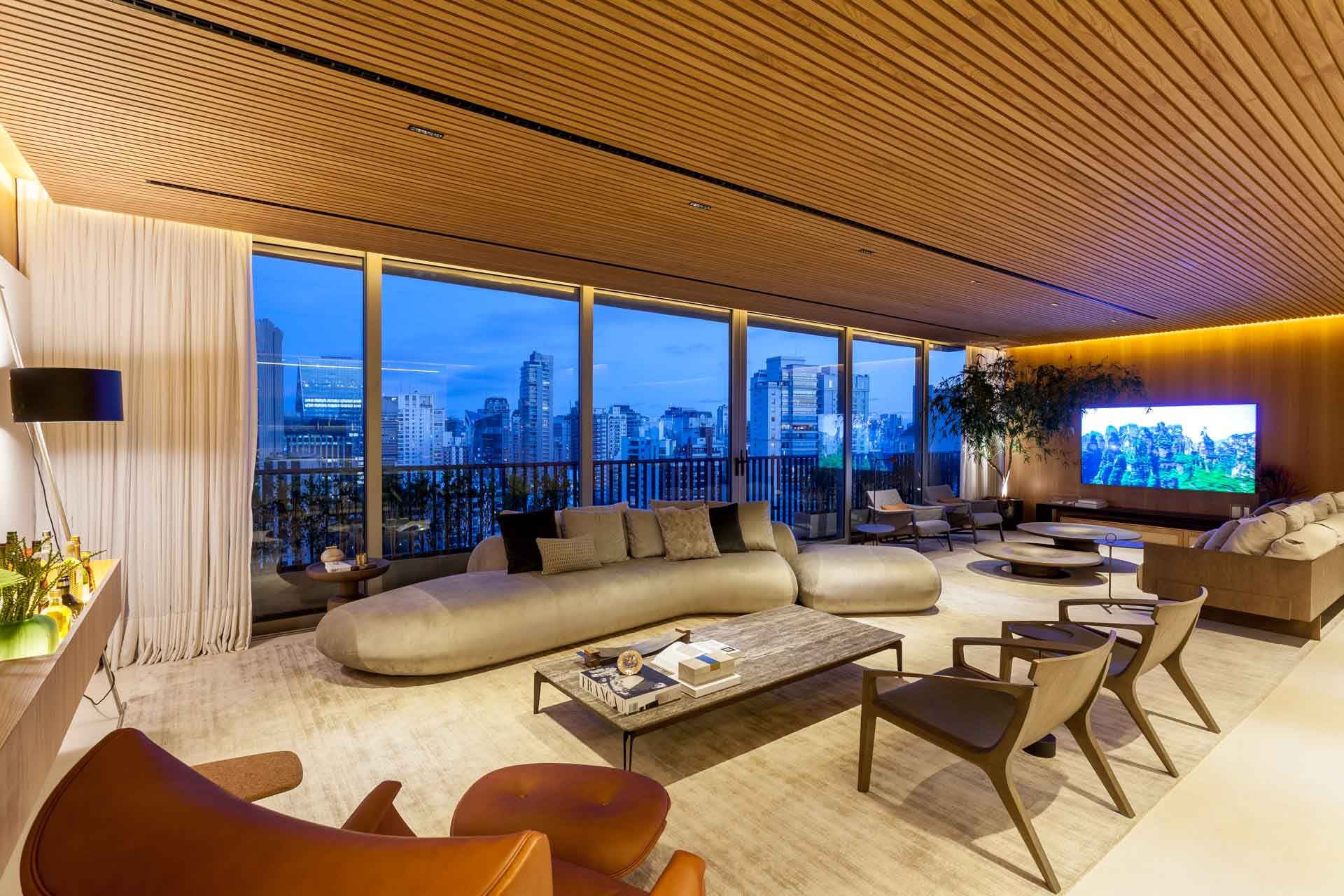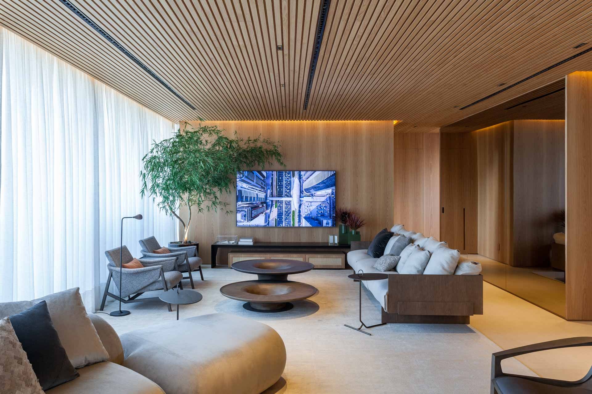 UM AMPLO LIVING, COM PÉ DIREITO DUPLO E UMA ILUMINAÇÃO NATURAL IMPRESSIONANTE, QUE OFERECE UMA EXPERIÊNCIA COMPLETA DE BEM-ESTAR E ACONCHEGO.