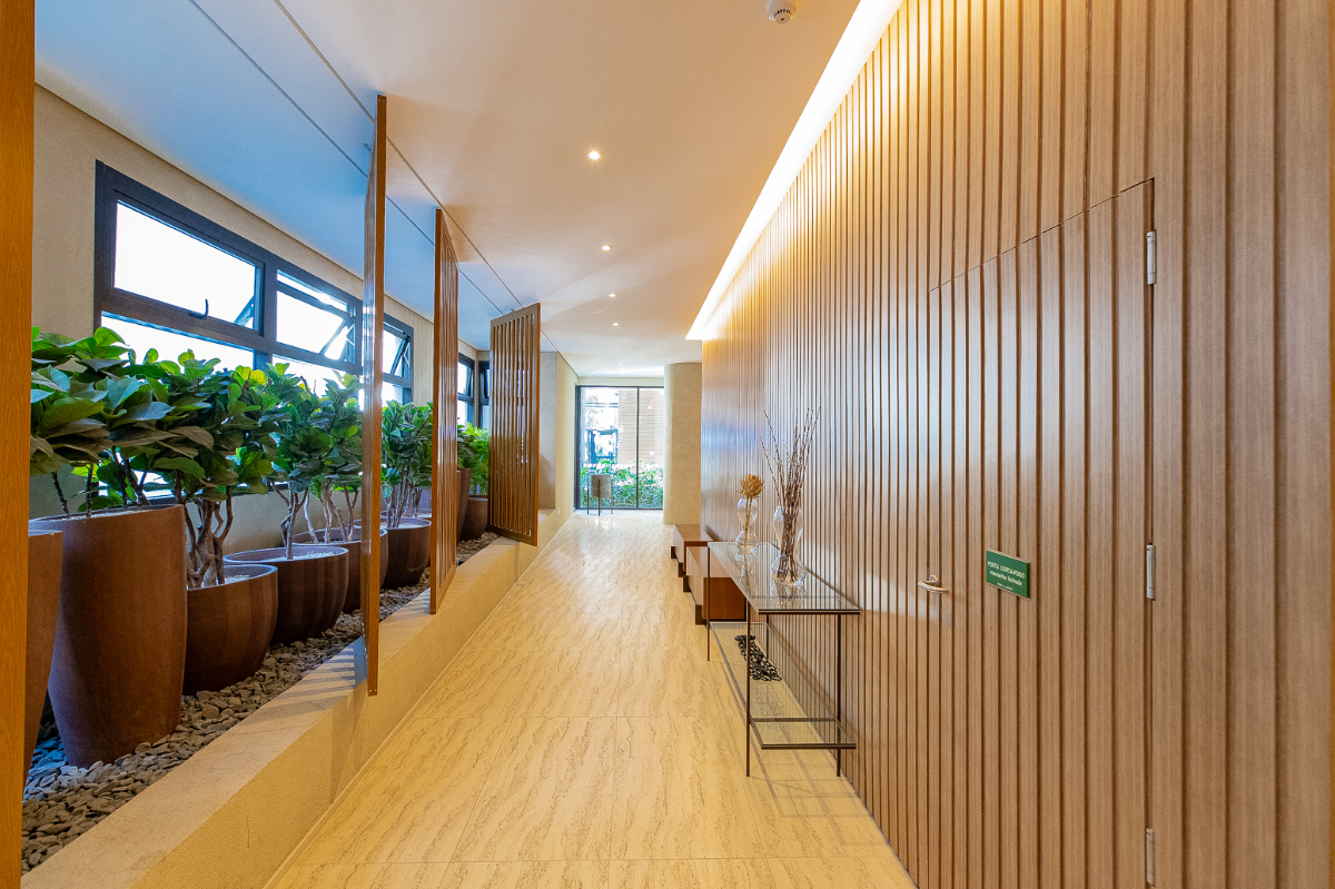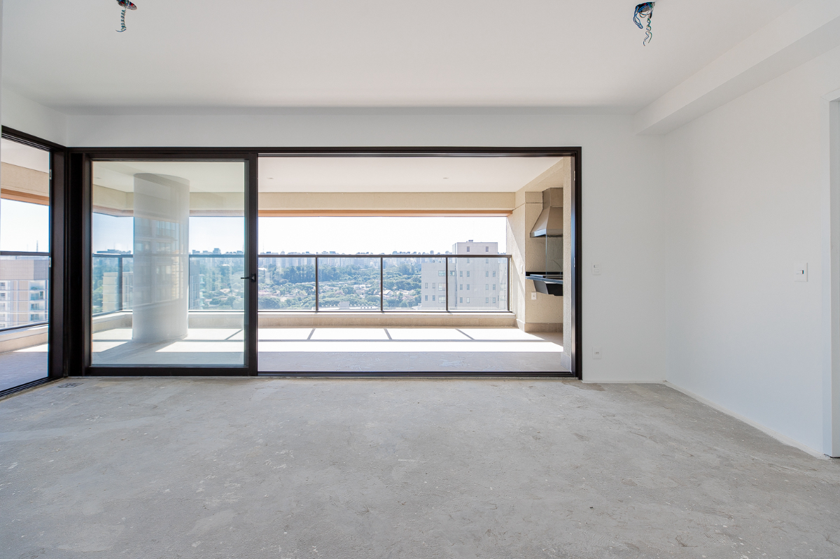 Apresentamos um apartamento espetacular em andar alto, com uma vista privilegiada e hall privativo que já revela a sofisticação do espaço.