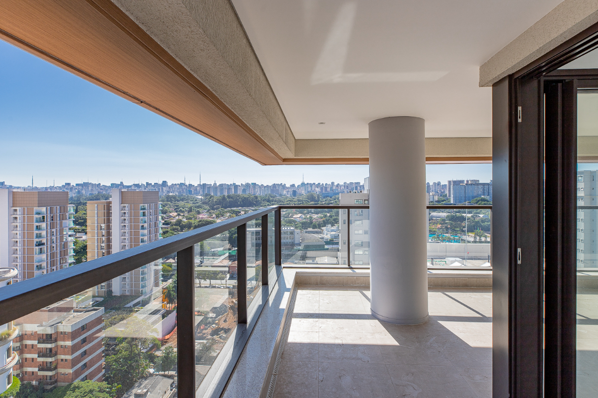 Com 203m², vista para o parque Ibirapuera, com 3 suítes, banheiros sr e sra, sala ampla para dois ambientes, varanda gourmet, lavabo, copa, cozinha, área de serviço, armários embutidos com excelente acabamento, banheiros em mármores, piso de madeira taco, em área de circulação interna (social/serviço, quartos e living); varanda fechada com estante, balcão de ár...