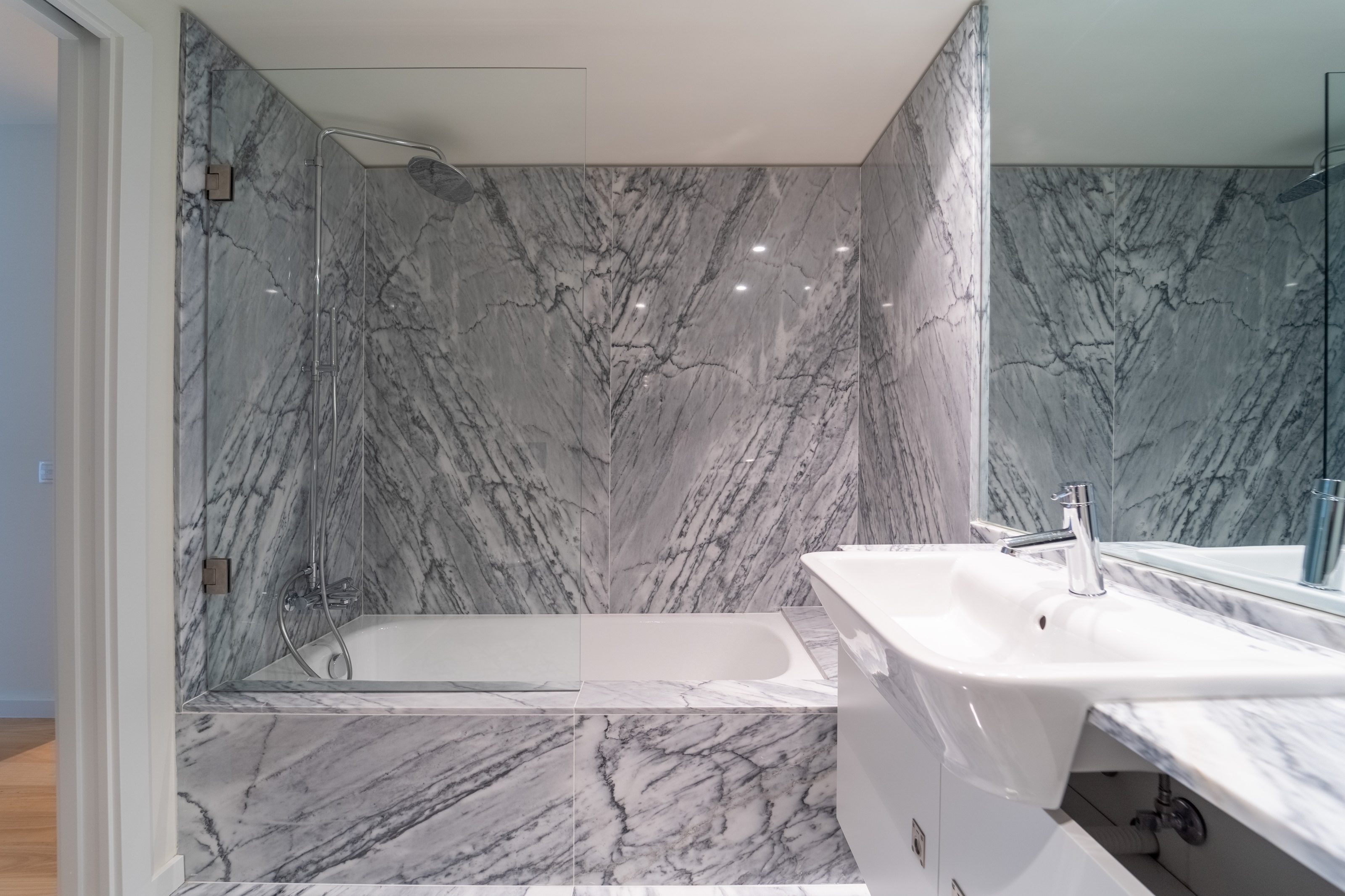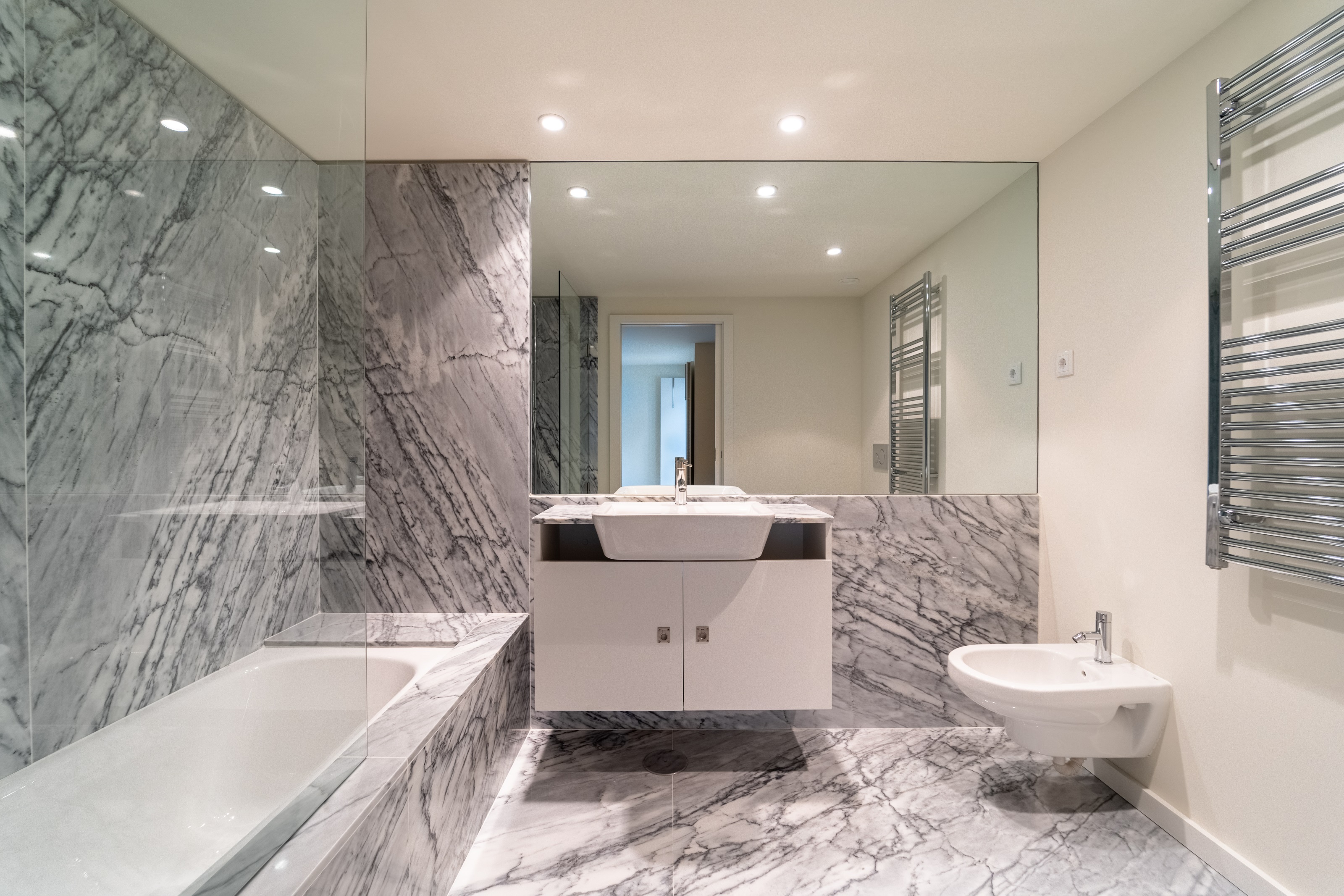 Caracterizado pela excelência dos acabamentos tetos falsos, carpintarias lacadas e casas de banho com pisos em mármore e paredes com acabamento em mármore.