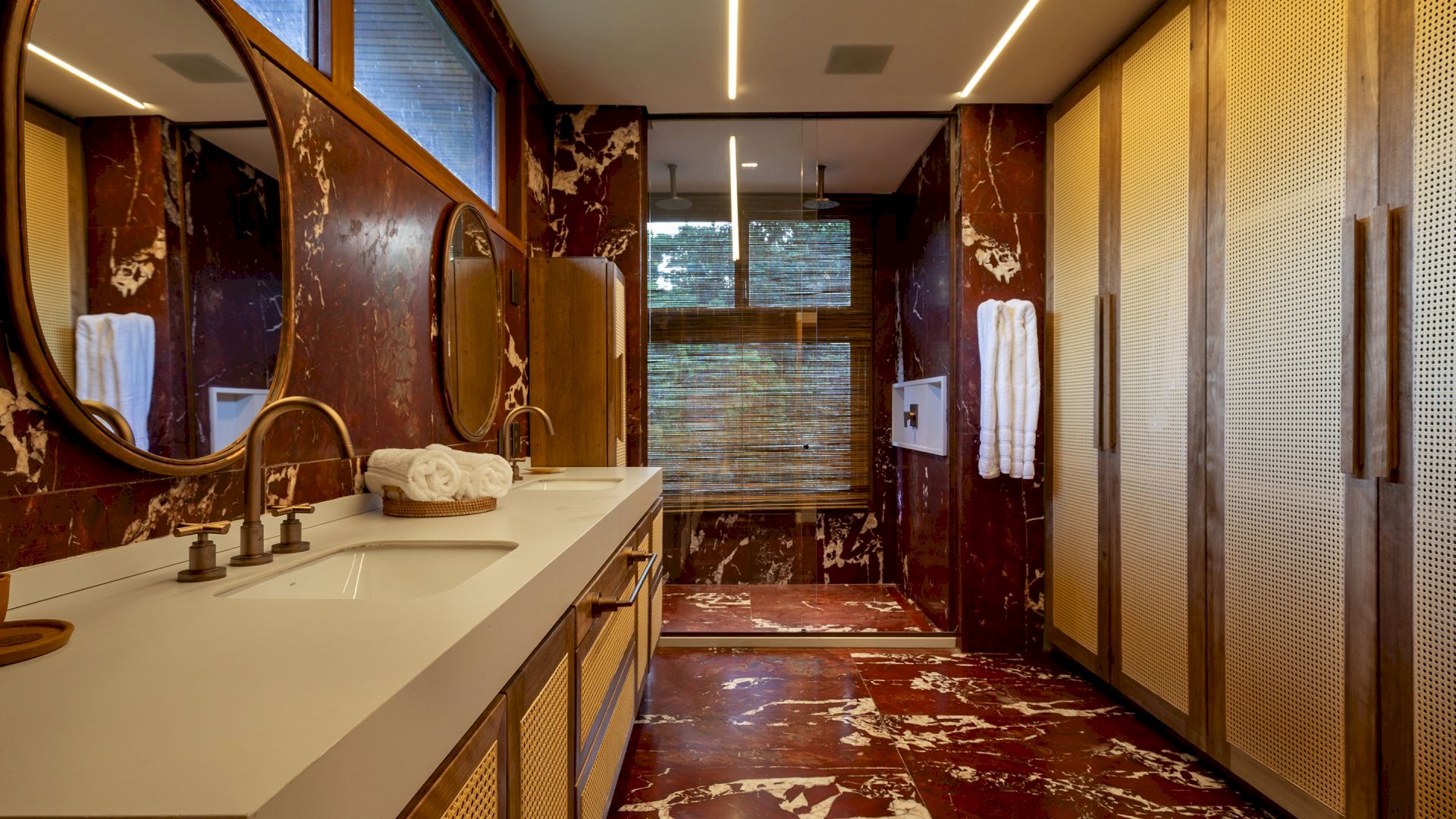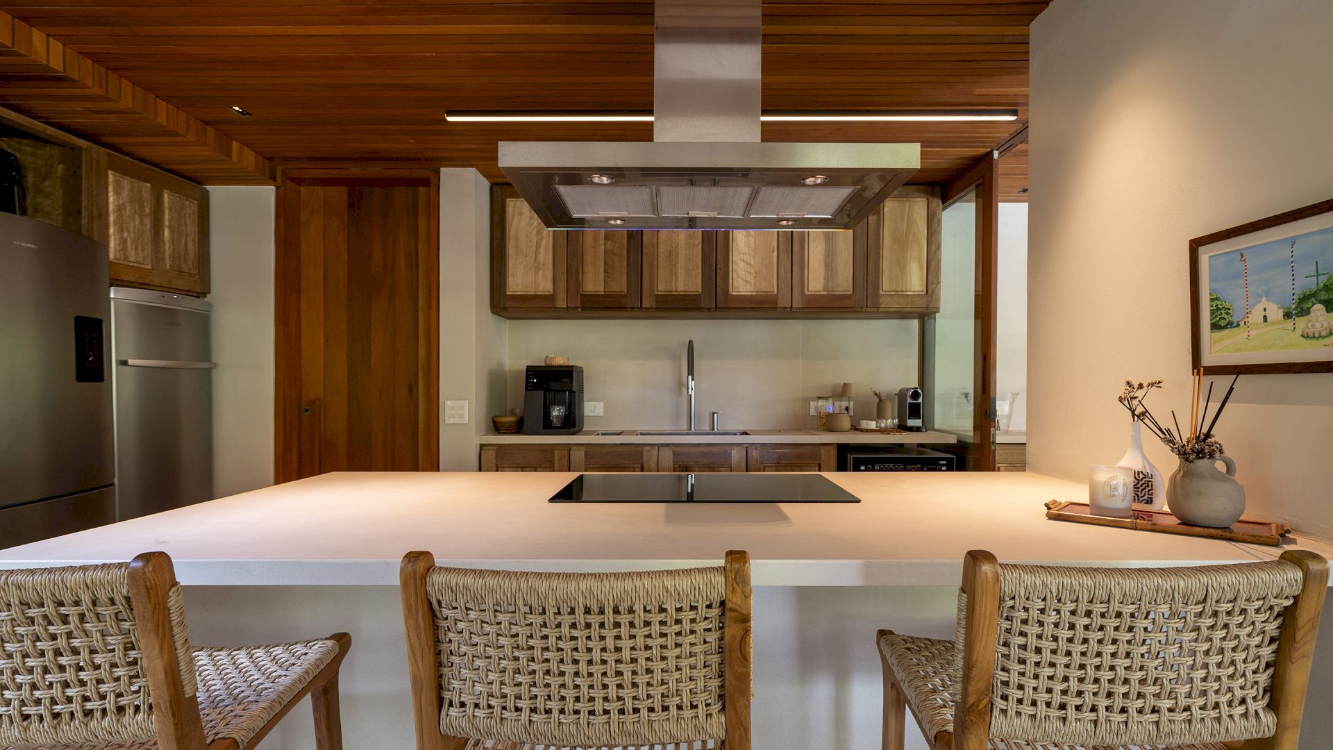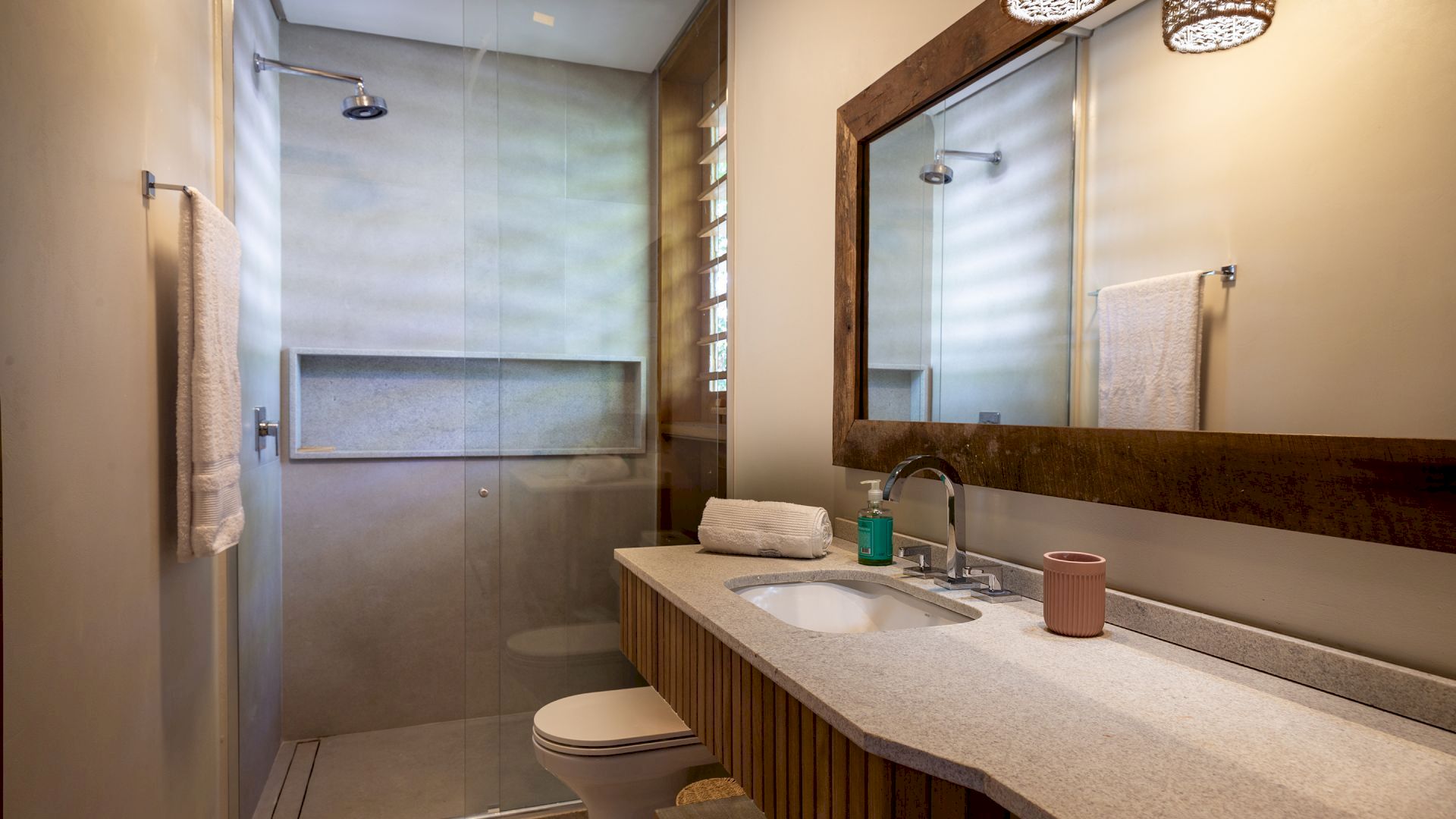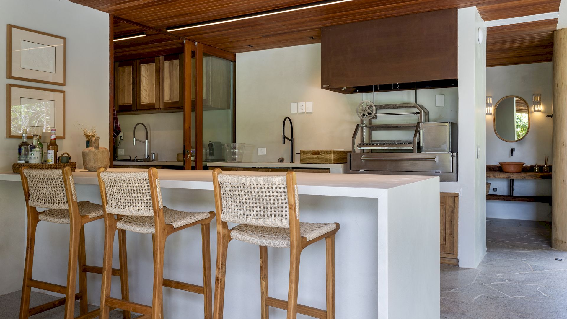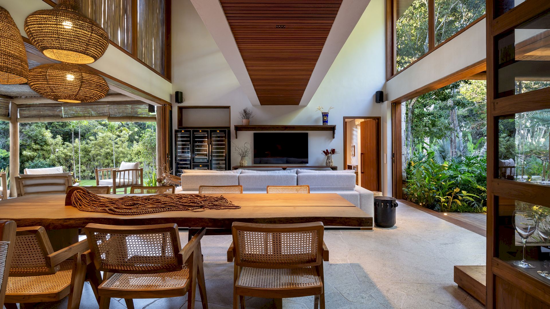 A Villa em si é um exercício de curadoria e conforto. Composta por duas suítes principais — sendo uma Master de generosas proporções e uma configuração de suíte americana com dois dormitórios e banheiro compartilhado —, a residência é o refúgio ideal para famílias que não abrem mão da sofisticação. Cada detalhe foi pensado para elevar a experiência sensorial: desde o sistema de som integrado e o home theater de última geração até a adega de vinhos, item indispensável para quem, assim como eu, compreende que um grande momento merece ser harmonizado com um rótulo à altura.