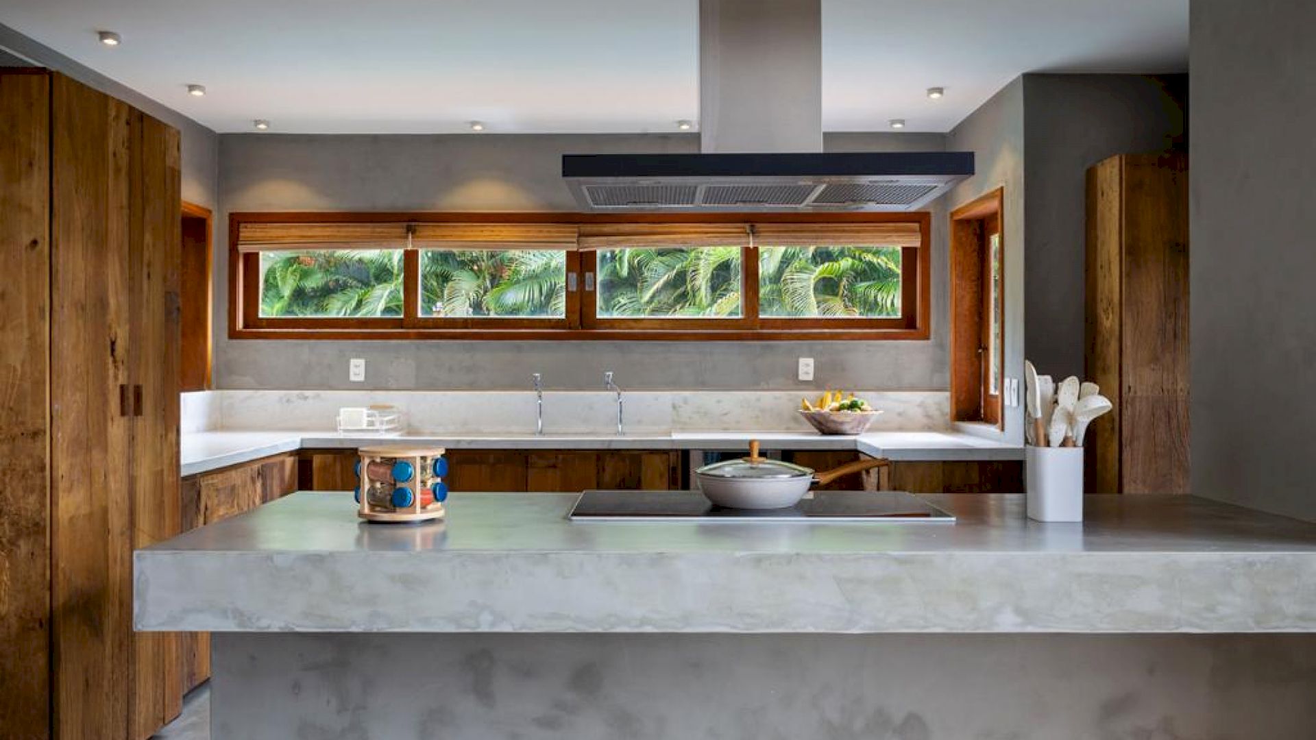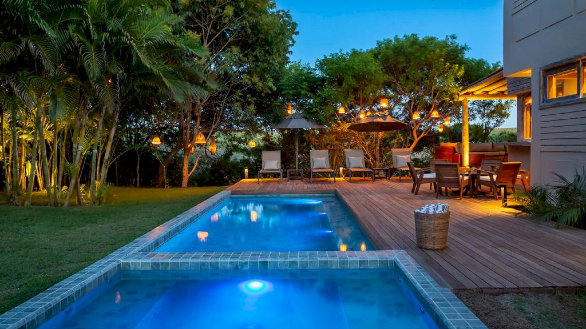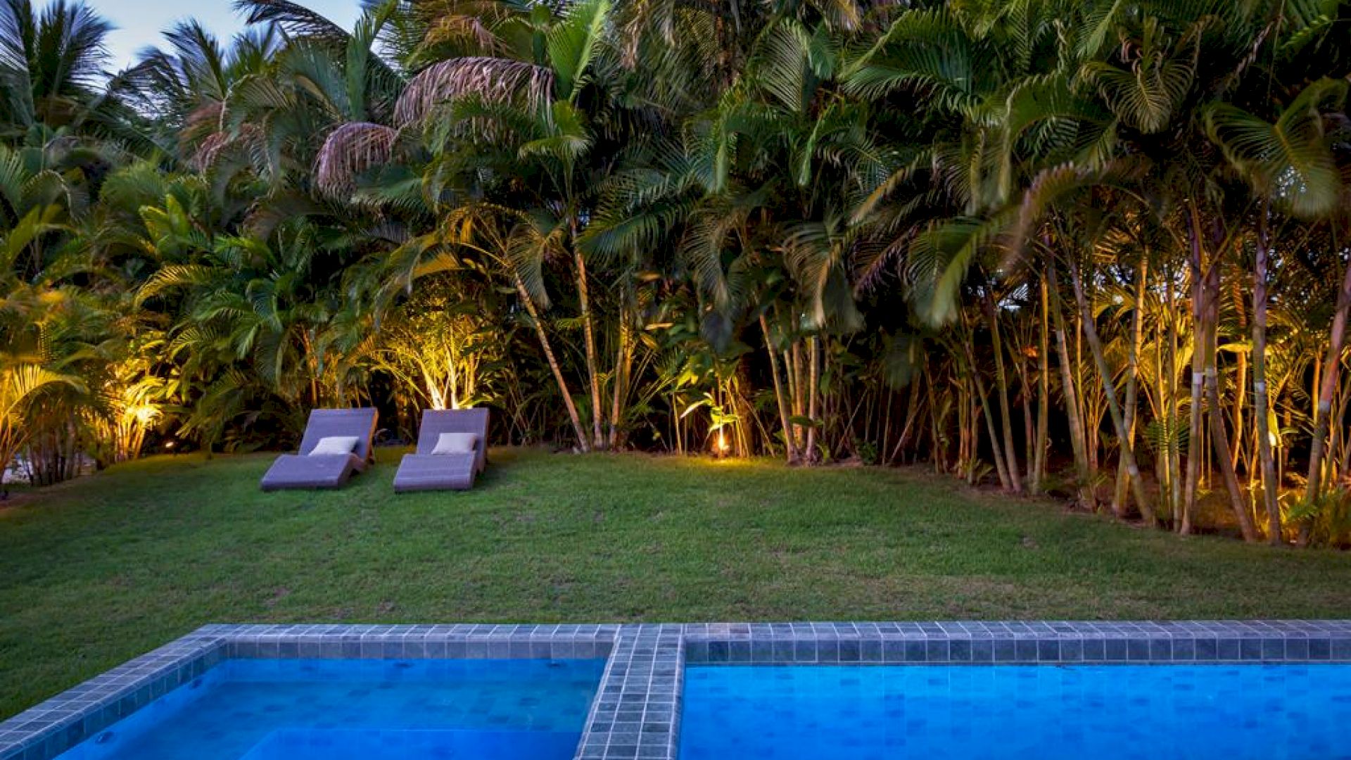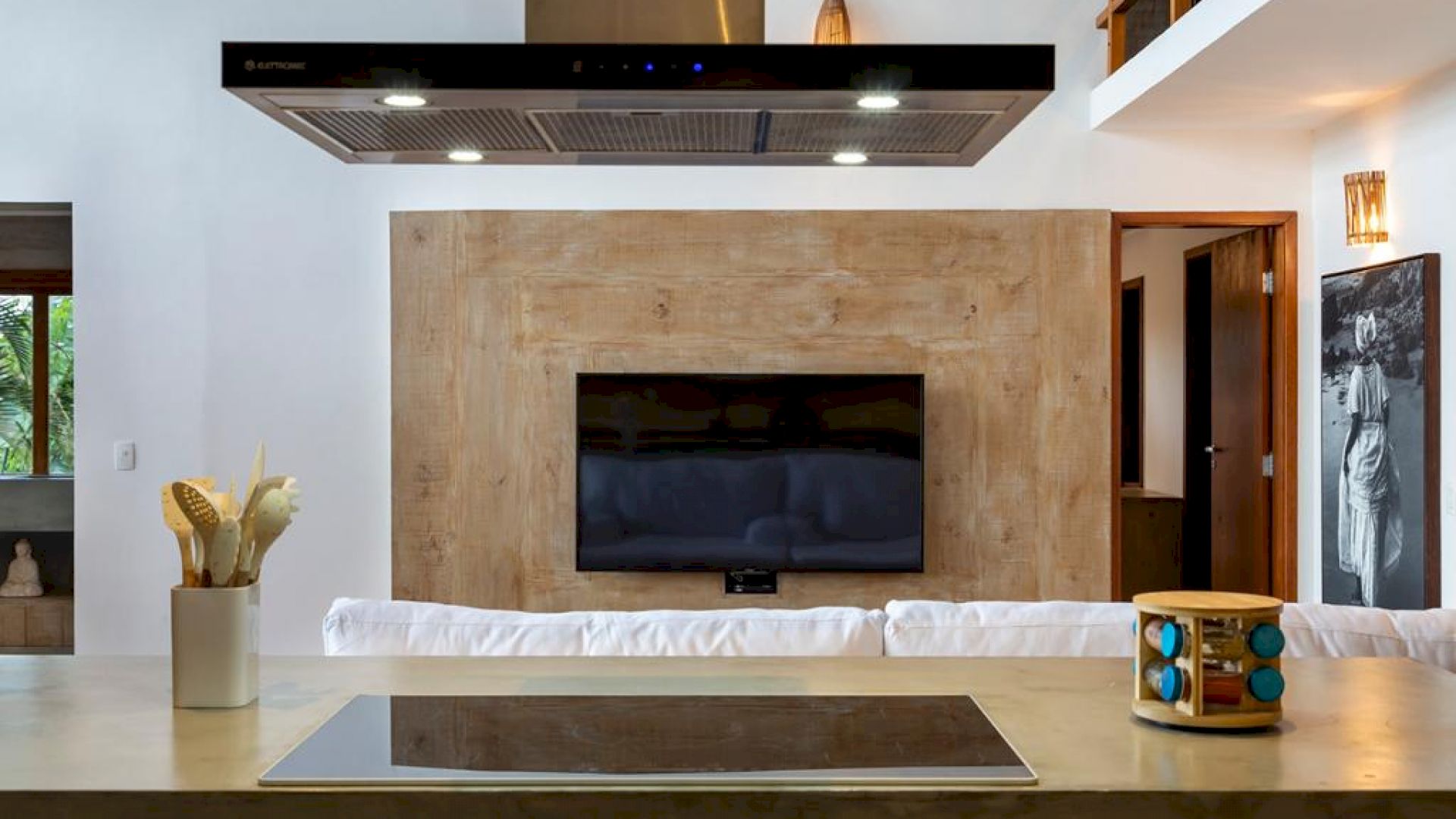 A residência, erguida sobre um terreno de 800 m² com 450 m² de área construída, foi projetada para ser uma ode ao bem-estar. Toda a sua área social e de lazer volta-se para o horizonte infinito do campo de golfe, criando uma sensação de amplitude e liberdade que poucos imóveis conseguem oferecer. O paisagismo tropical abundante envolve a piscina com hidromassagem, enquanto a varanda gourmet, equipada com churrasqueira estilo parrilla, máquina de gelo e cervejeira, torna-se o palco ideal para harmonizações gastronômicas memoráveis sob a brisa da Bahia.