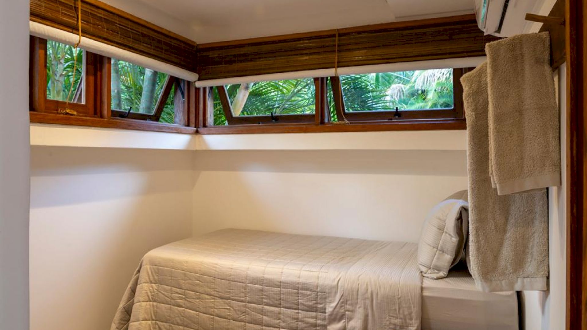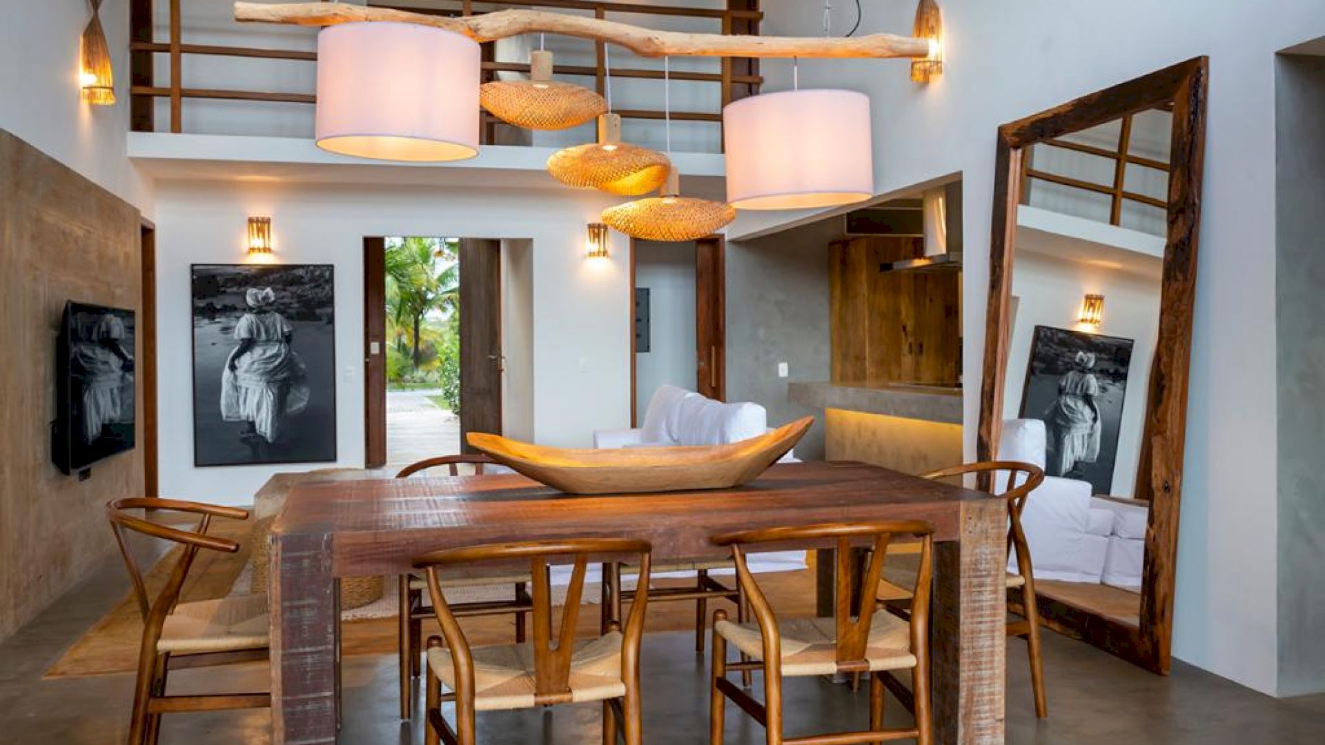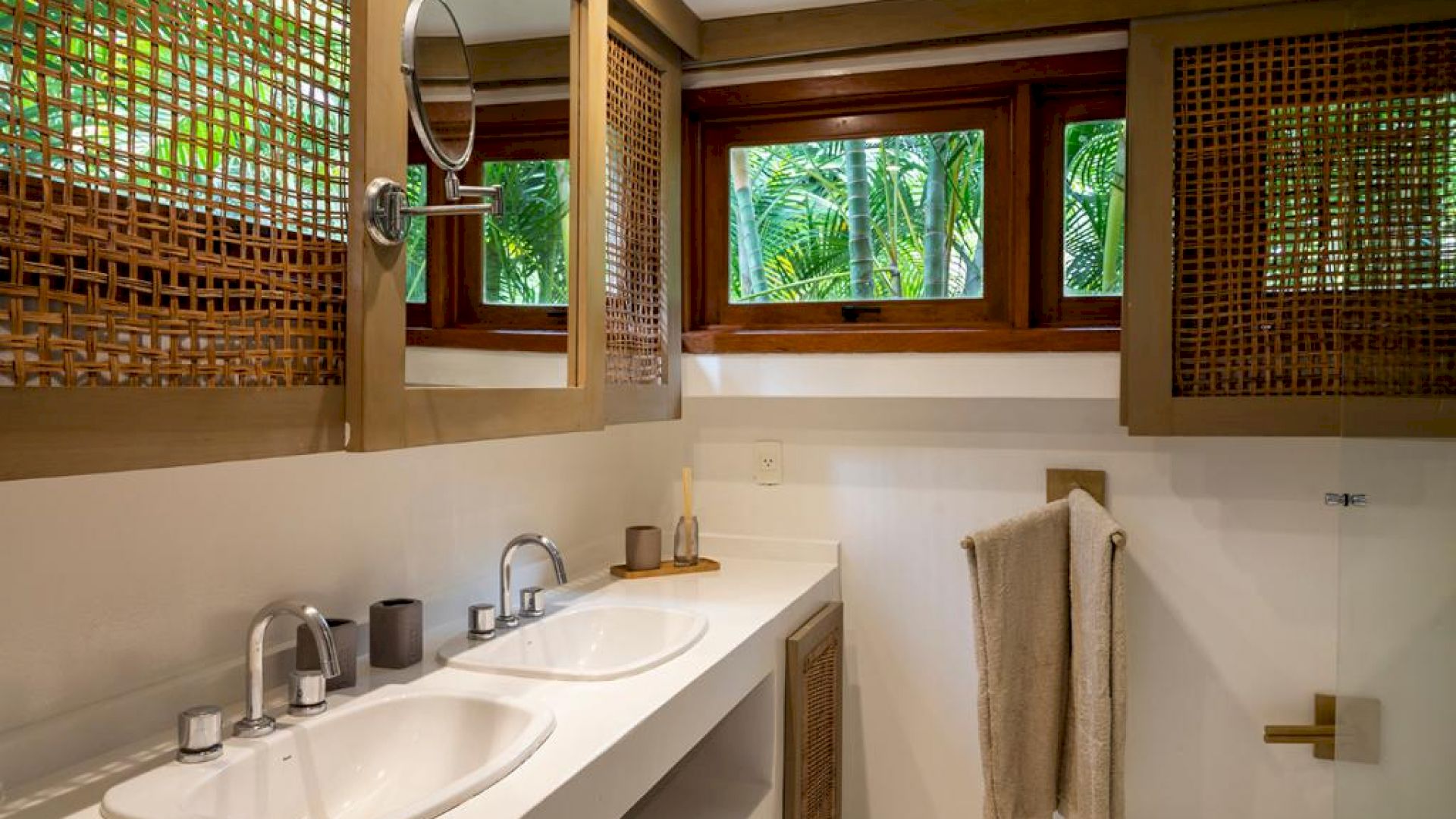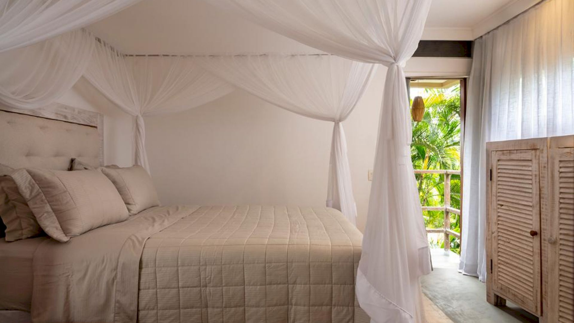 A ala íntima é um convite ao repouso profundo, composta por quatro suítes climatizadas que acolhem até oito hóspedes com total privacidade. A suíte master, com sua cama Super King e closet, é um refúgio de serenidade, enquanto as demais suítes, adornadas com mosquiteiros clássicos, remetem à elegância rústica e