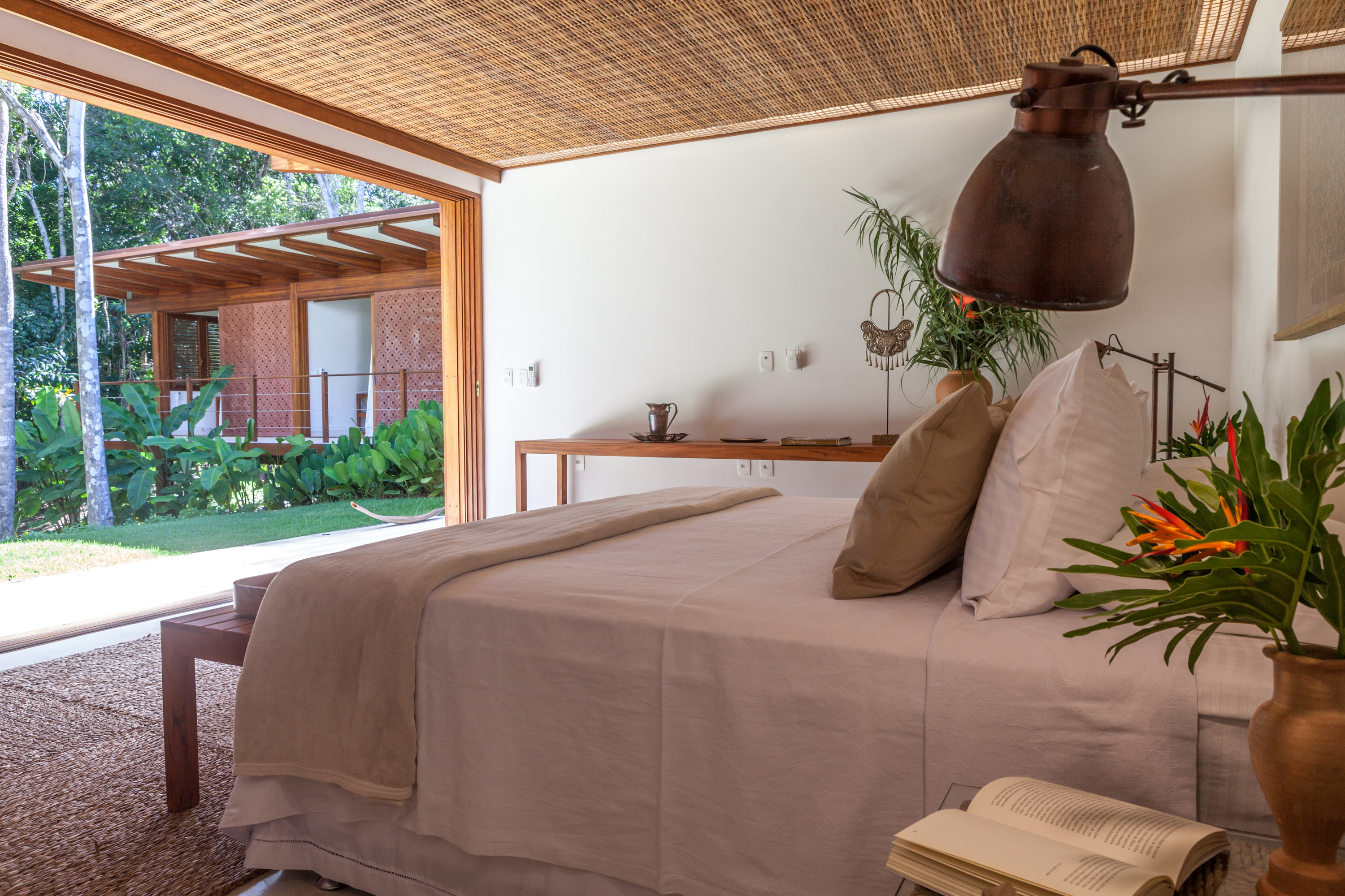 No outro bloco ficam localizadas as suítes, todas com vista para o jardim e para a mata com exceção de uma suíte que fica localizada ao lado do redário.