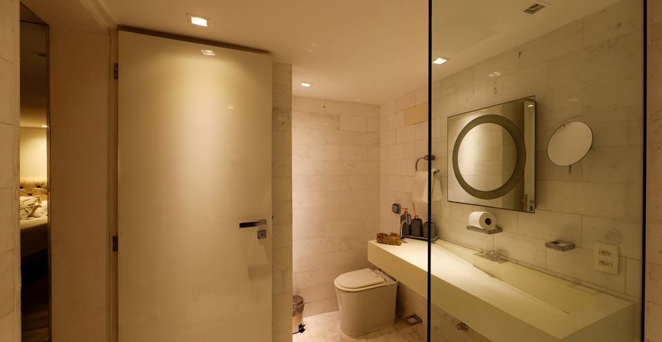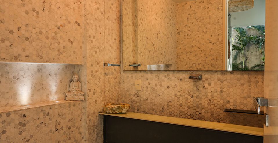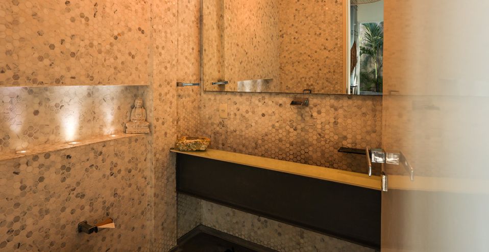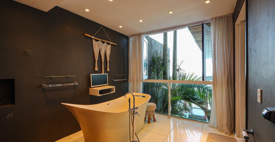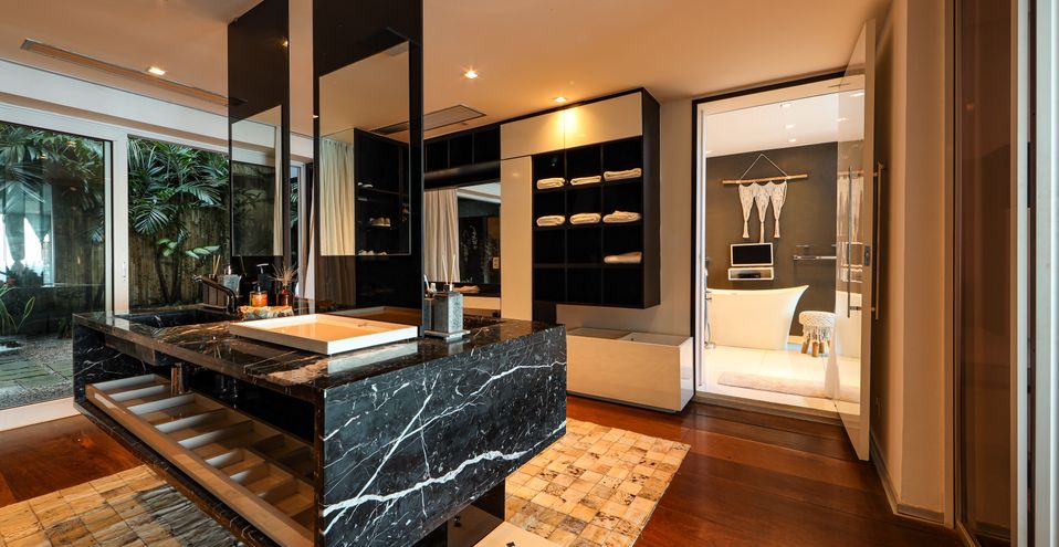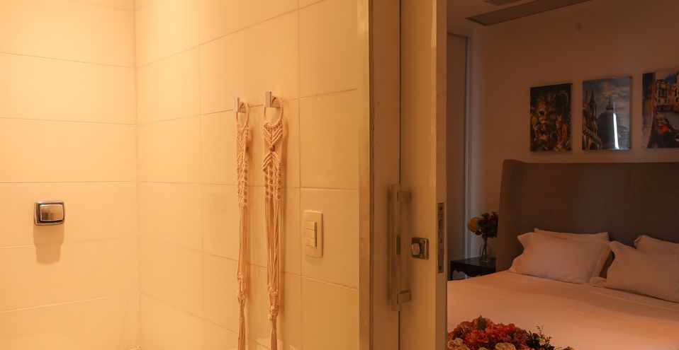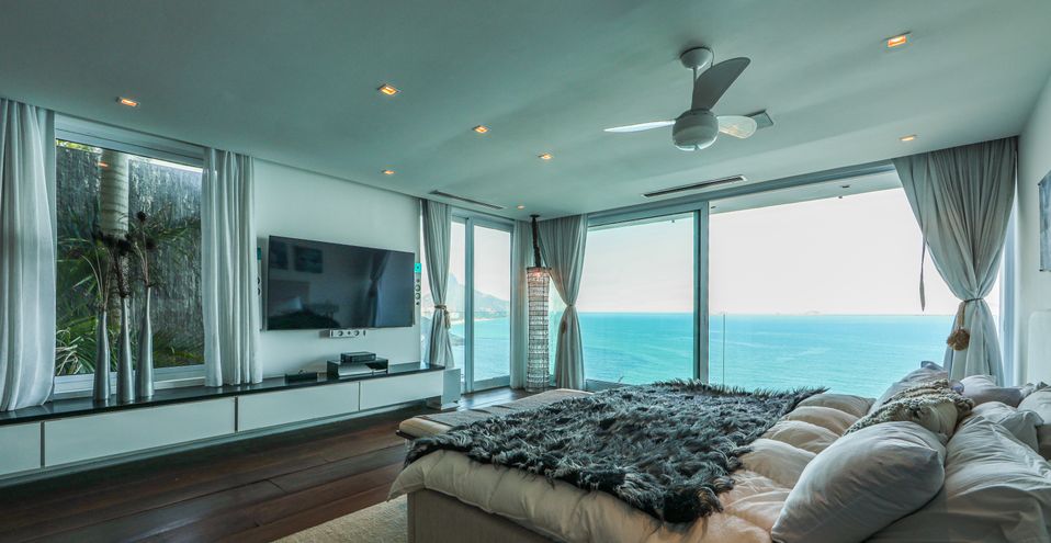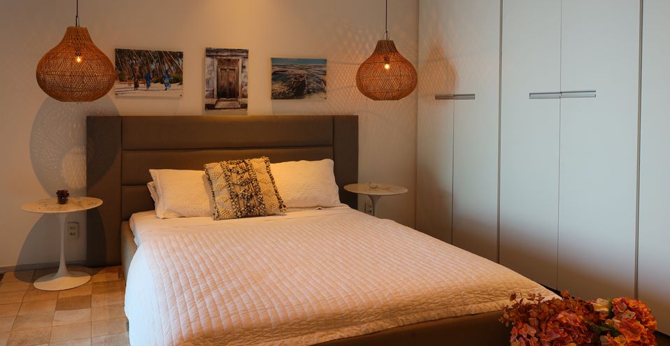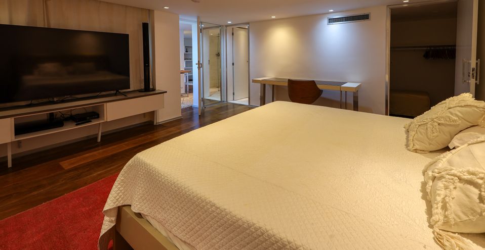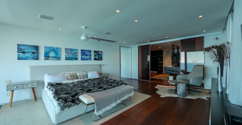 A Suíte Master é de tirar o fôlego, com um lindo closet, e confortável banheiro com vista para o mar.