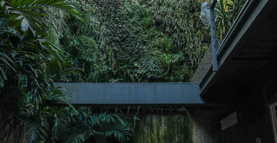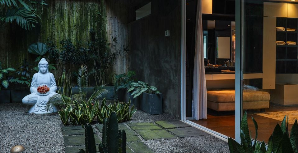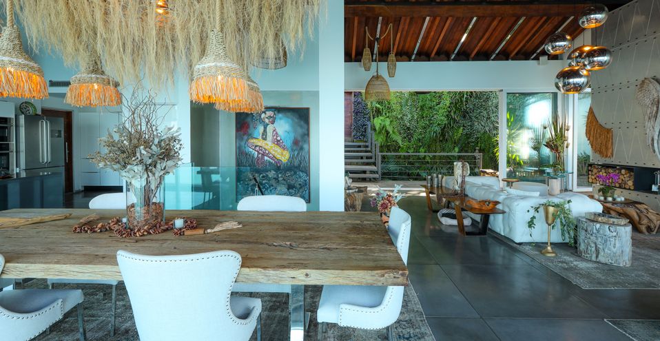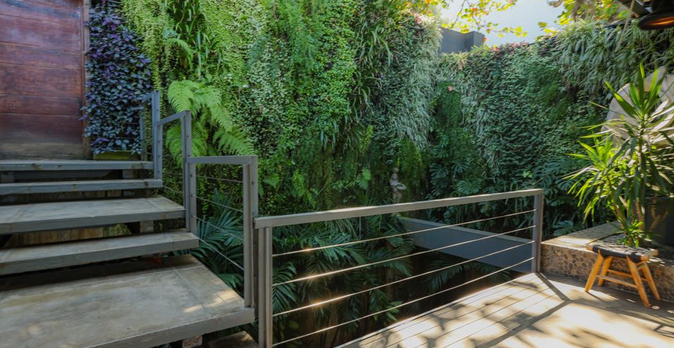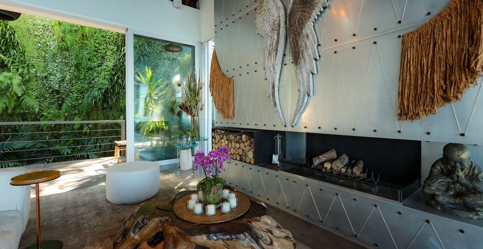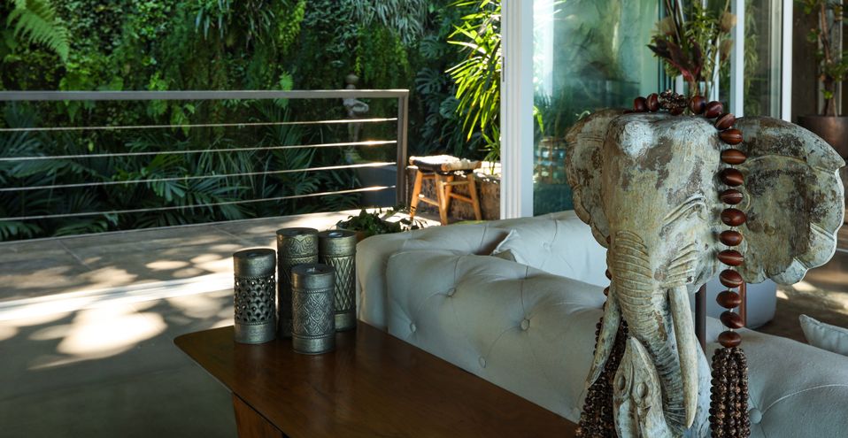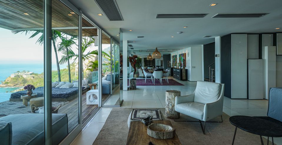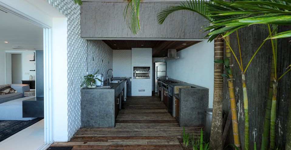 O Living tem vistas deslumbrantes para o mar e jardim vertical de incomparável beleza.