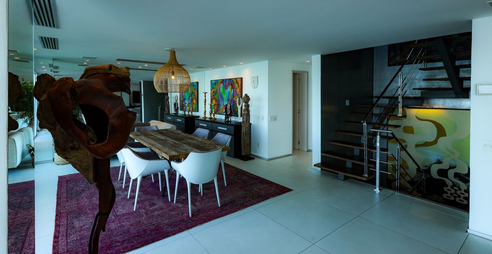 Possui: Home Office, Home Theater, sala íntima com jantar e espaço Gourmet todo equipado, SPA, sauna e varandões com belíssima vista para o mar.