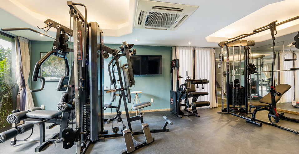No andar abaixo, uma ampla academia, com deck e vista panorâmica e mais um quarto no estilo loft, com banheiro completo.