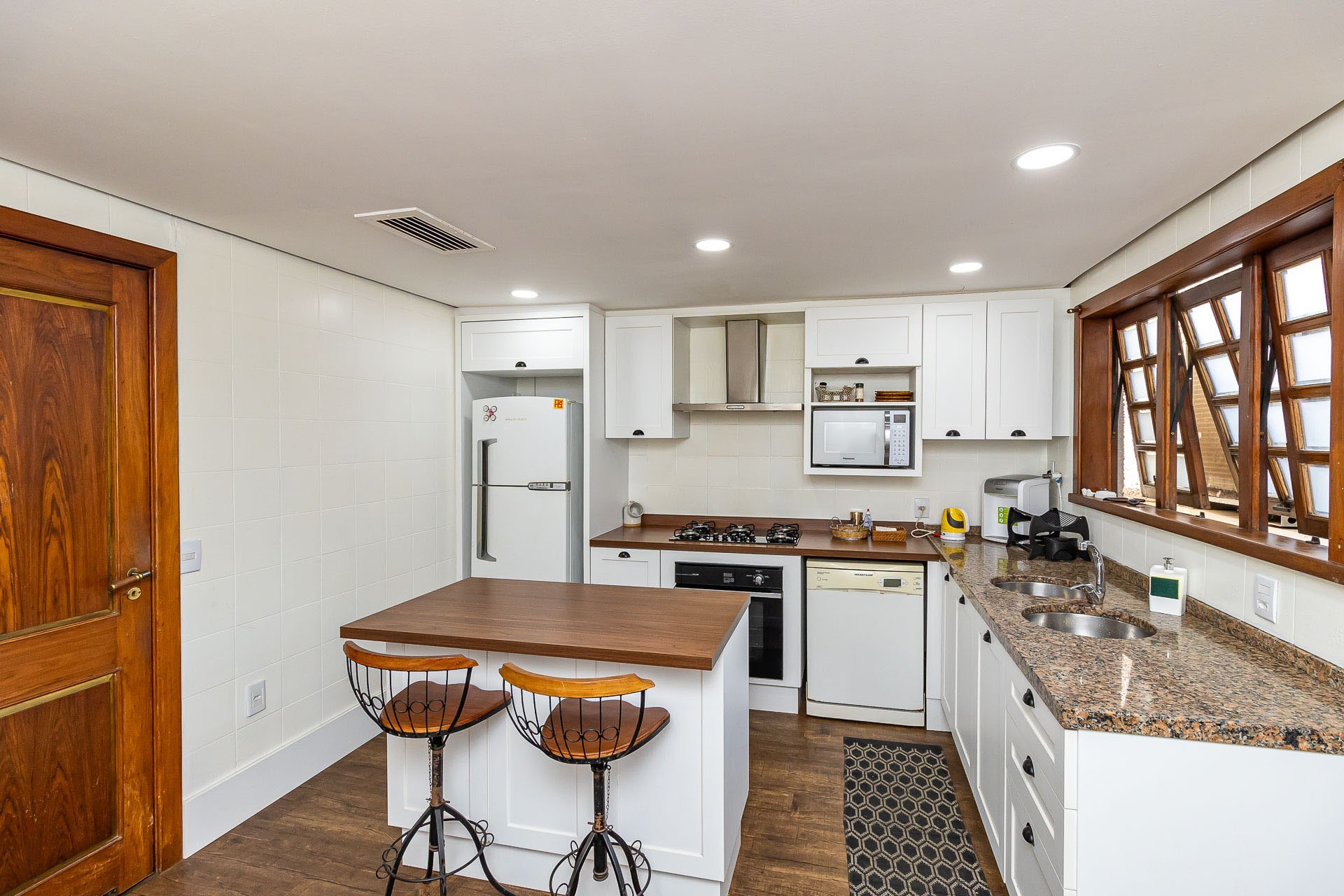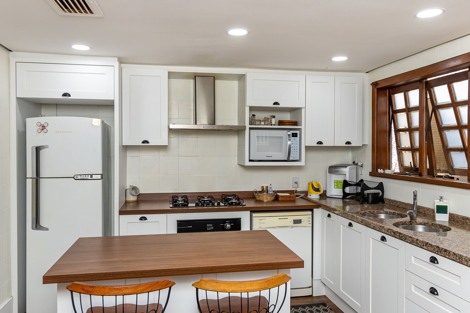 Living estendido integrado a cozinha americana completa, churrasqueira, lavabo, área de serviço, orientação solar voltada para o Norte, 2 vagas de garagem.