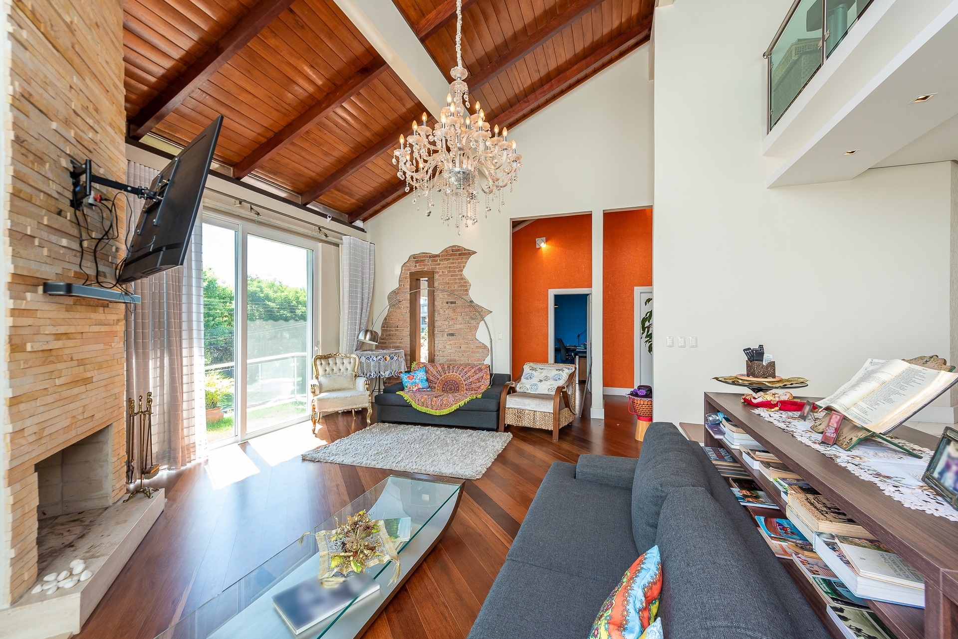 Esta residência, recentemente reformada com materiais de primeira linha, oferece o máximo em conforto e sofisticação. Localizada em um condomínio fechado, a casa dispõe de uma sala de estar aconchegante com lareira, grandes janelas que se abrem para o terraço, sala de jantar, lavabo, sala de TV e uma copa-cozinha equipada com lareira a gás. A área de serviço inclui lavanderia, suíte para caseiro c...