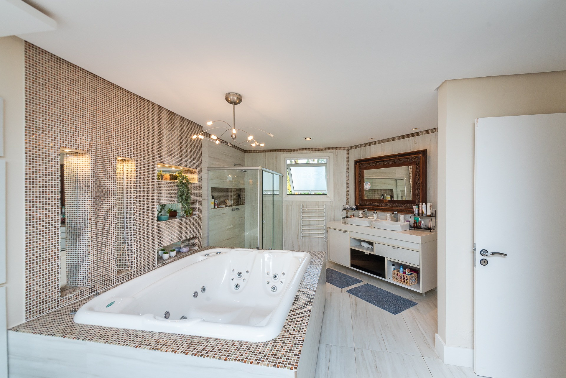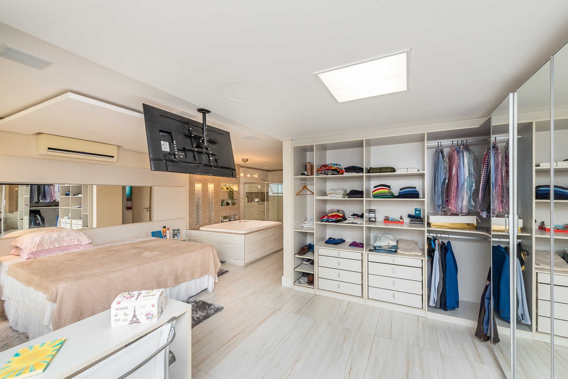 O imóvel possui pé-direito duplo na sala de estar, living de 57 m² para 3 ambientes, varanda de 37 m², hall social, lavabo, churrasqueira, lareira, espaço gourmet completo integrado ao living, estar íntimo, 4 suítes, a suíte master de 48 m² com closet ele/ela e...
