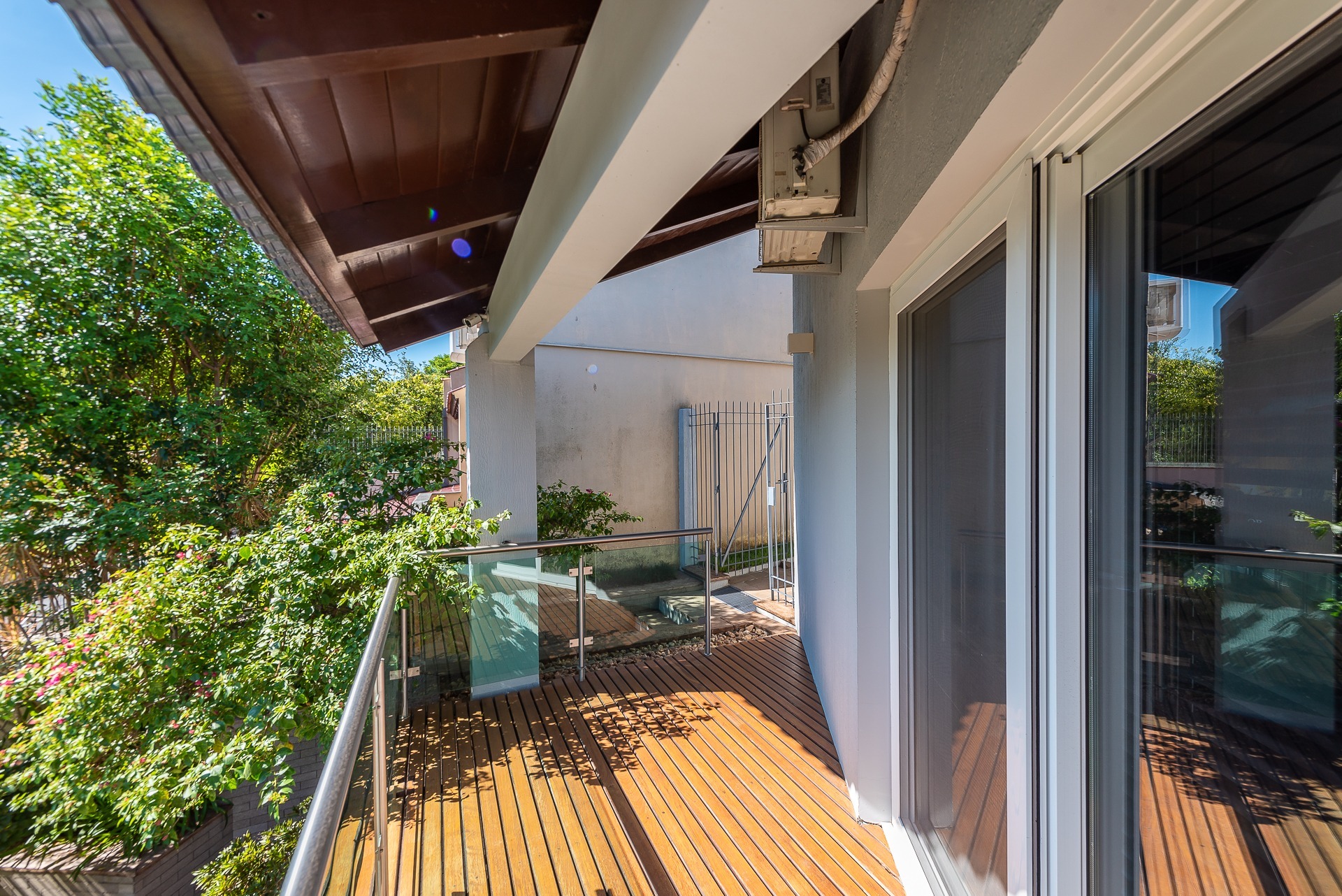 Living 3 ambientes com lareira e churrasqueira, lavabo, estar intimo, copa cozinha, dependência de empregada, área de serviço separada, entrada de serviço.