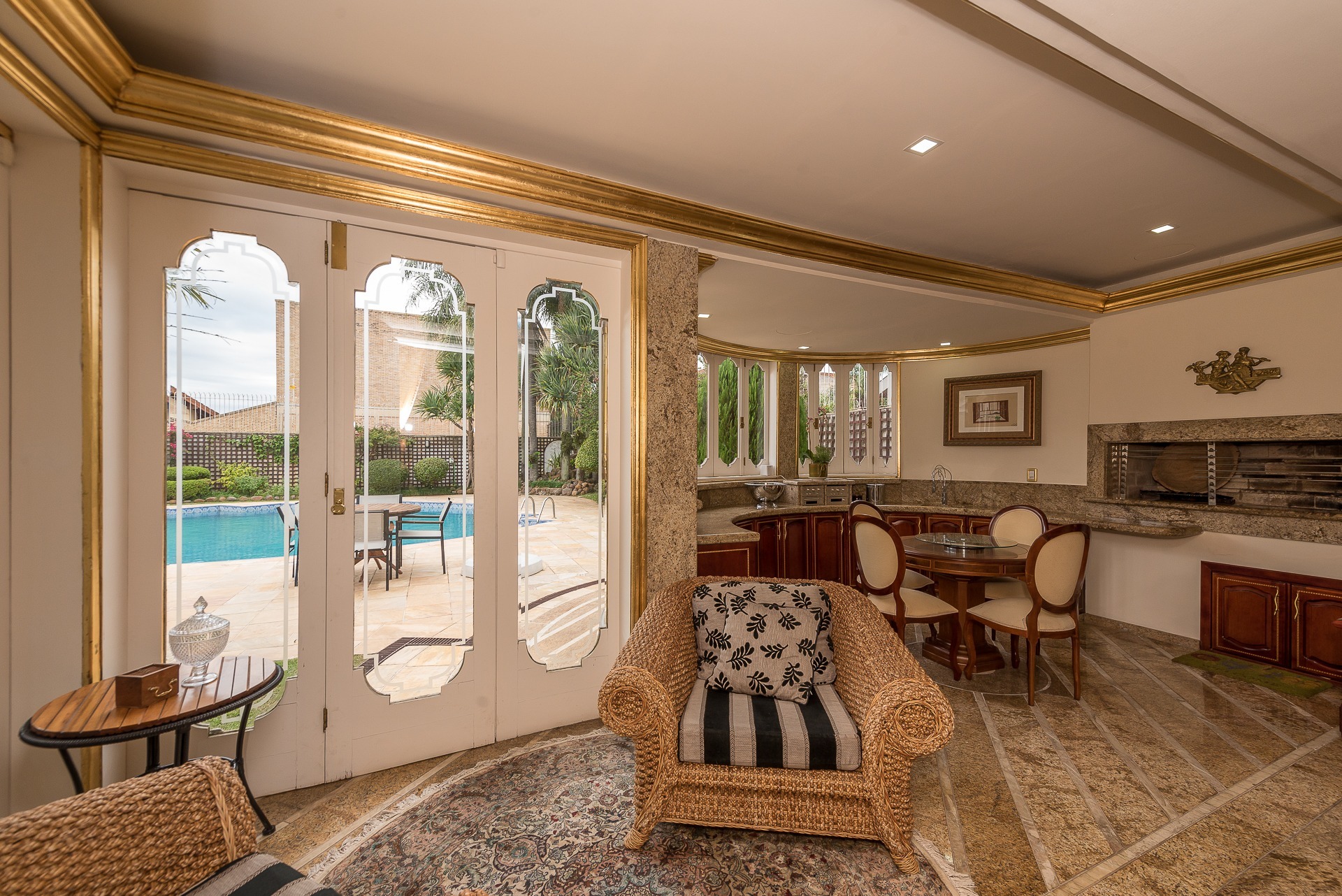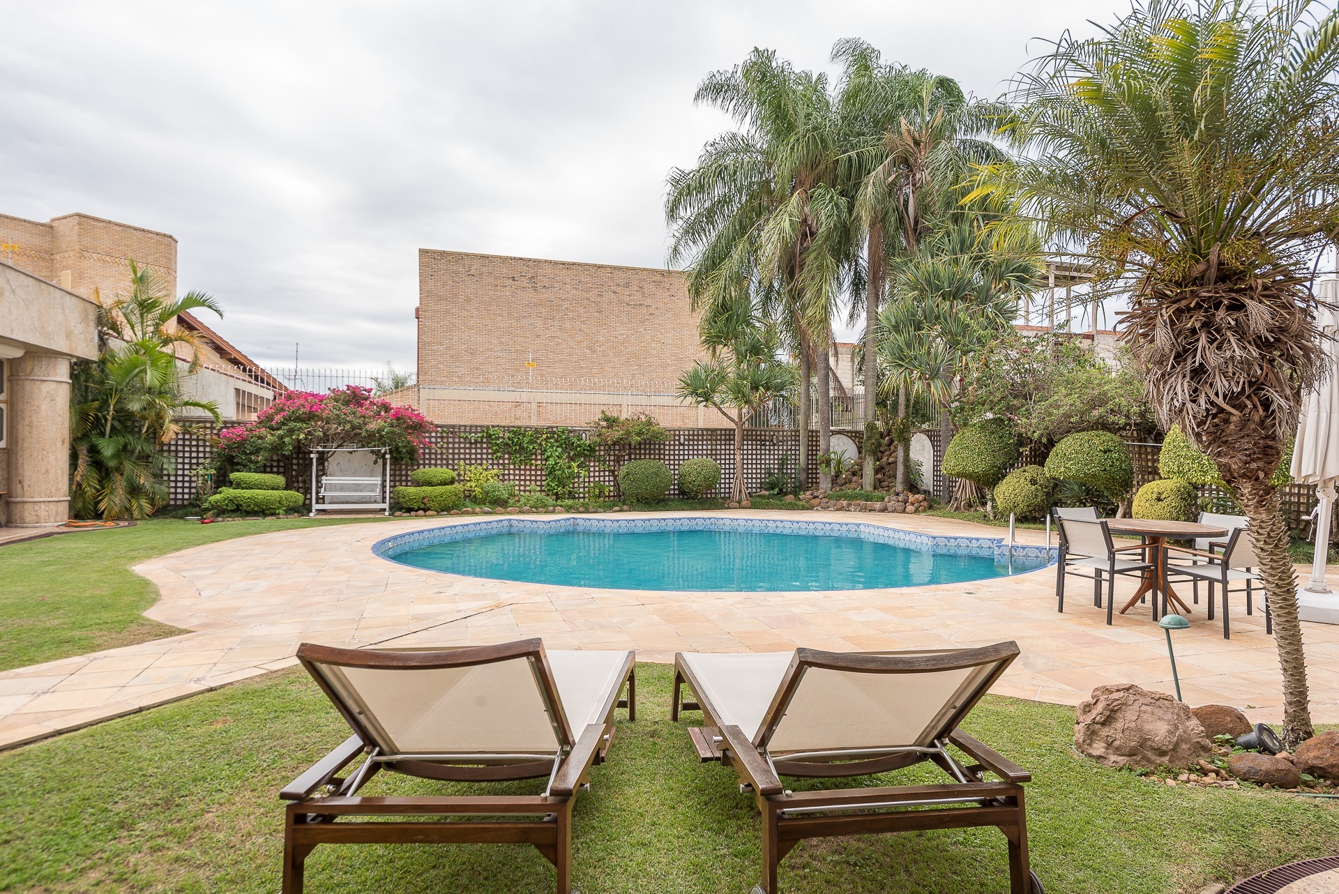 Esta residência de 519m², situada em um condomínio fechado no bairro Três Figueiras, combina luxo, conforto e segurança. Com 5 suítes, incluindo duas americanas e uma master com hidro e lareira, atende às necessidades de famílias grandes. A automação residencial acrescenta um toque moderno e prático.