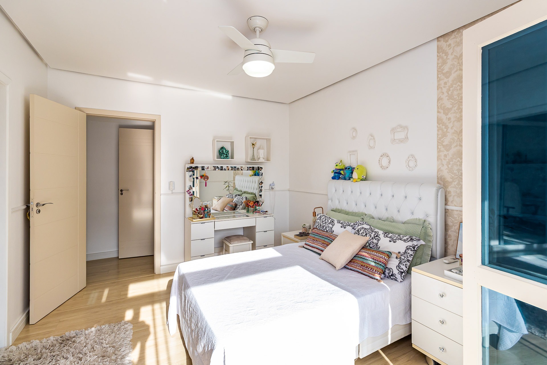 Apartamento para alugar mobiliado com 4 dormitórios, sendo 2 suítes, 179m de área privativa, living com ar condicionado, sacada fechada e ampla com churrasqueira, escrivaninha, cômodas, ventiladores de teto e cortinas, banheiro social com armários, cozinha completa com armários, fogão, geladeira, micro-ondas e coifa e área de serviço.