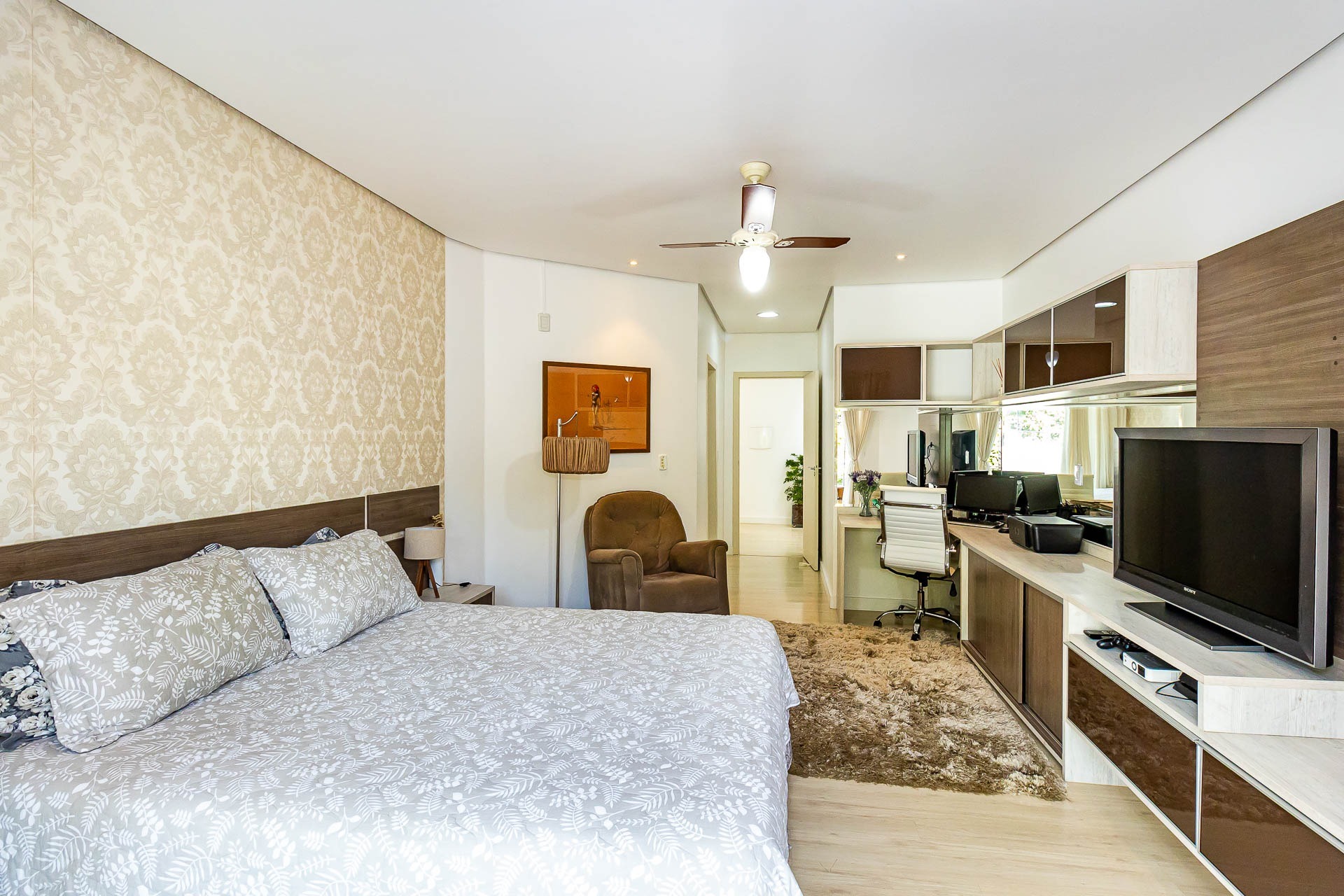 Esta residência, recentemente reformada com materiais de primeira linha, oferece o máximo em conforto e sofisticação. Localizada em um condomínio fechado, a casa dispõe de uma sala de estar aconchegante com lareira, grandes janelas que se abrem para o terraço, sala de jantar, lavabo, sala de TV e uma copa-cozinha equipada com lareira a gás. A área de serviço inclui lavanderia, suíte para caseiro c...