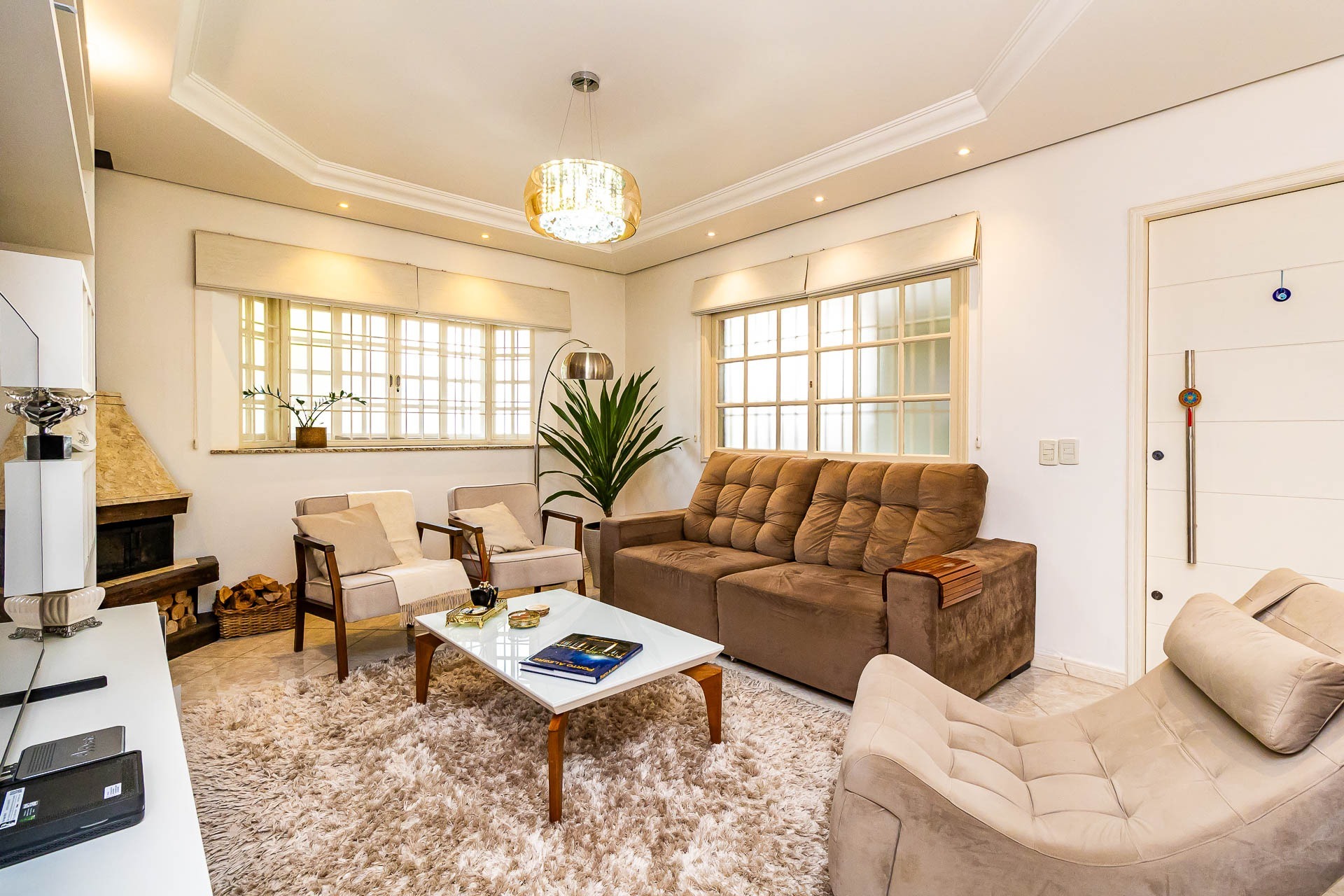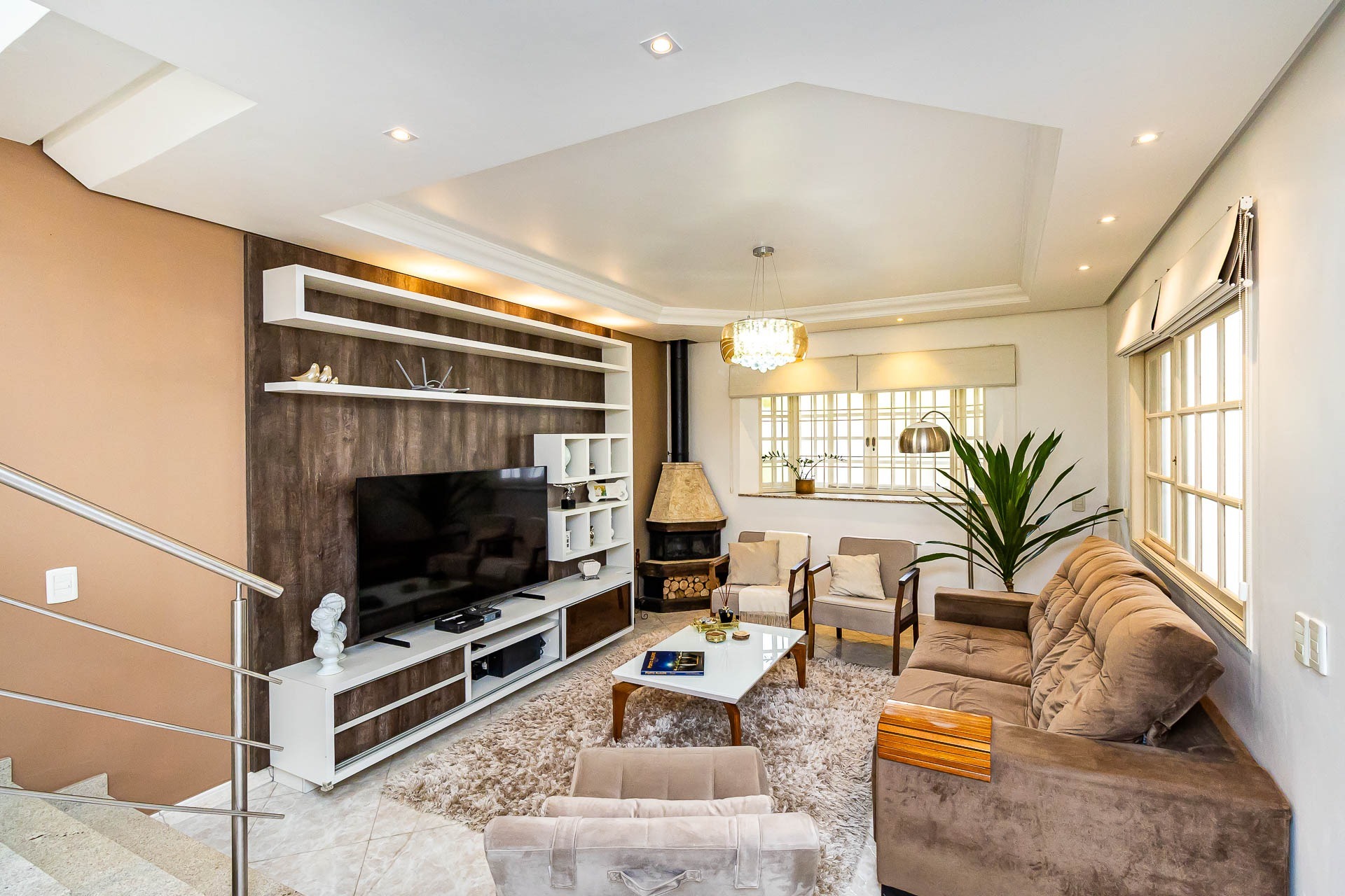 No primeiro pavimento, encontre um aconchegante living com lareira, perfeito para os di...