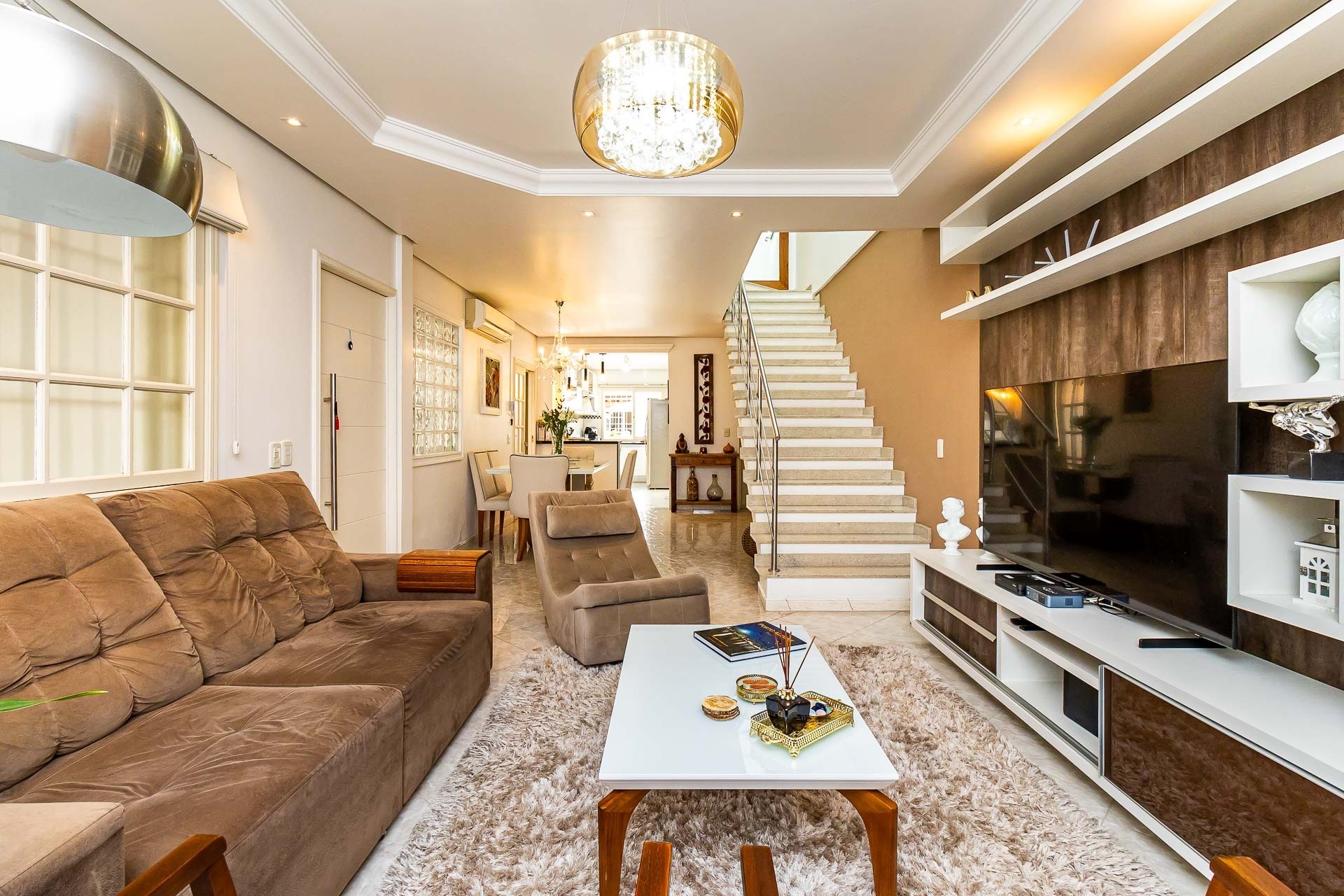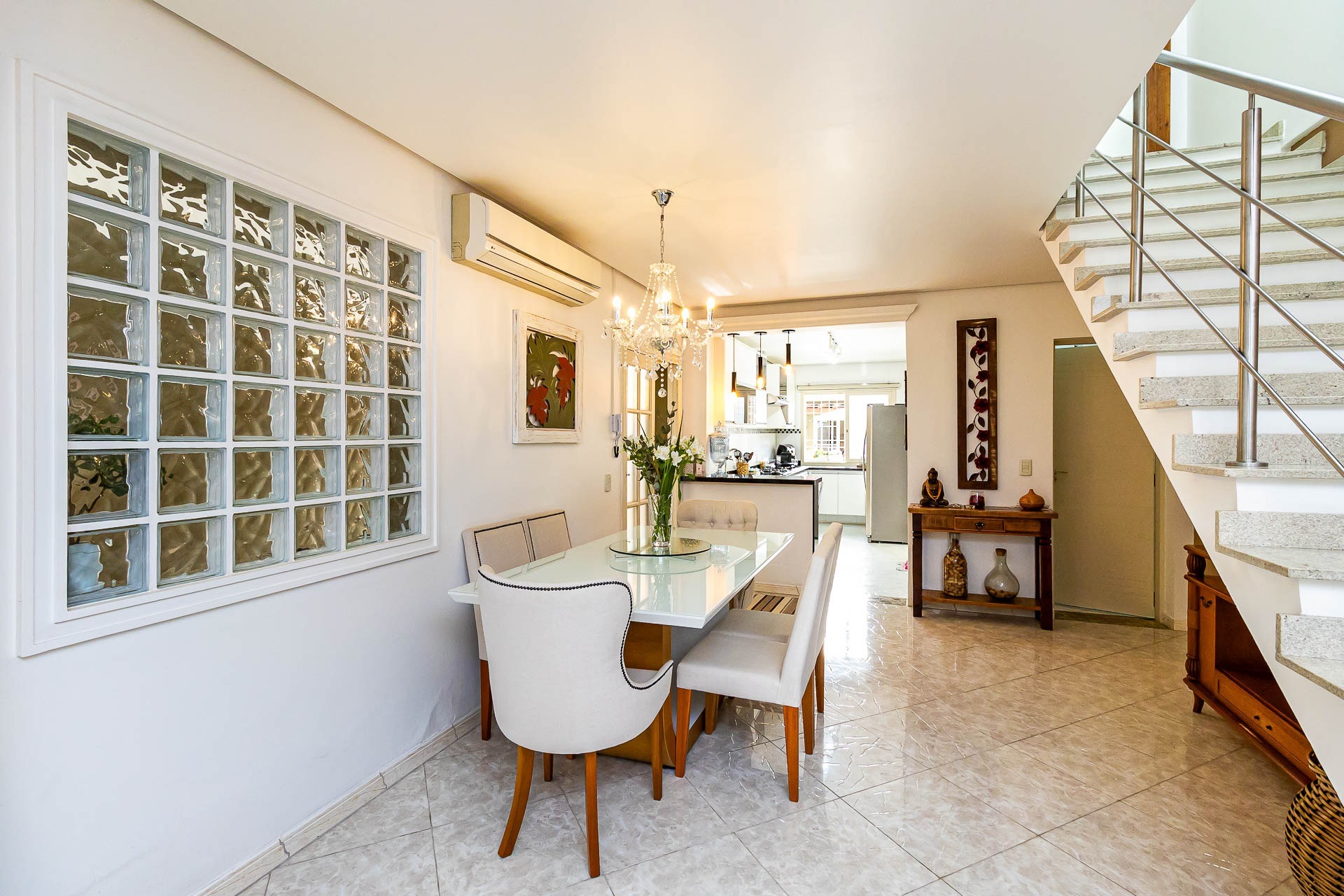 Descubra esta espaçosa casa semimobiliada de 285m² em condomínio, com 3 dormitórios, incluindo uma suíte, e 3 vagas de garagem cobertas. A casa é bem iluminada e ventilada naturalmente, proporcionando um ambiente agradável e acolhedor. Dividida em 3 pavimentos, o imóvel oferece amplo espaço e funcionalidade.