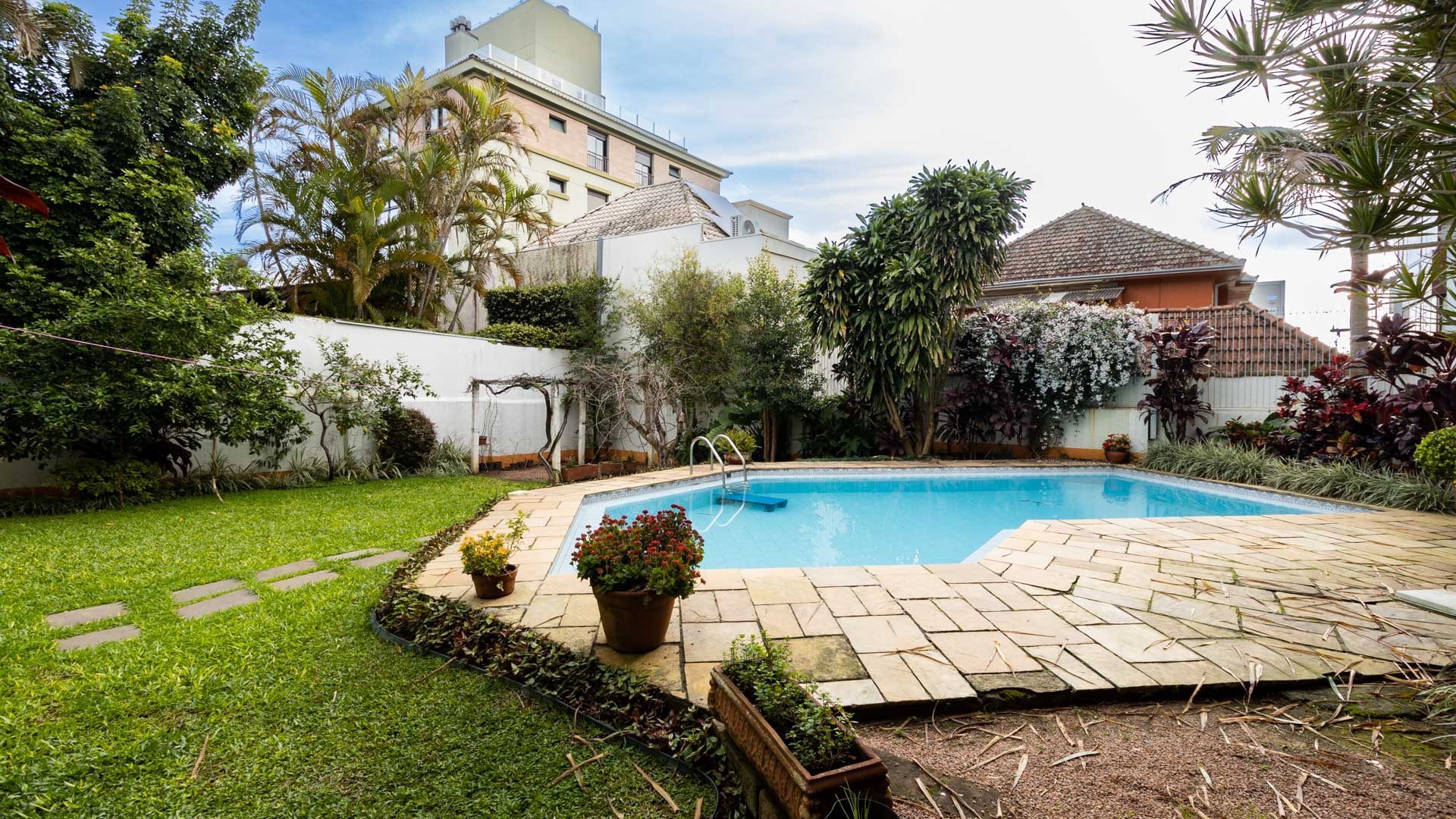Casa semimobiliada de 340 m² no bairro Petrópolis, com 3 suítes e escritório, 4 vagas de garagem.