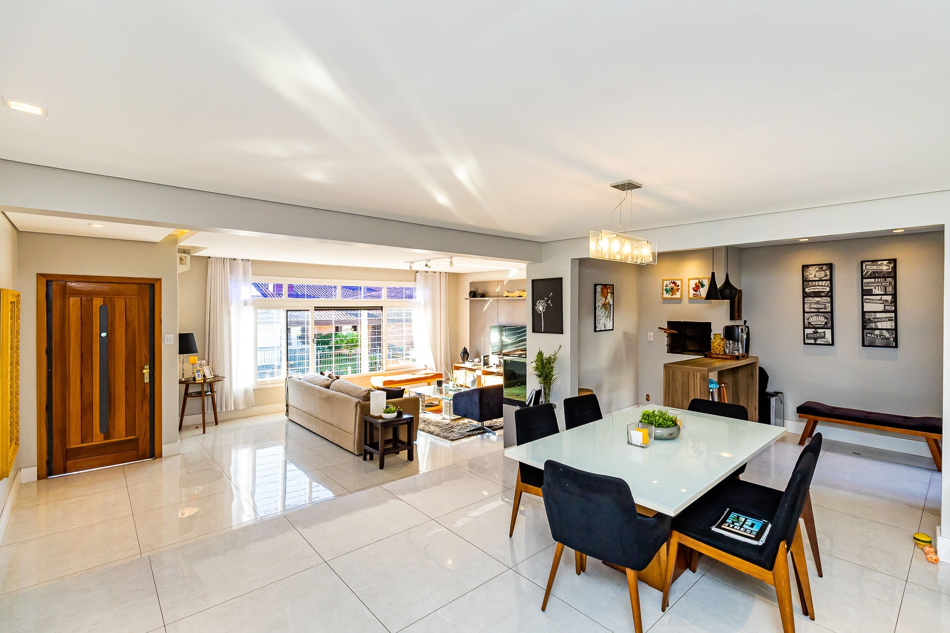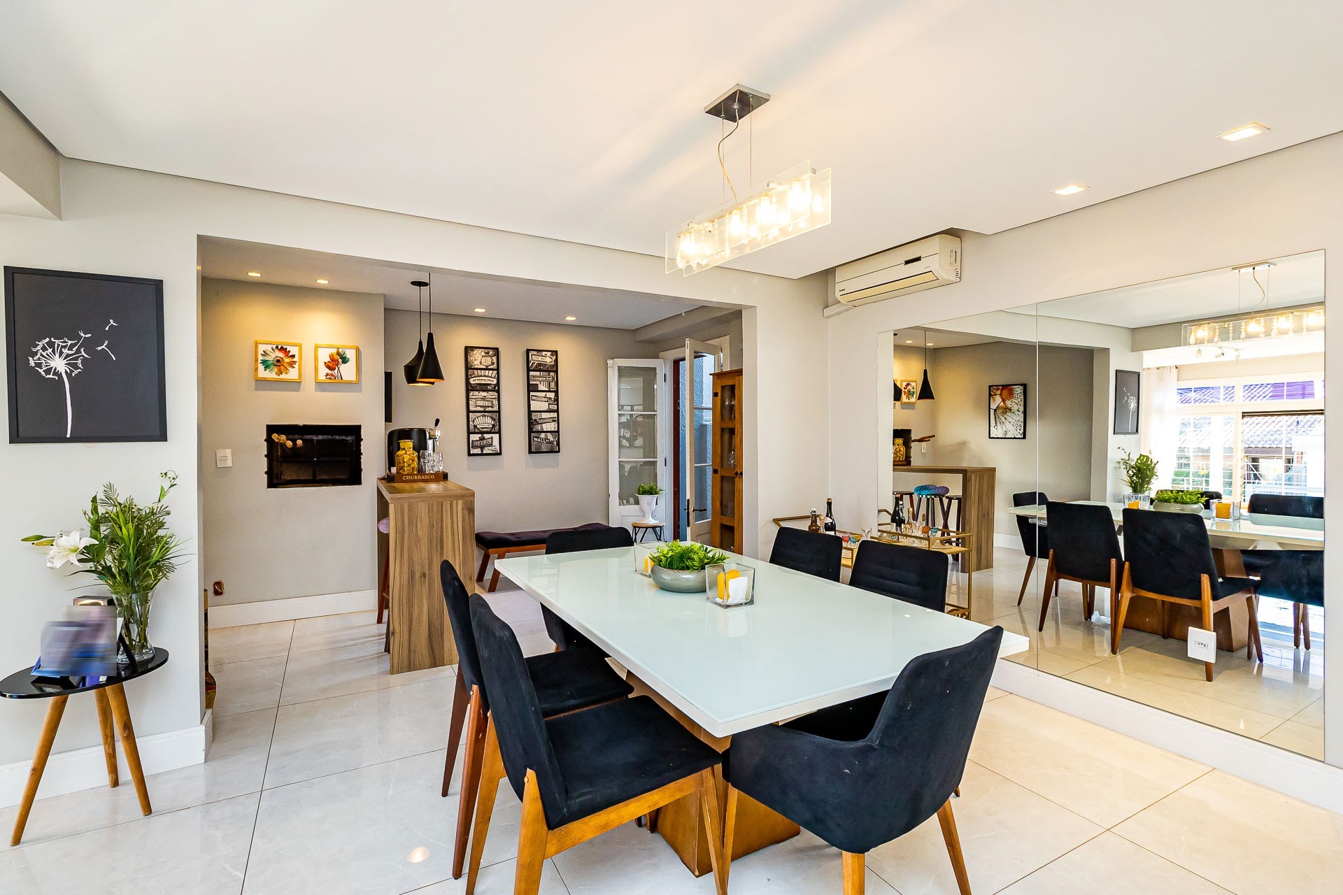 Esta residência, recentemente reformada com materiais de primeira linha, oferece o máximo em conforto e sofisticação. Localizada em um condomínio fechado, a casa dispõe de uma sala de estar aconchegante com lareira, grandes janelas que se abrem para o terraço, sala de jantar, lavabo, sala de TV e uma copa-cozinha equipada com lareira a gás. A área de serviço inclui lavanderia, suíte para caseiro c...