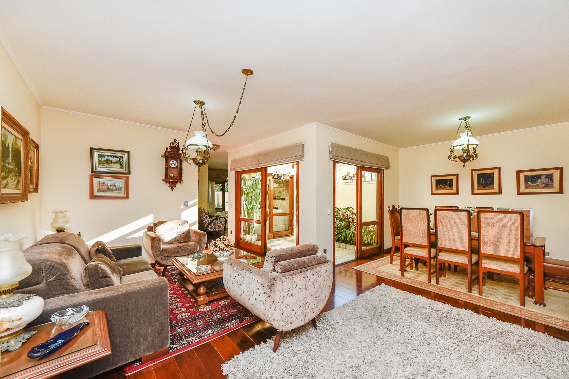 Esta residência, recentemente reformada com materiais de primeira linha, oferece o máximo em conforto e sofisticação. Localizada em um condomínio fechado, a casa dispõe de uma sala de estar aconchegante com lareira, grandes janelas que se abrem para o terraço, sala de jantar, lavabo, sala de TV e uma copa-cozinha equipada com lareira a gás. A área de serviço inclui lavanderia, suíte para caseiro c...