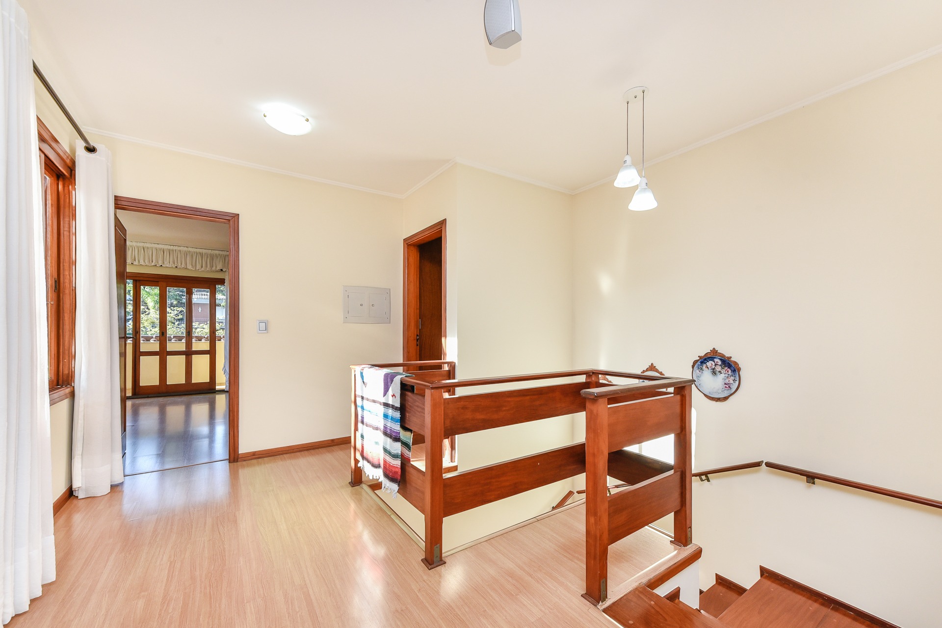 Um por andar, 3 dormitórios sendo 1 suíte, e opção para 4 dormitório, dependência ou gabinete, banheiro auxiliar, cozinha, área de serviço e lavabo. Sala de jantar com churrasqueira e outro ambiente com lareira e sacada. Ótima posição solar!
