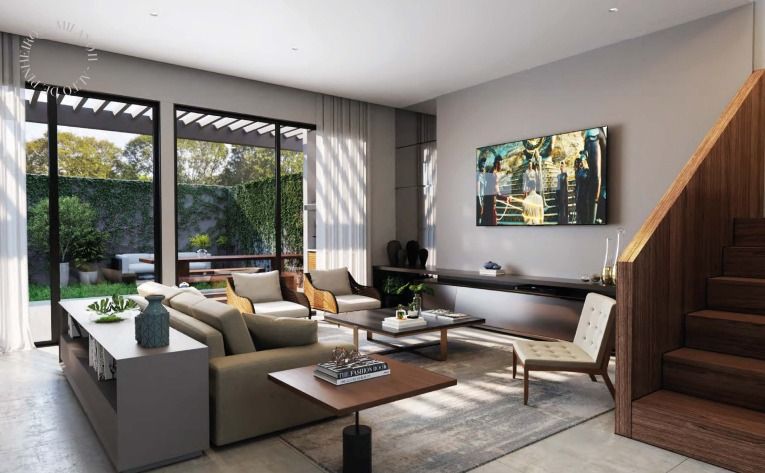 UM AMPLO LIVING, COM PÉ DIREITO DUPLO E UMA ILUMINAÇÃO NATURAL IMPRESSIONANTE, QUE OFERECE UMA EXPERIÊNCIA COMPLETA DE BEM-ESTAR E ACONCHEGO.