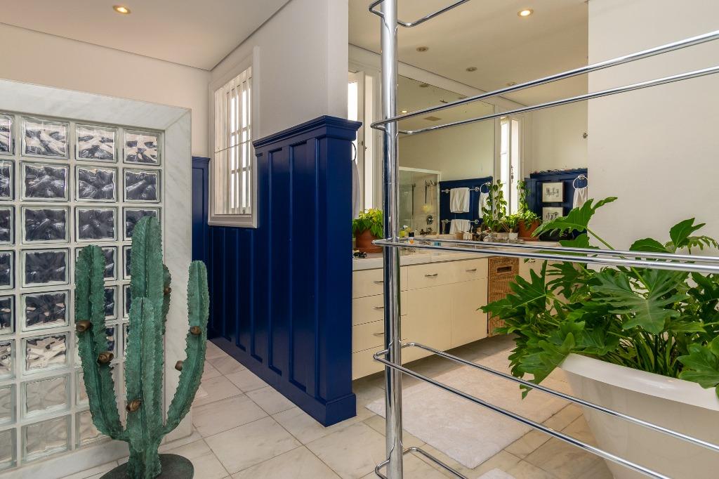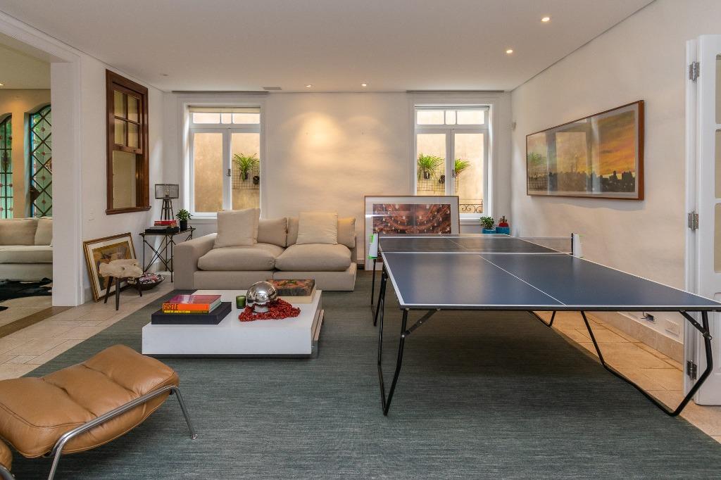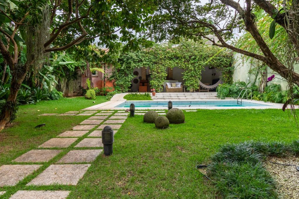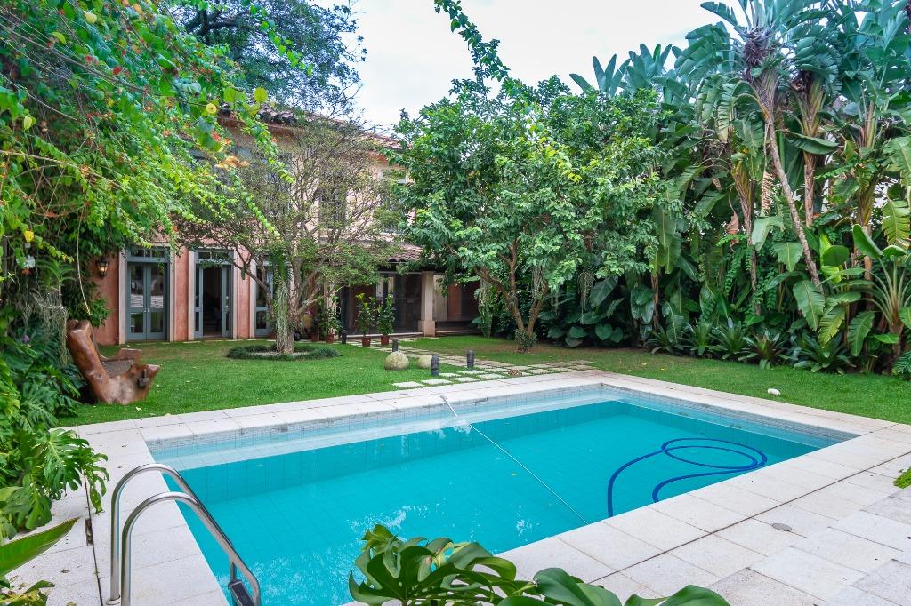 Casa impecável para venda no Jardim Paulista, bairro tradicional com 360m² de Terreno e 495m² de área útil, espaçosa, muita iluminação natural, arquitetada por Dado Castello Branco, e paisagismo de Maria João, entrada com living para vários ambientes interligando sala de jantar, home theater, lareira, separados por portas de vidro que se integram à área externa com piscina e área gourmet, churras...