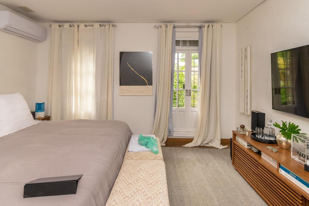 Casa PRONTA PARA MORAR!! Diferenciada, em altíssimo padrão, projetada pelos renomados arquitetos Israel Rewin e João Armentano. Em um terreno de 709 m², a casa de 1209 m² construídos, divide-se em 4 pavimentos. Superior: 4 suítes (1 suíte master com banho sr. e sra.) com closets, sala íntima com mini-copa e central de áudio e vídeo, acesso para as suítes com portas blindadas. Térreo: sala de est...