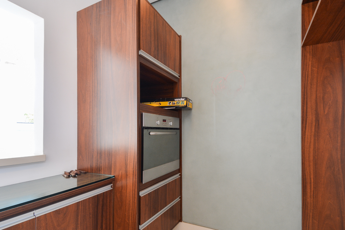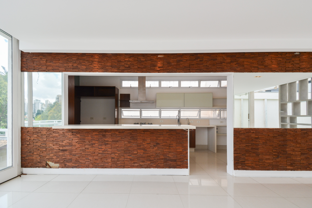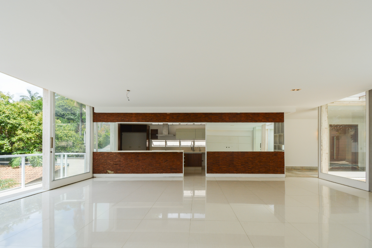 O living, com detalhes marcantes em madeira, cria um ambiente acolhedor e atemporal, perfeito para quem valoriza elegância e conforto. O mobiliário assinado é sinônimo de requinte contemporâneo, proporcionando uma experiência visual única.