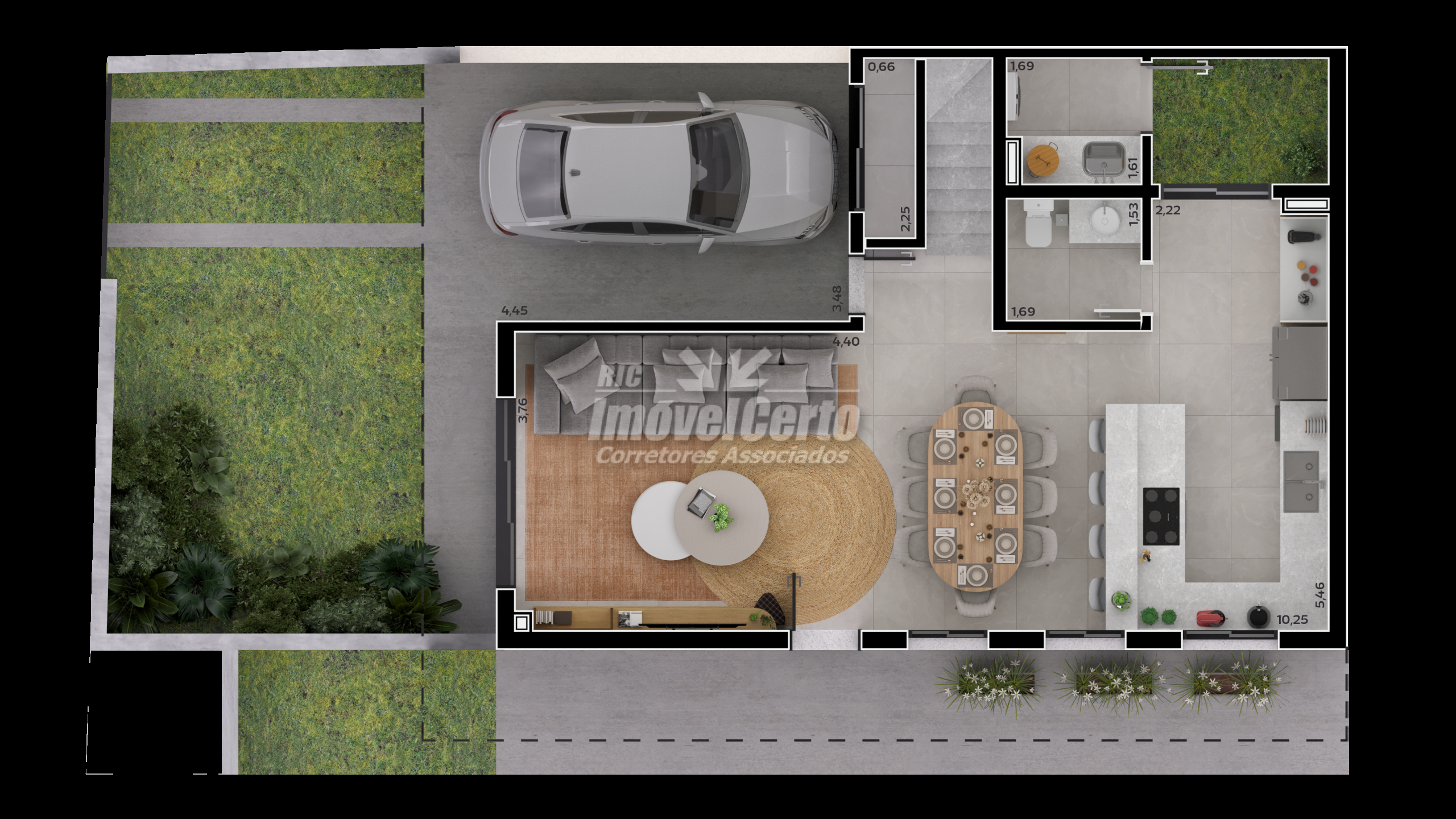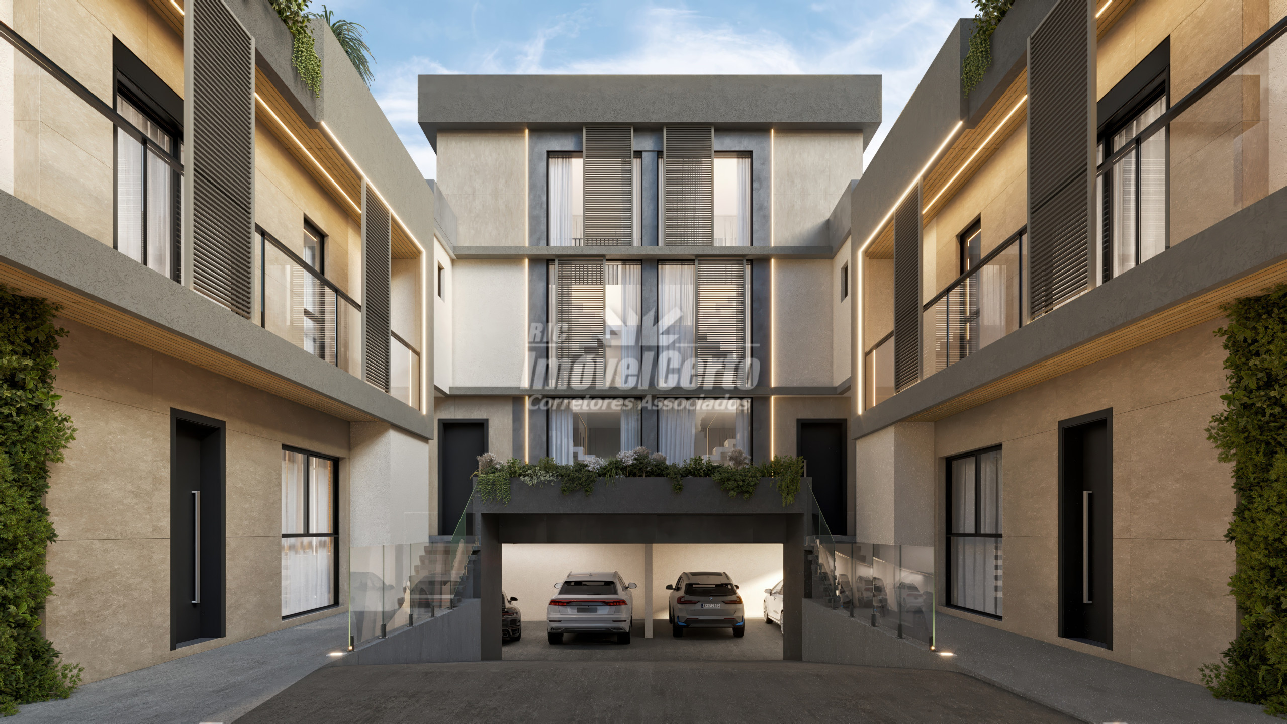 Casa 02: Com 293,74 m² privativos, esta unidade oferece 3 suítes e 1 vaga de garagem, com possibilidade de ampliação para 2 vagas.