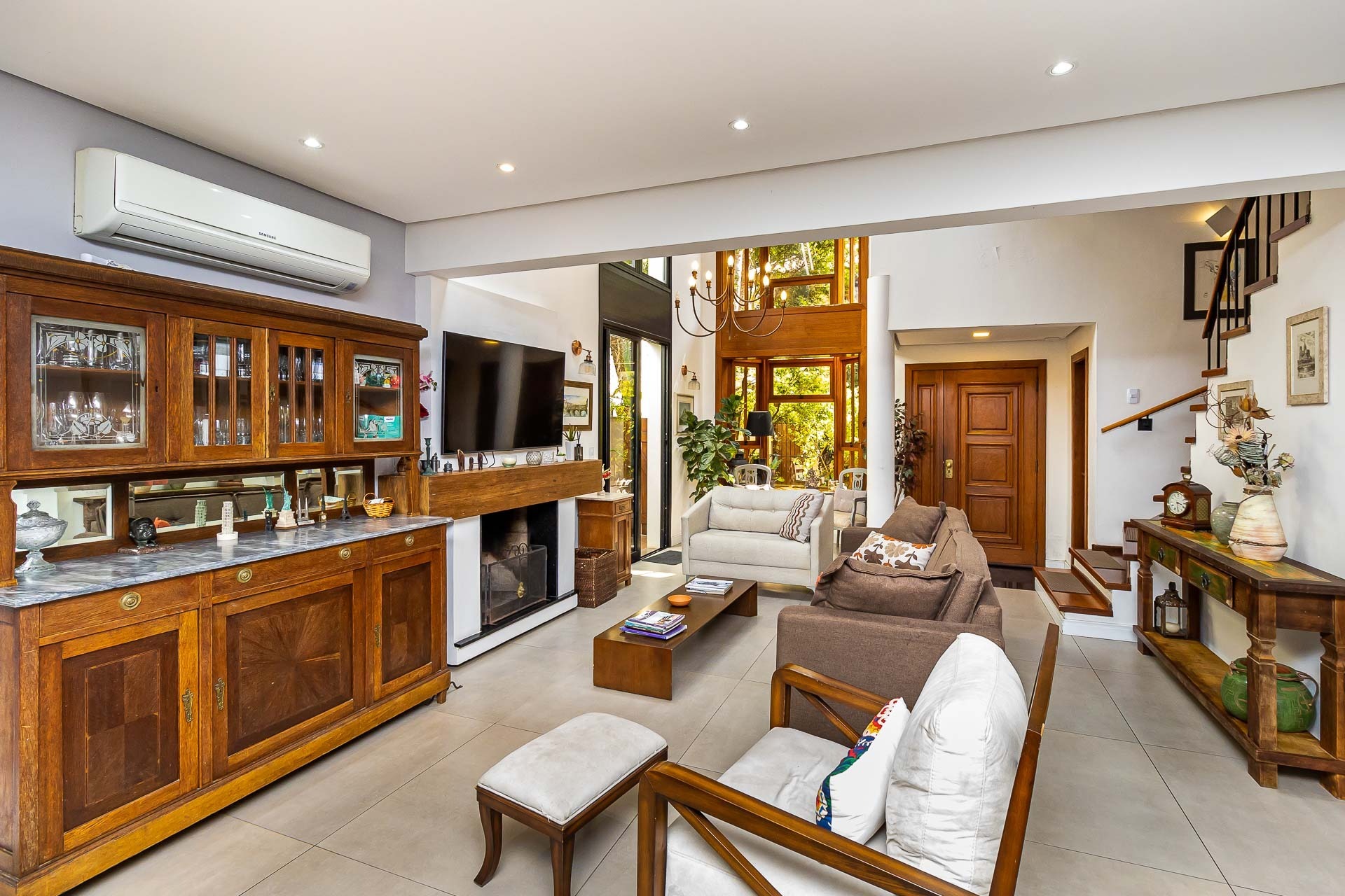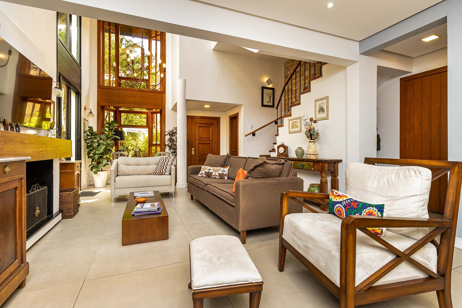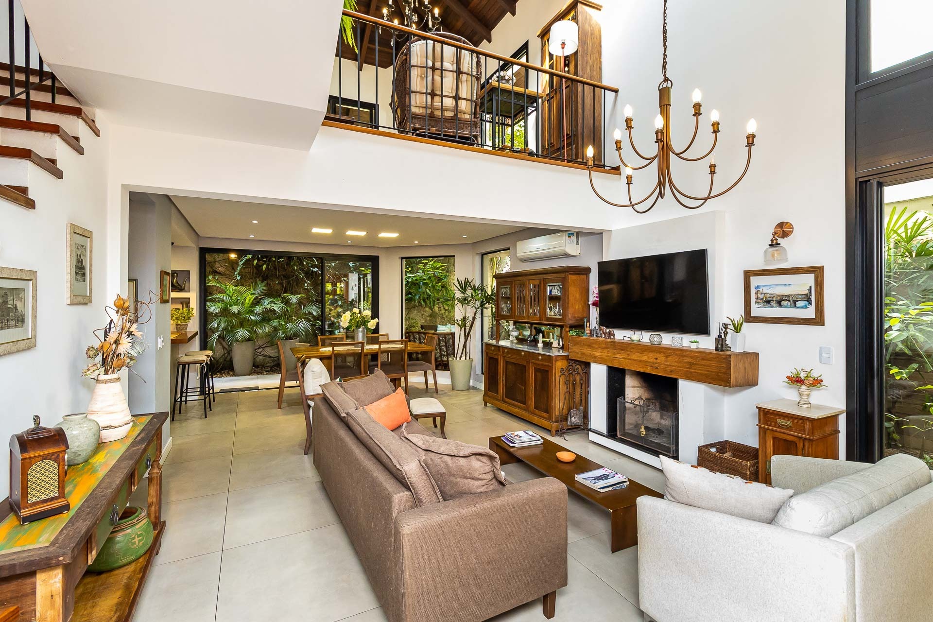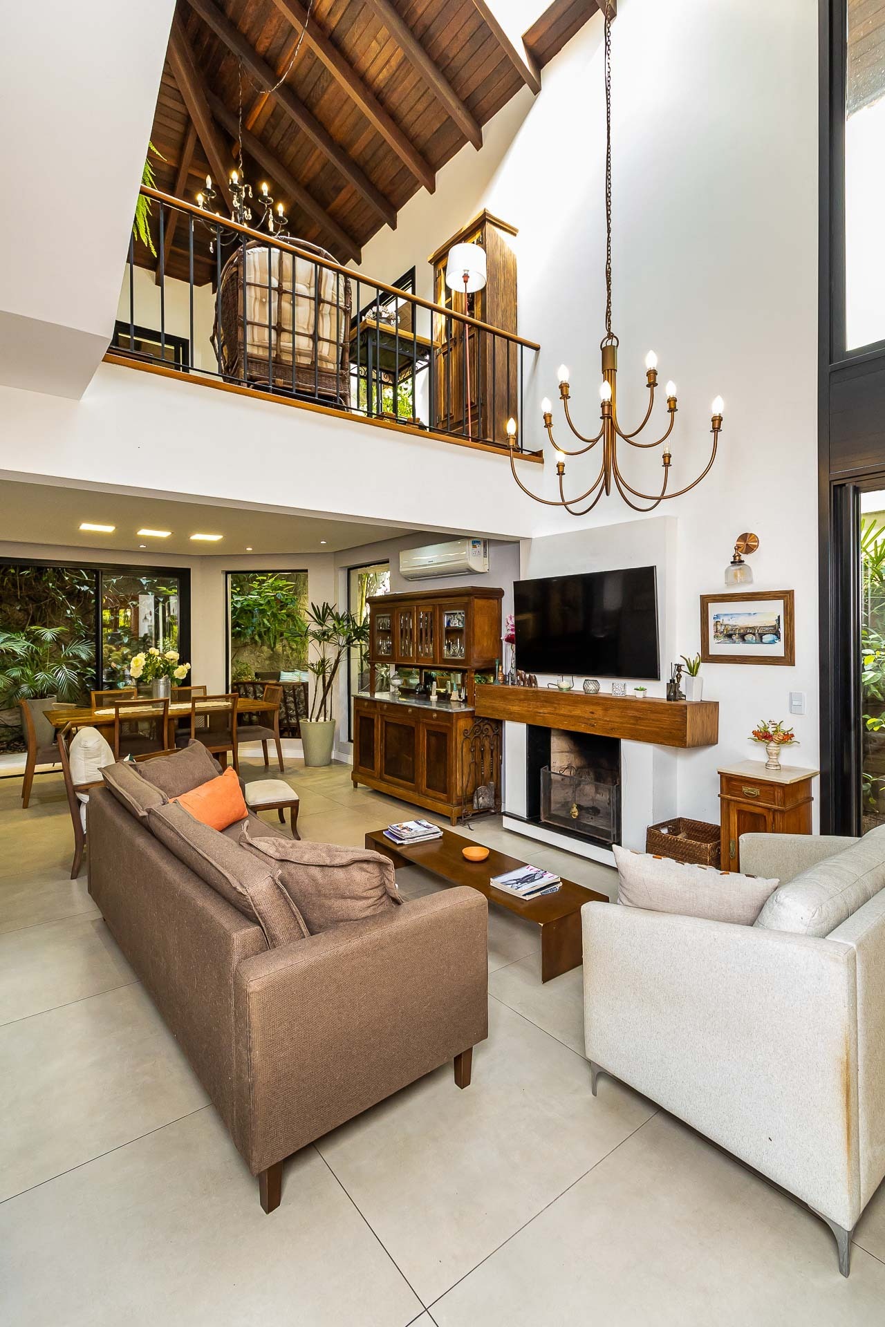 No piso inferior, você encontrará um amplo living com lareira, perf...