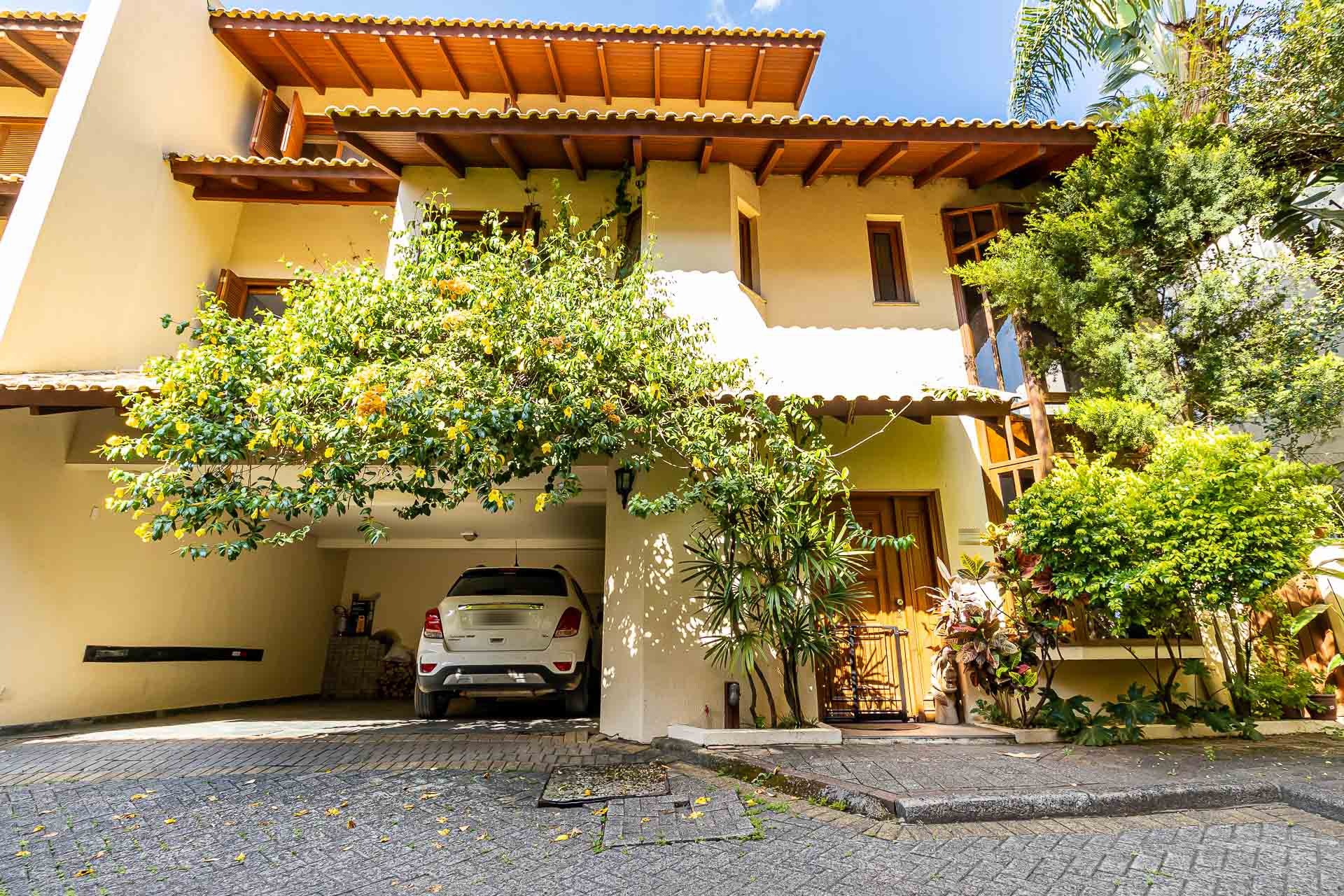 Casa em condomínio com 257m² de área privativa, 3 suítes e 2 vagas de garagem Além disso, ótimo living em 3 ambientes, com jantar, cozinha americana, lavabo, pátio em L com churrasqueira, jardim, deck, parede verde e com pé direito. No segundo pavimento fica o estar íntimo com sacada, 2 suítes bem espaçosas, sendo uma delas com closet. No terceiro pavimento fica a suíte máster, que possui em tor...
