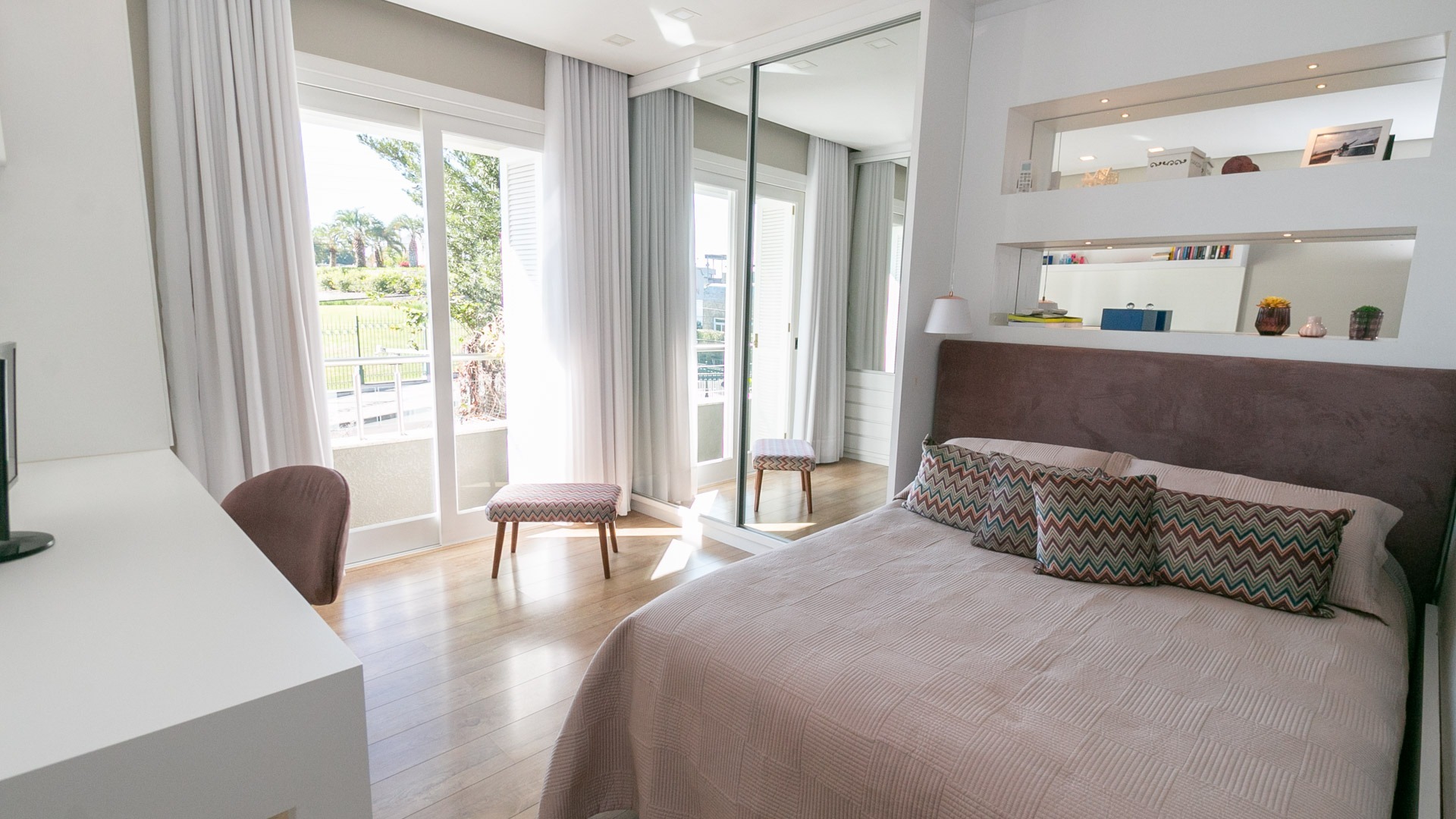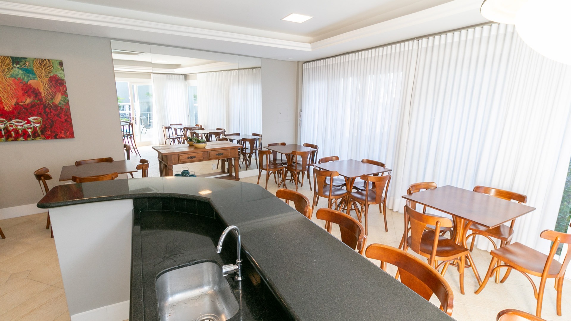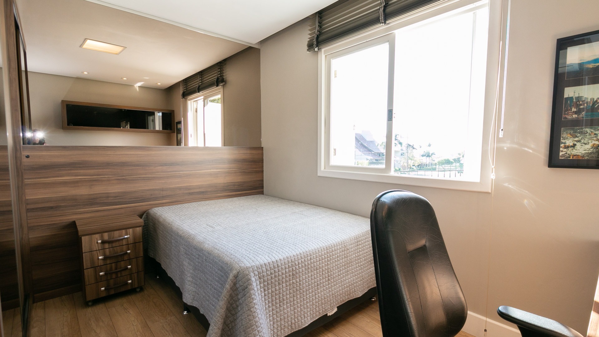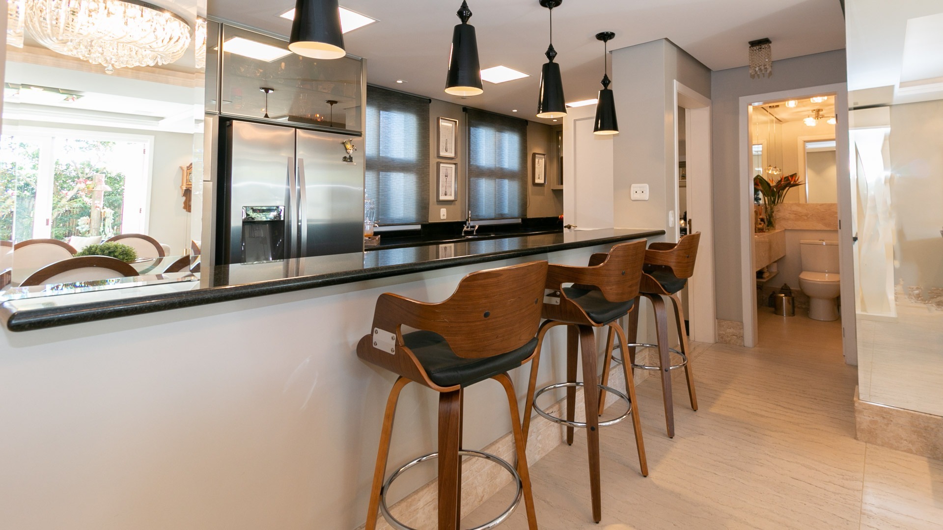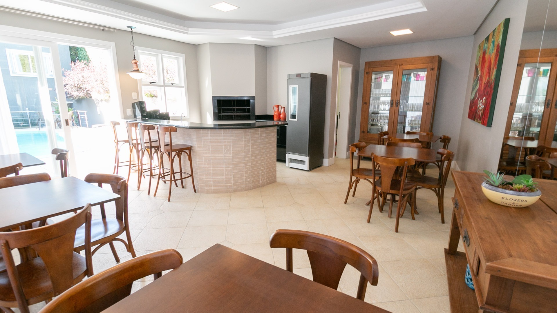 Janelas fullview, dando luminosidade e conforto para quem está no local, cozinha americana montada com churrasqueira, lavabo, 2 suítes, área de serviço, 2 vagas de garagem individuais.