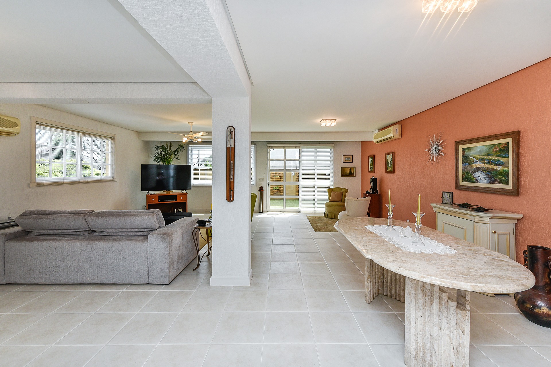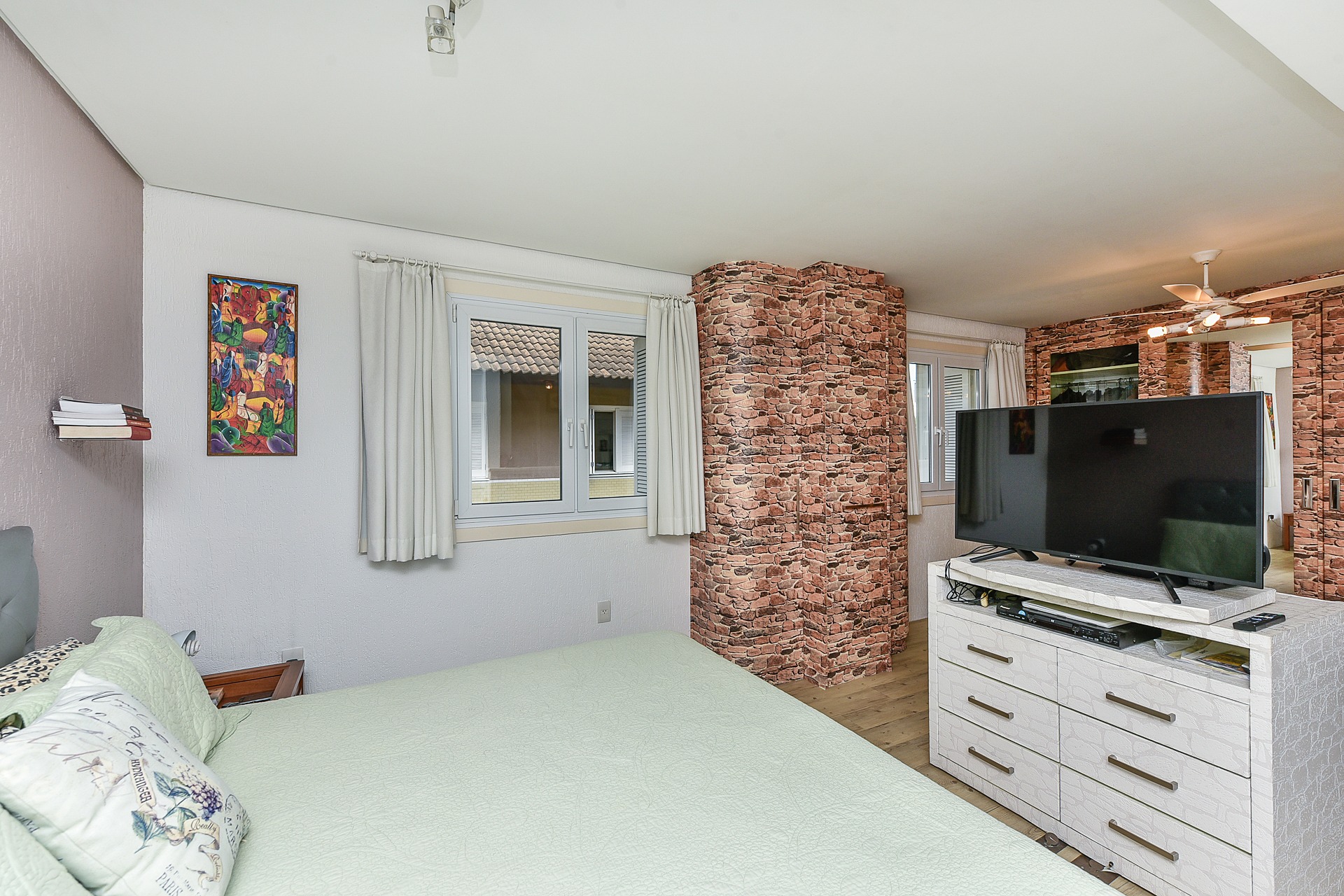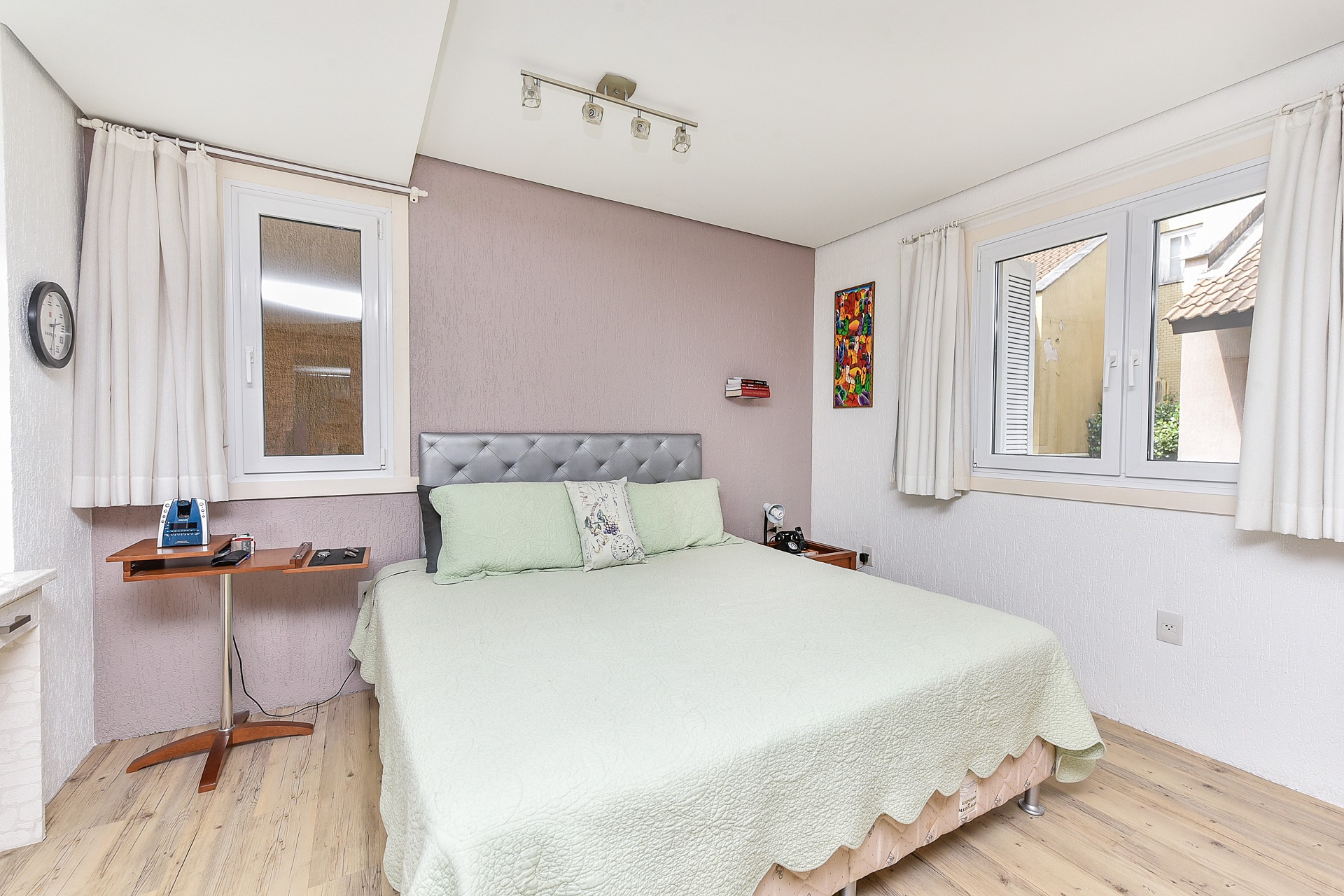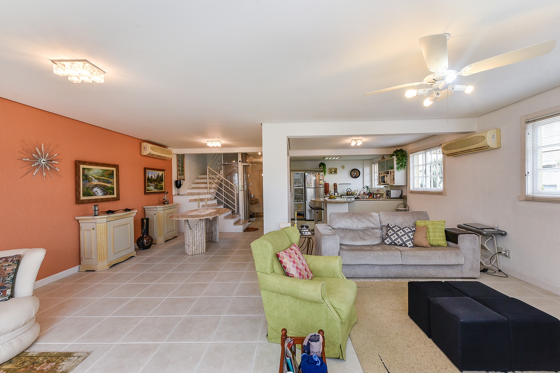Casa em condomínio com 3 dormitórios espaçosos, sendo uma suíte, e todos banheiros com ventilação natural (janelas), amplo living 2 ambientes com lareira, lavabo, cozinha integrada com churrasqueira, escada segura para acessar os andares superiores, sótão com sala/ home theater/ espaço para home office e sacada com jacuzzi. ensolarada .
