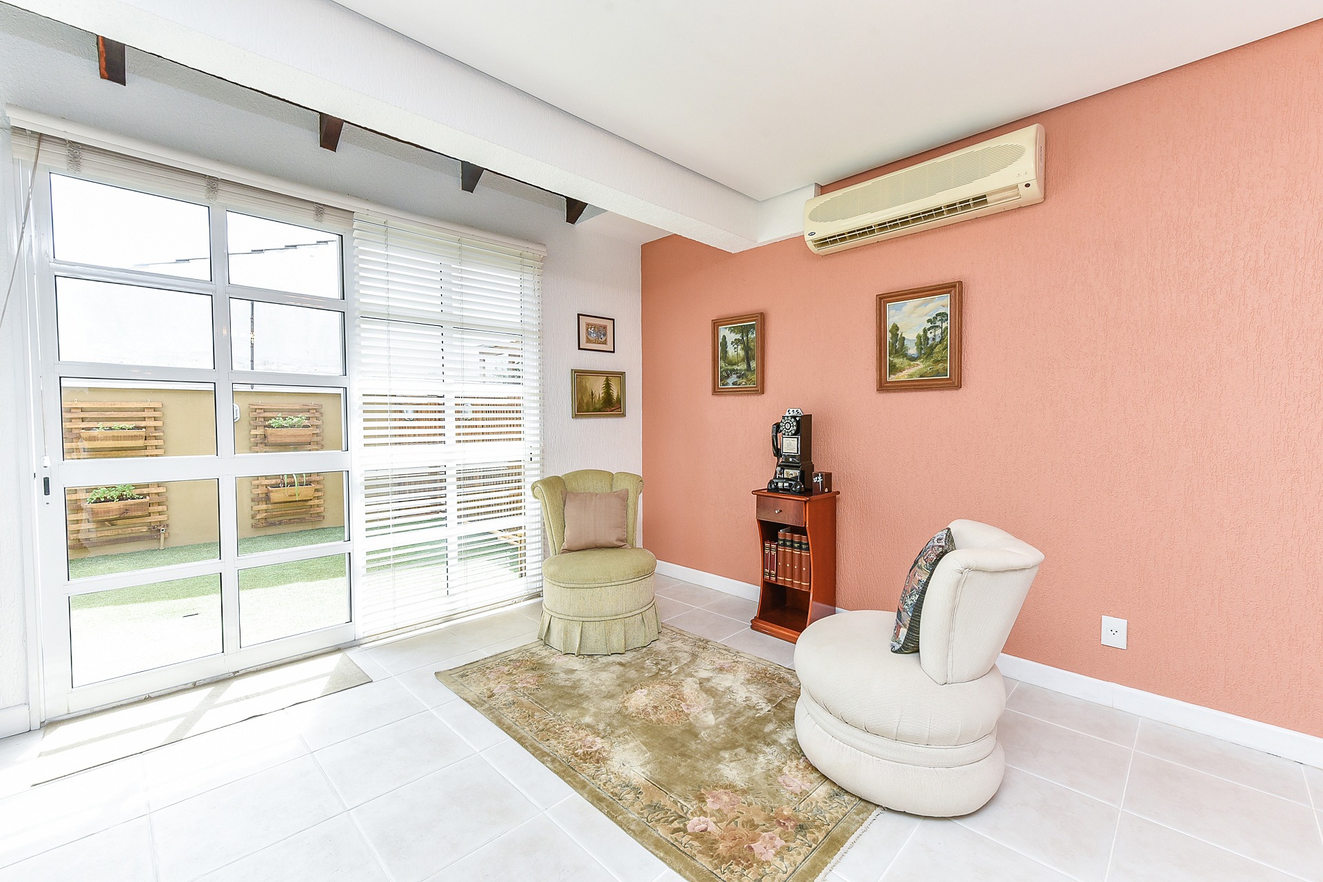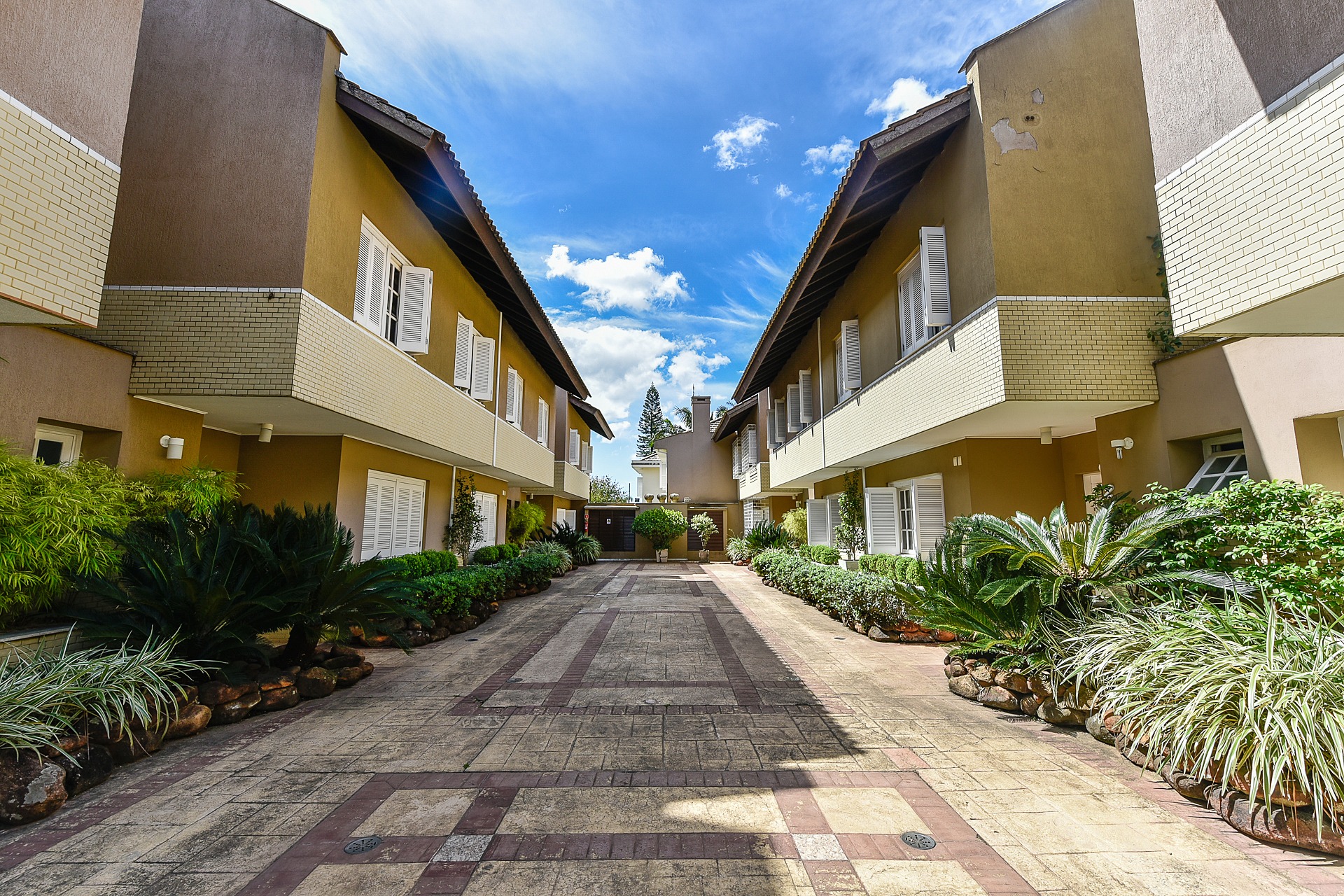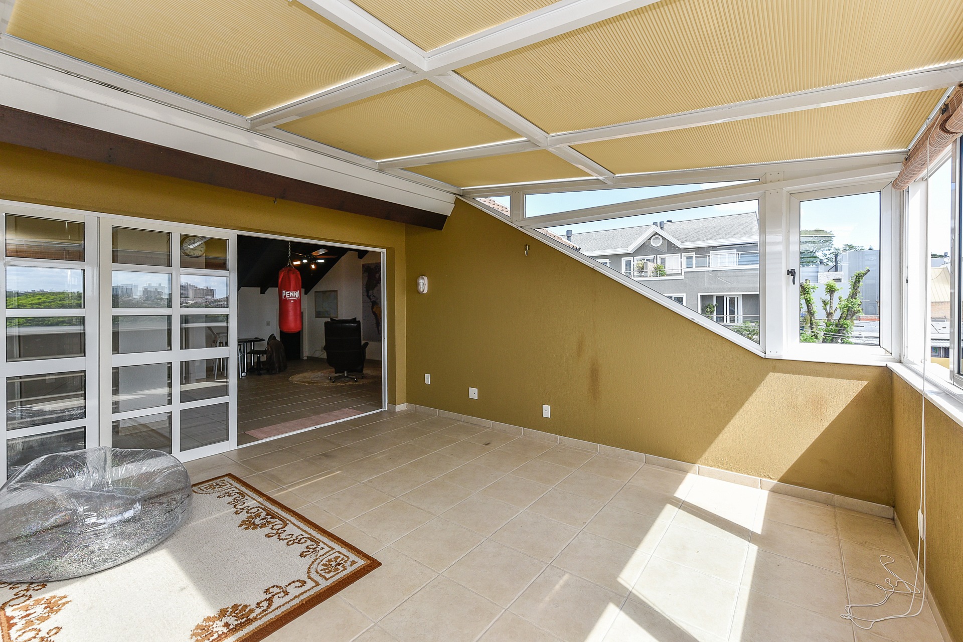 Casa em condomínio com 3 dormitórios espaçosos, sendo uma suíte, e todos banheiros com ventilação natural (janelas), amplo living 2 ambientes com lareira, lavabo, cozinha integrada com churrasqueira, escada segura para acessar os andares superiores, sótão com sala/ home theater/ espaço para home office e sacada com jacuzzi. ensolarada .