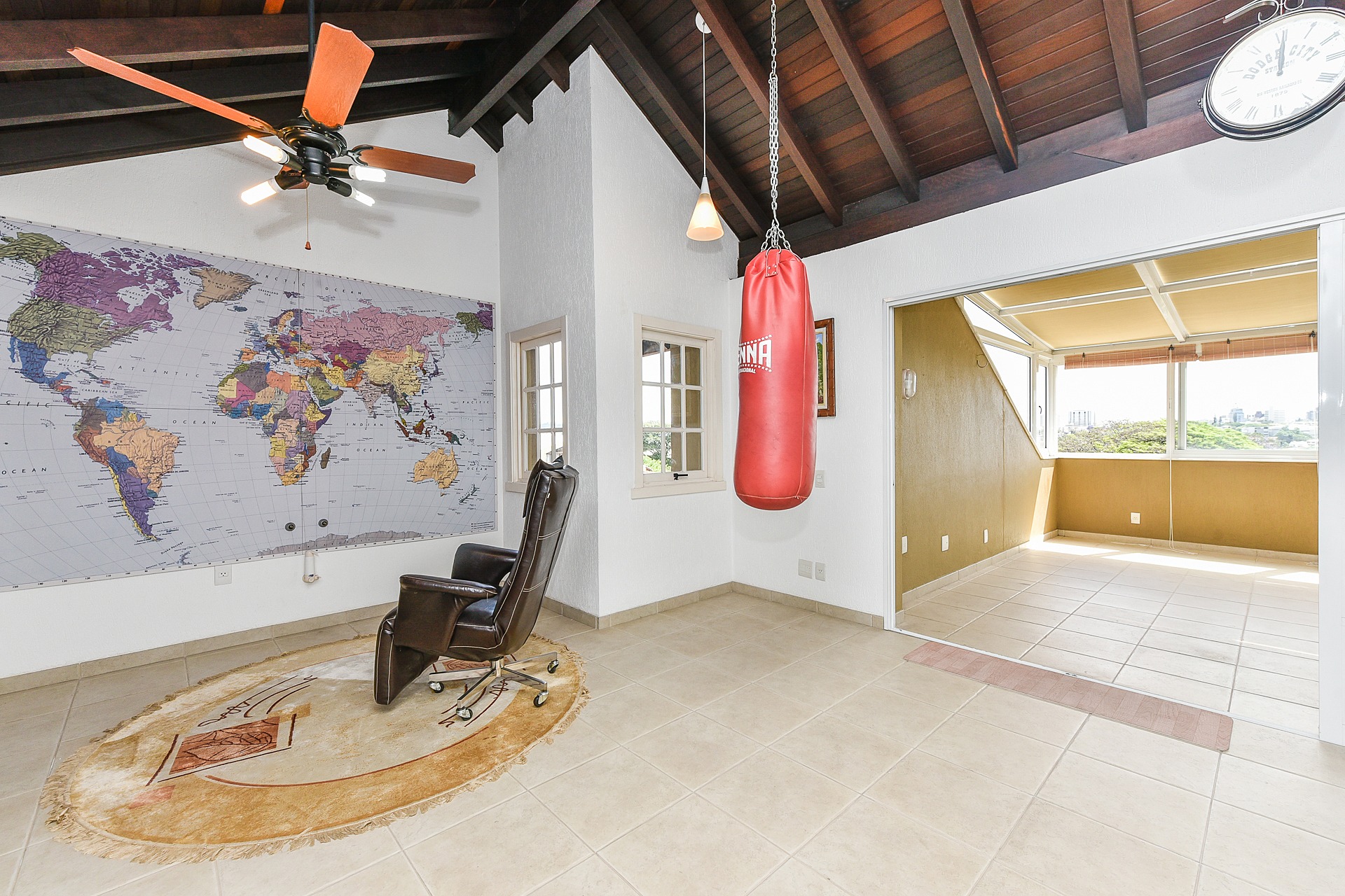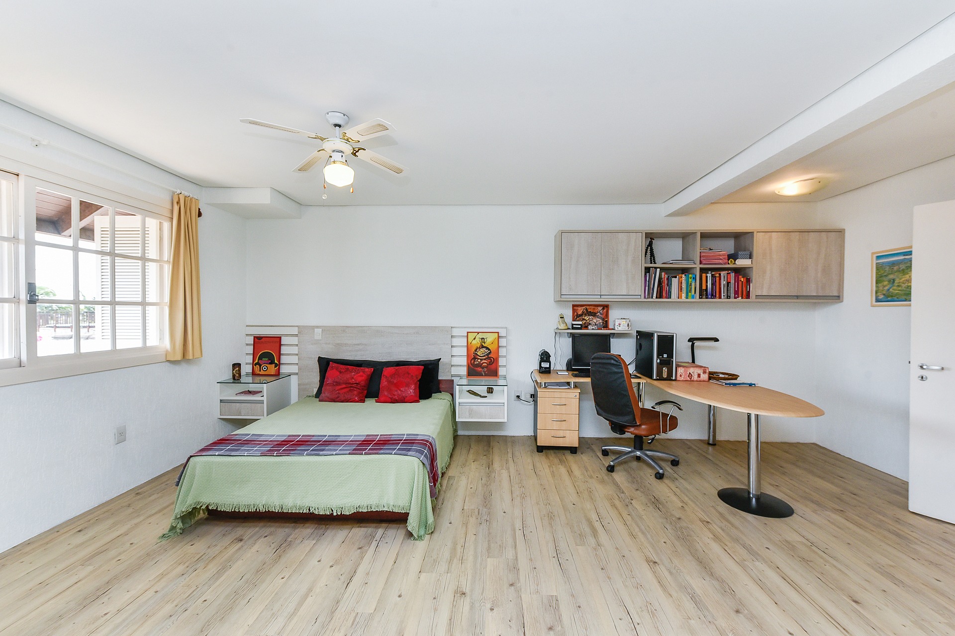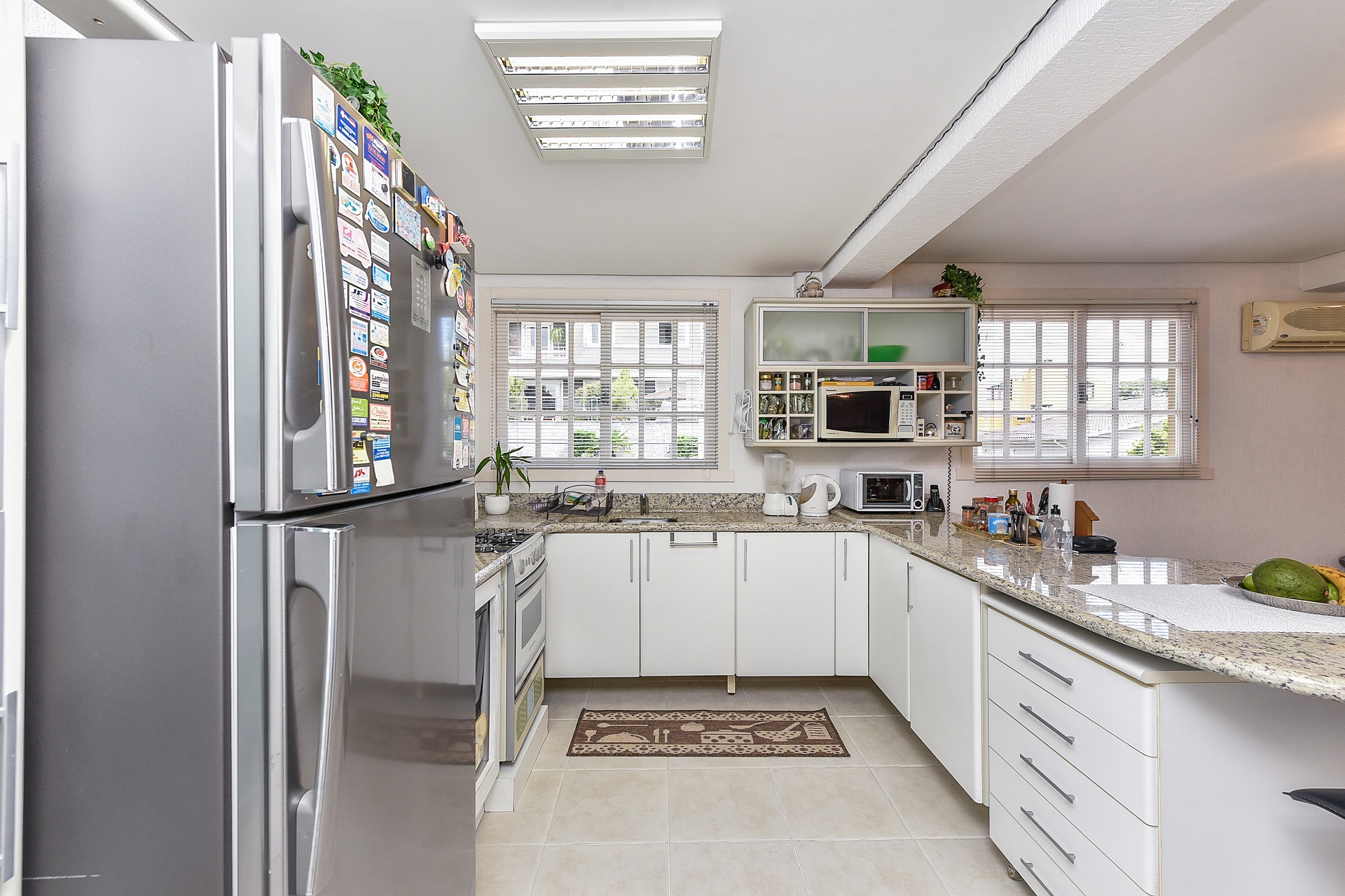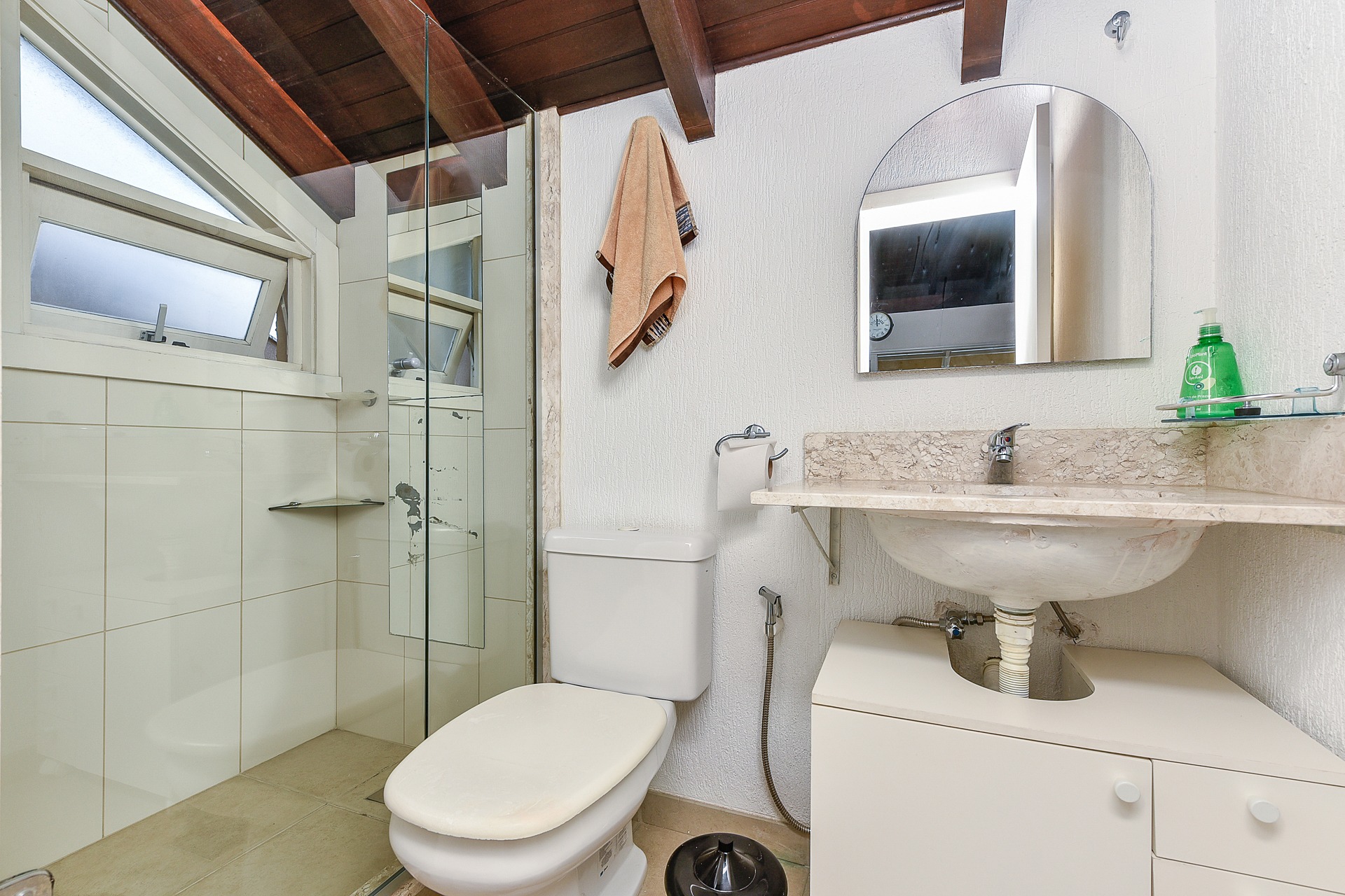 Casa em condomínio com 3 dormitórios espaçosos, sendo uma suíte, e todos banheiros com ventilação natural (janelas), amplo living 2 ambientes com lareira, lavabo, cozinha integrada com churrasqueira, escada segura para acessar os andares superiores, sótão com sala/ home theater/ espaço para home office e sacada com jacuzzi. ensolarada .