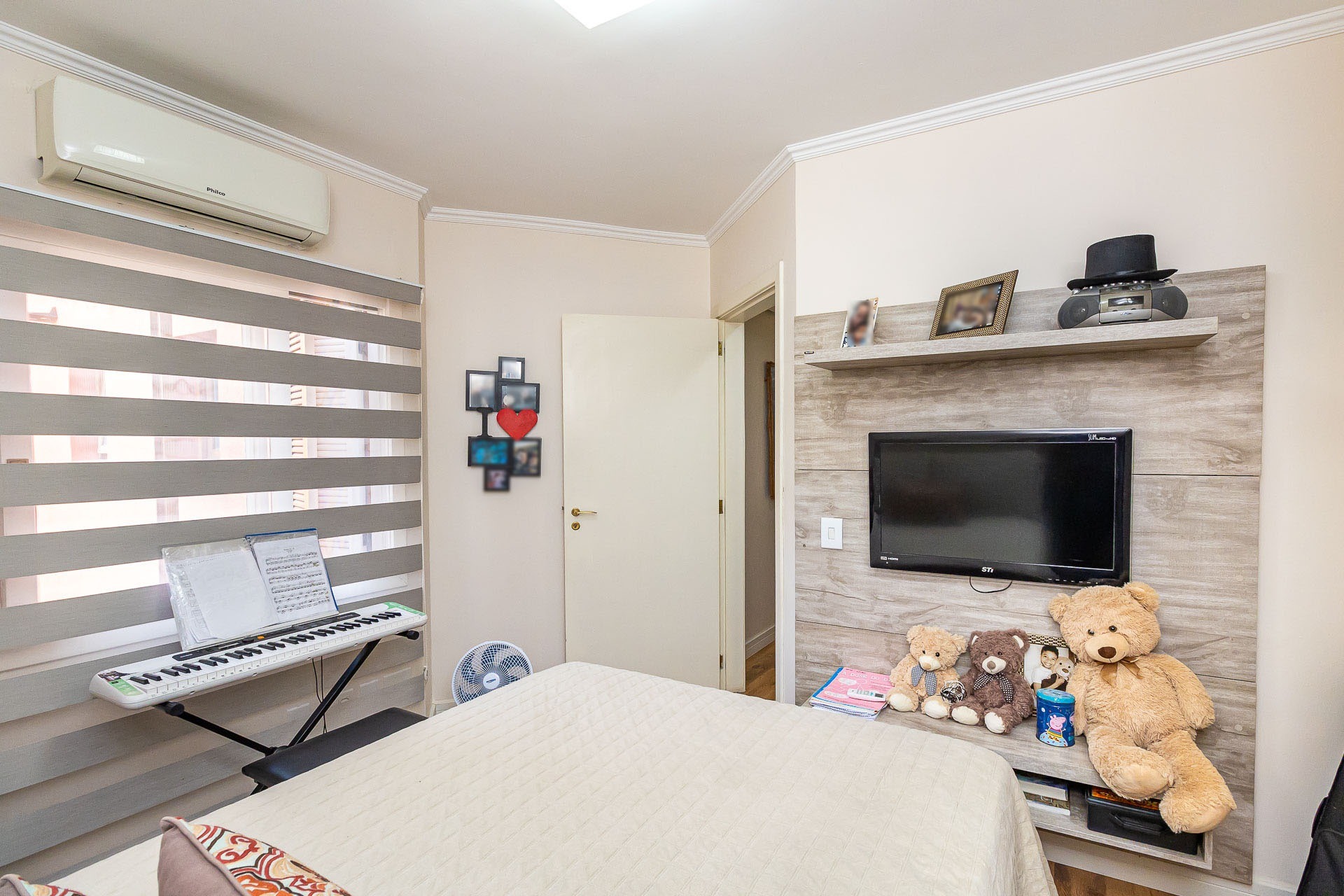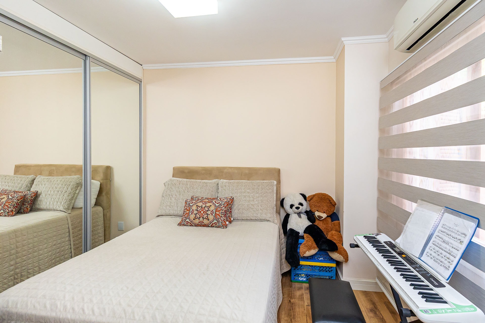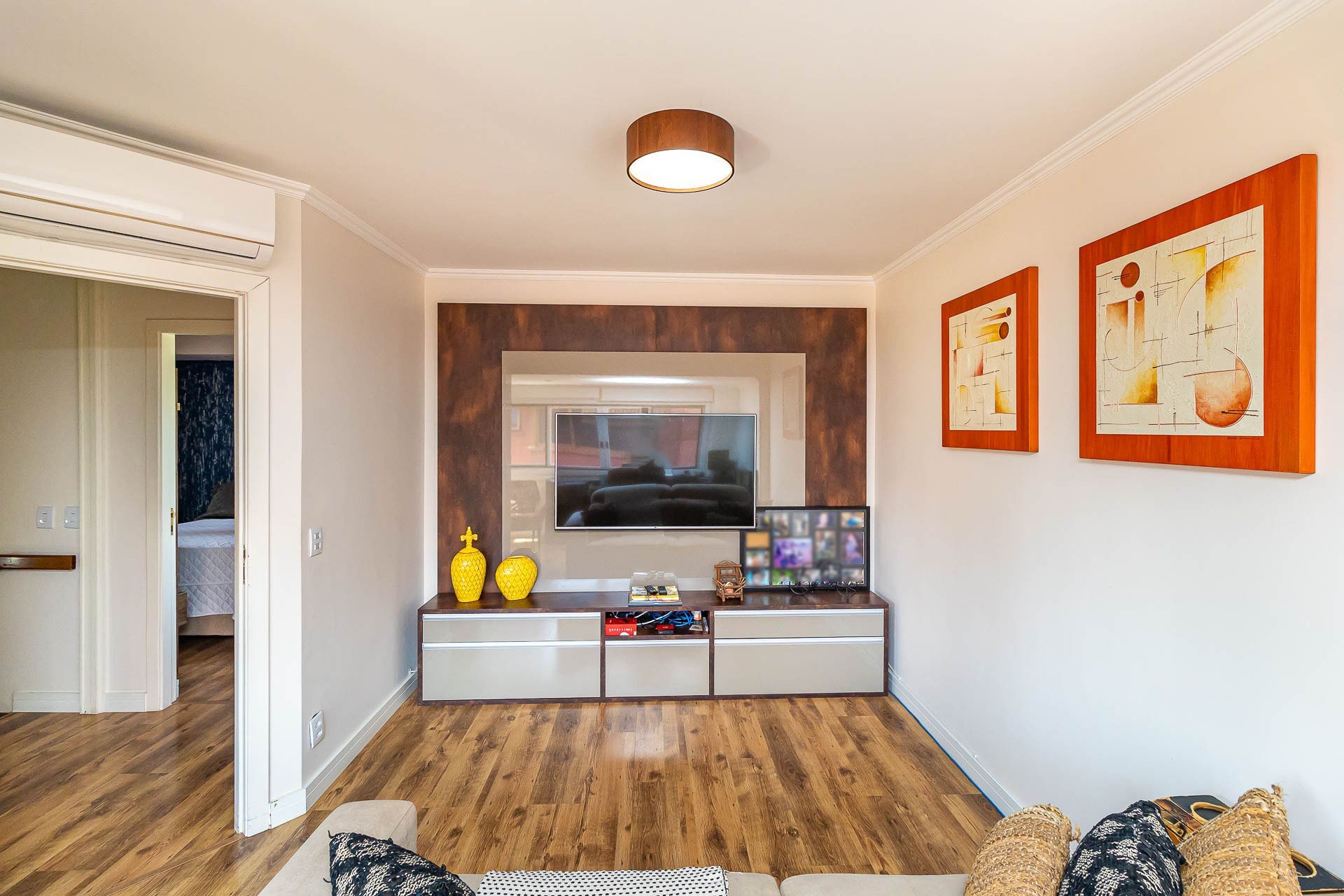 Apartamento mobiliado com 2 dormitórios, sendo 1 suíte, com 88m² de área privativa e 2 vagas de garagem. Amplo living com cozinha americana, churrasqueira e área de serviço. Prédio com salão de festas, fitness, portaria 24 h. Excelente localização!