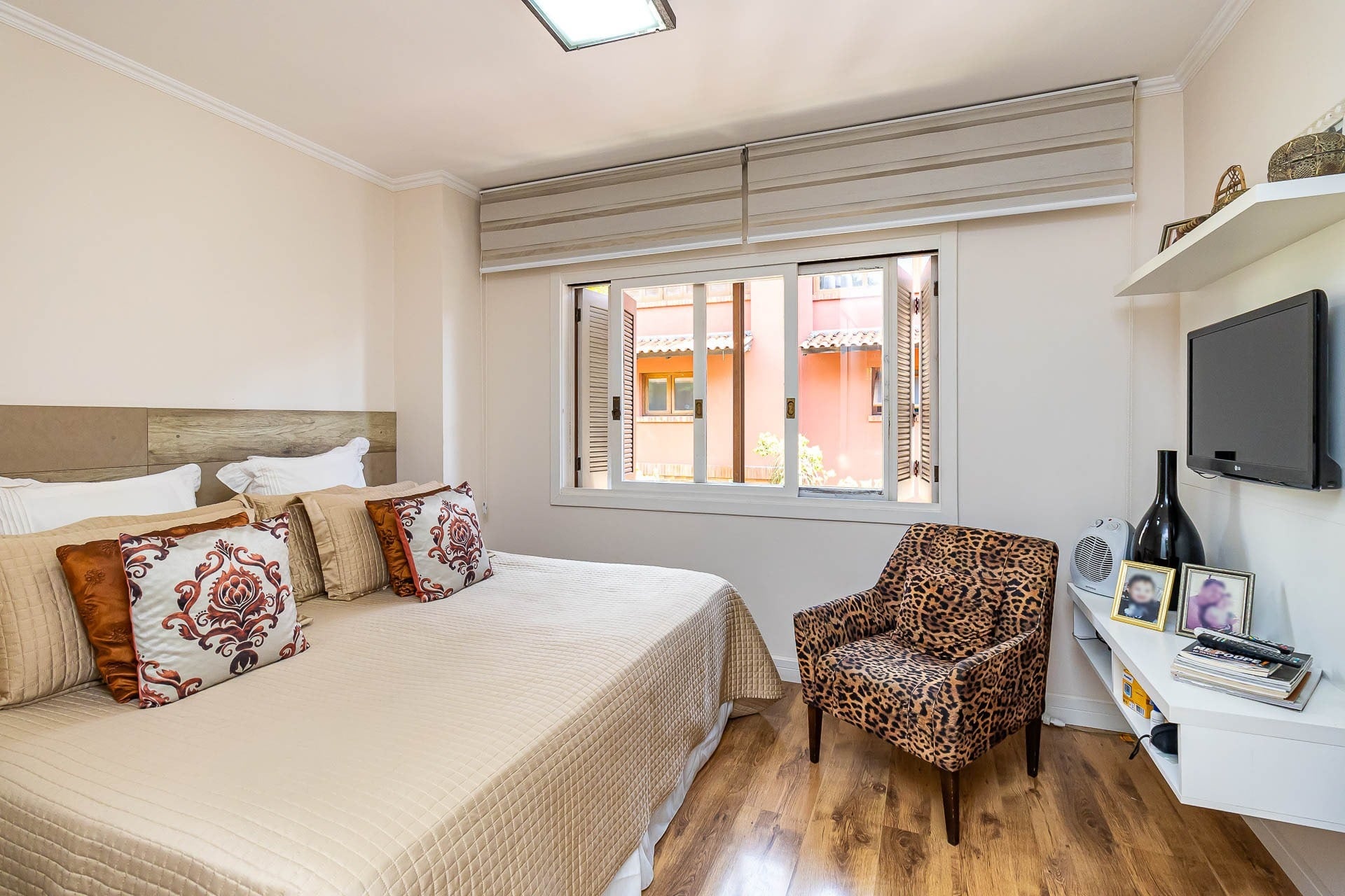 Este luxuoso apartamento de 4 suítes localizado no Bairro Moinhos de Vento, em Porto Alegre, oferece uma moradia de alto padrão. A suíte master se destaca com closet e banheiro duplo, incluindo hidromassagem. O living é espaçoso, dividido em quatro ambientes com sacada, e inclui um espaço gourmet com churrasqueira, lareira e adega, ideal para entretenimento e momentos em família.
