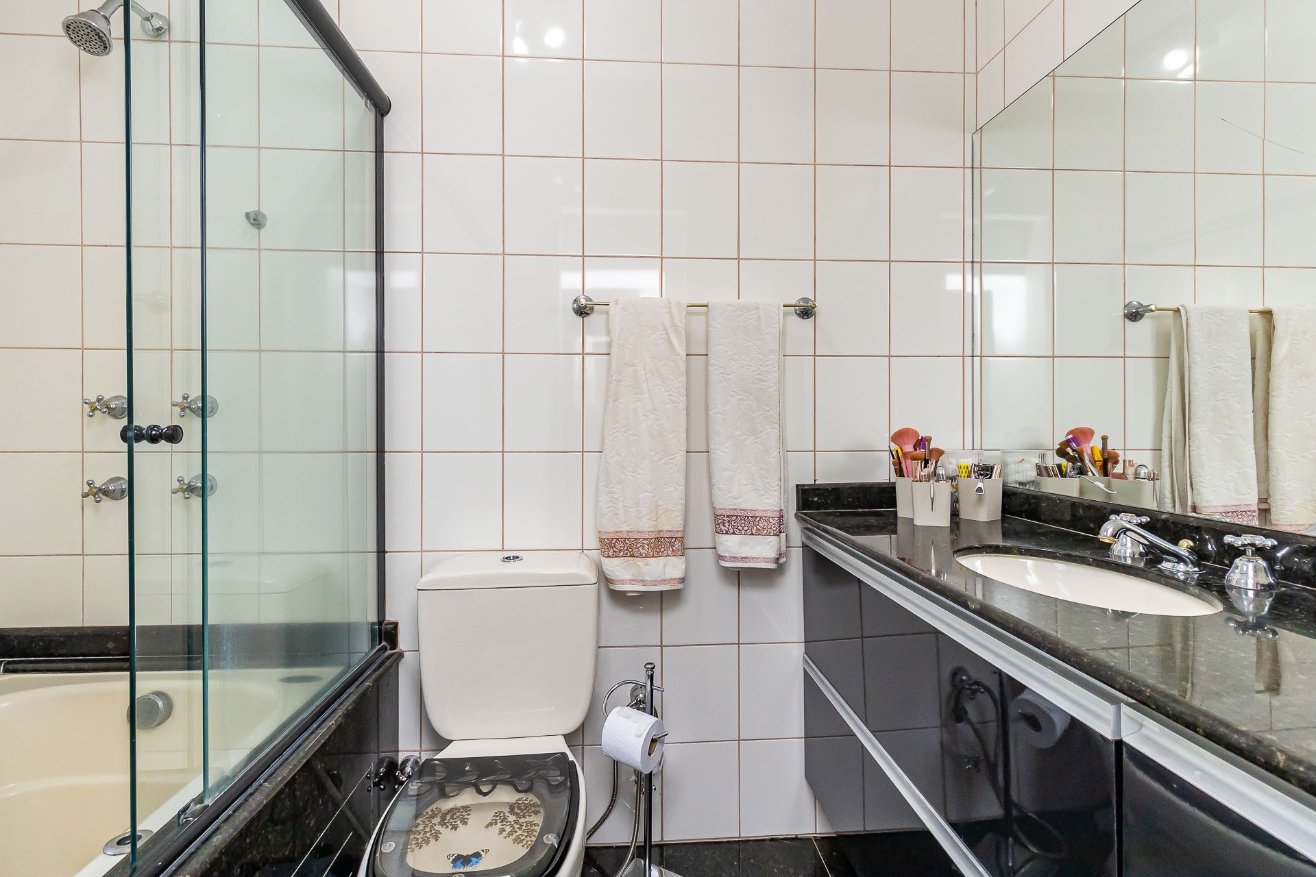Apartamento para alugar mobiliado com 4 dormitórios, sendo 2 suítes, 179m de área privativa, living com ar condicionado, sacada fechada e ampla com churrasqueira, escrivaninha, cômodas, ventiladores de teto e cortinas, banheiro social com armários, cozinha completa com armários, fogão, geladeira, micro-ondas e coifa e área de serviço.